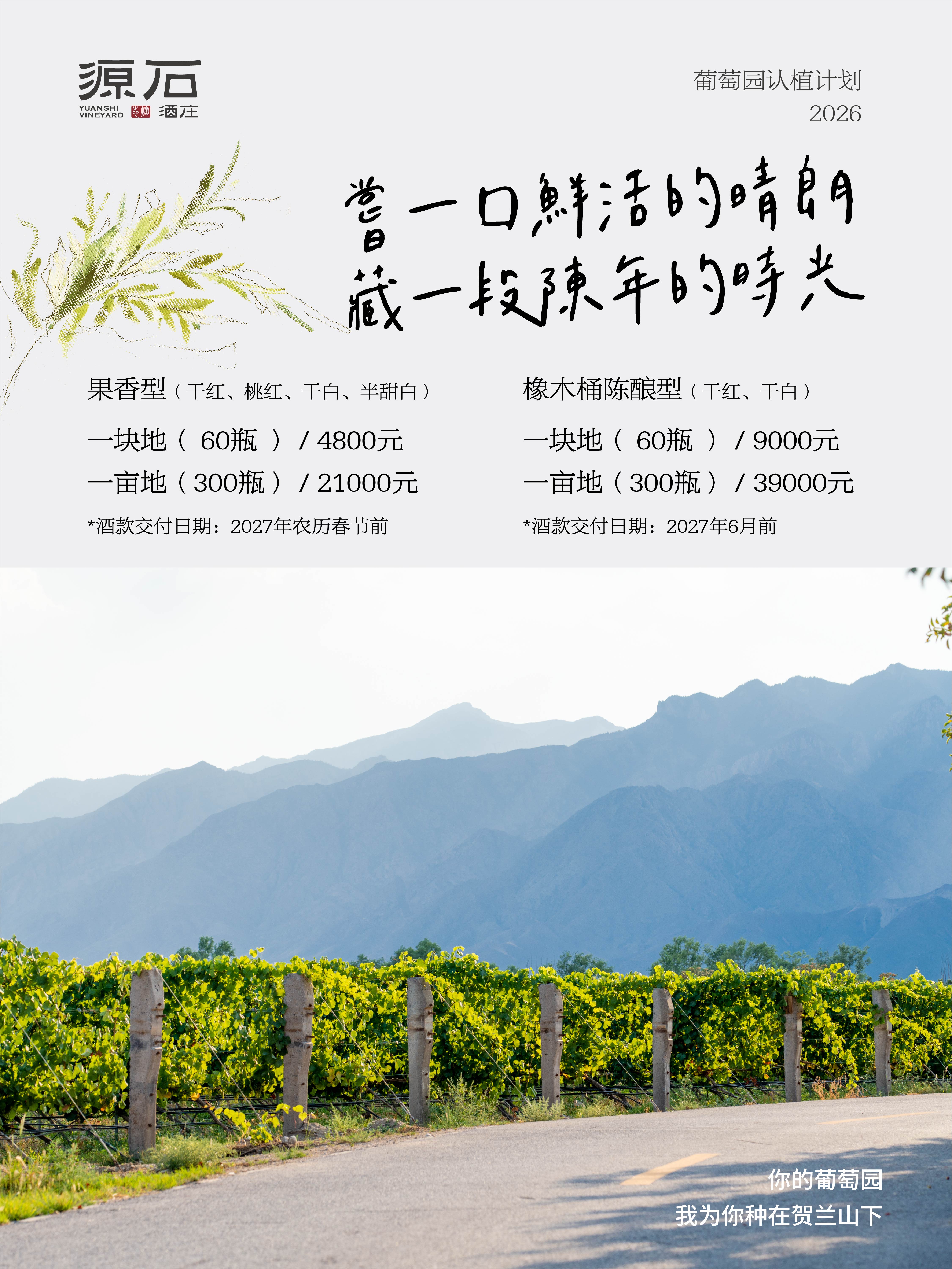 源石酒庄·2026年葡萄园认植计划