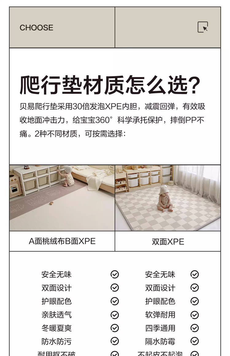 贝易BeiE 折叠XPE复合布艺新款婴儿爬爬垫爬行垫儿童泡沫地垫游戏垫
