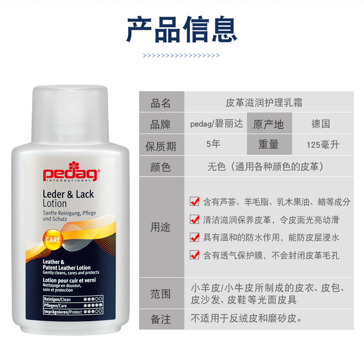 德国pedag四合一皮革清洁/滋润护理上光软膏保养油清洁加保养856
