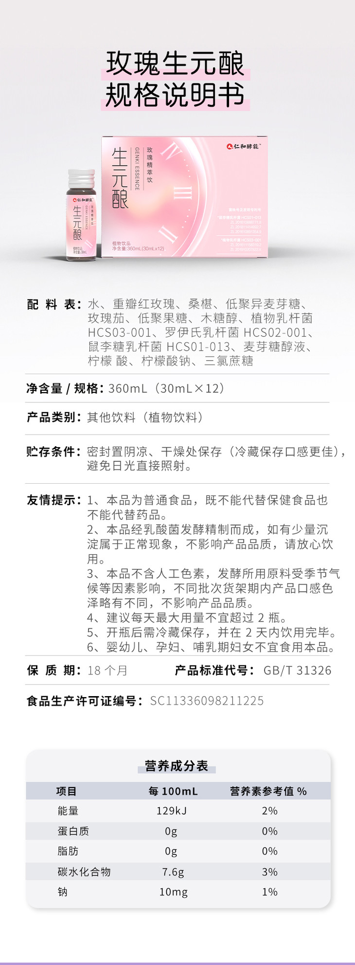 【仁和】生元酿 · 玫瑰/黑枸杞精粹—高活性酶植物饮(30ml/瓶*12瓶/ 盒)