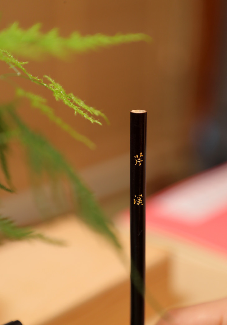 3.使用后,将笔头浸入笔洗内用清水轻轻涮洗,直至水基本清洁;整理笔形,悬挂阴干。