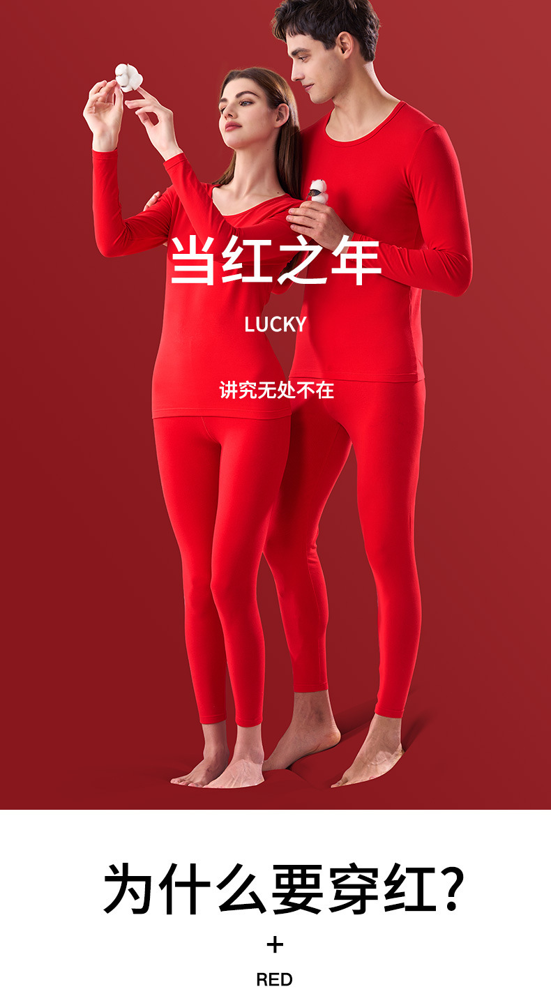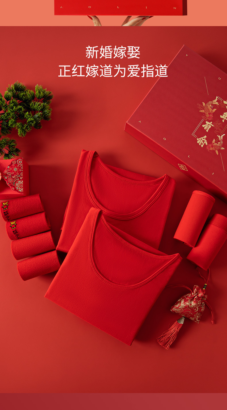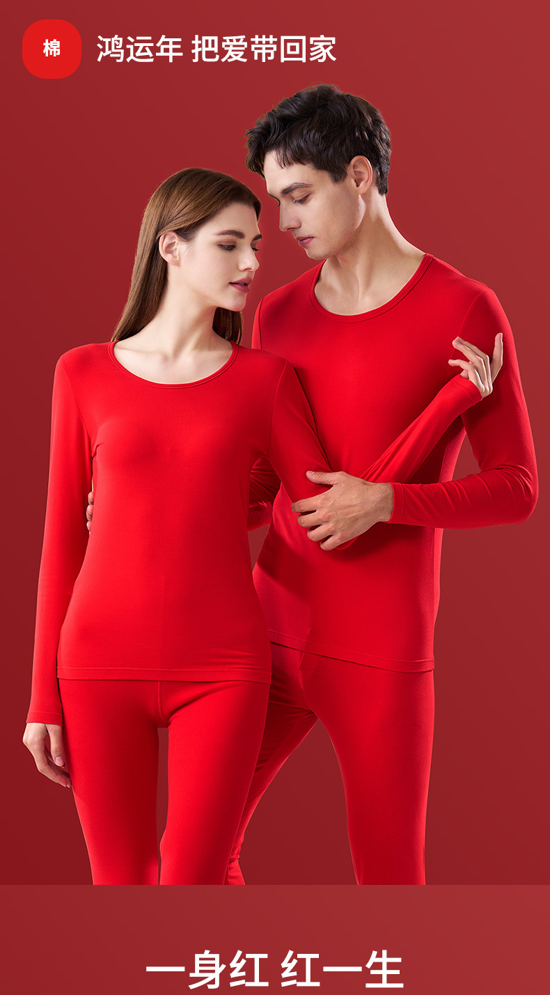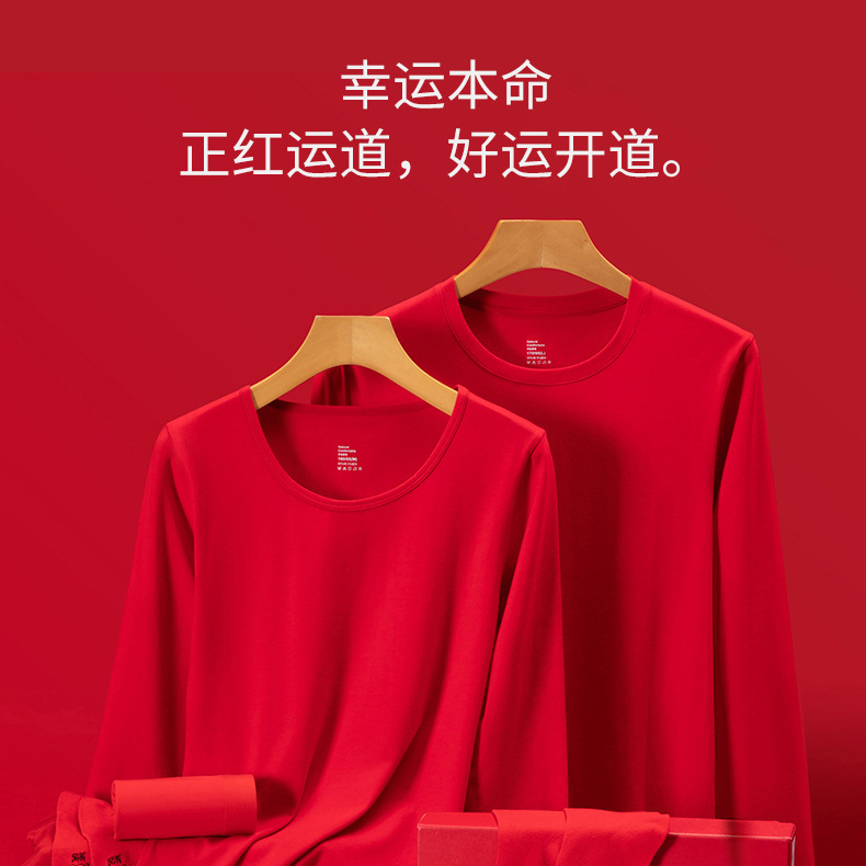 【万事顺遂❗️新疆长绒棉鸿运礼盒装】红衣穿身上,全年走红运!本命年保暖内衣套装女纯棉新婚嫁娶男士大红色秋衣秋裤女蛇年新年
