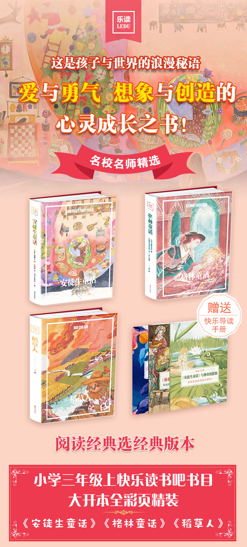 【精装、自带书皮】《乐读童话套装》:(稻草人+安徒生童话+格林童话)