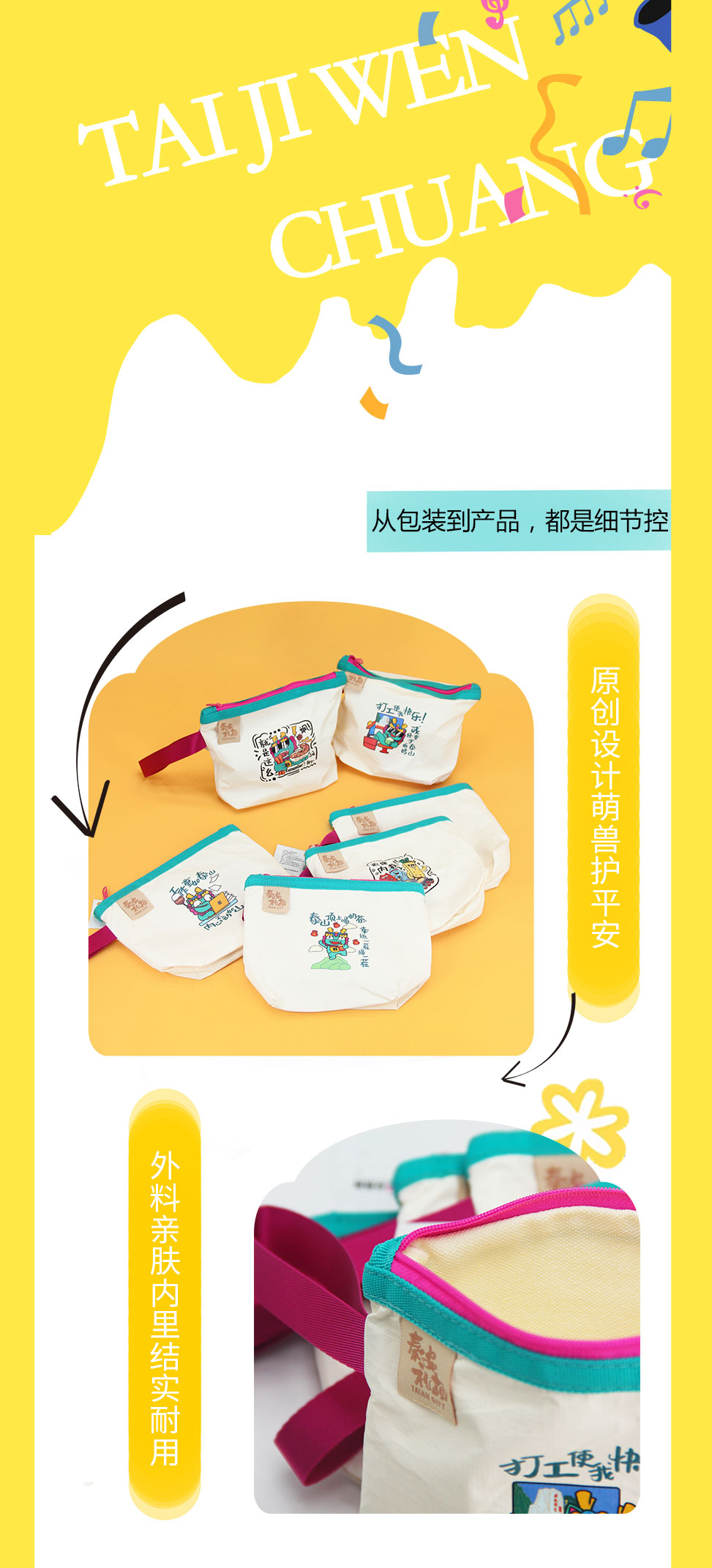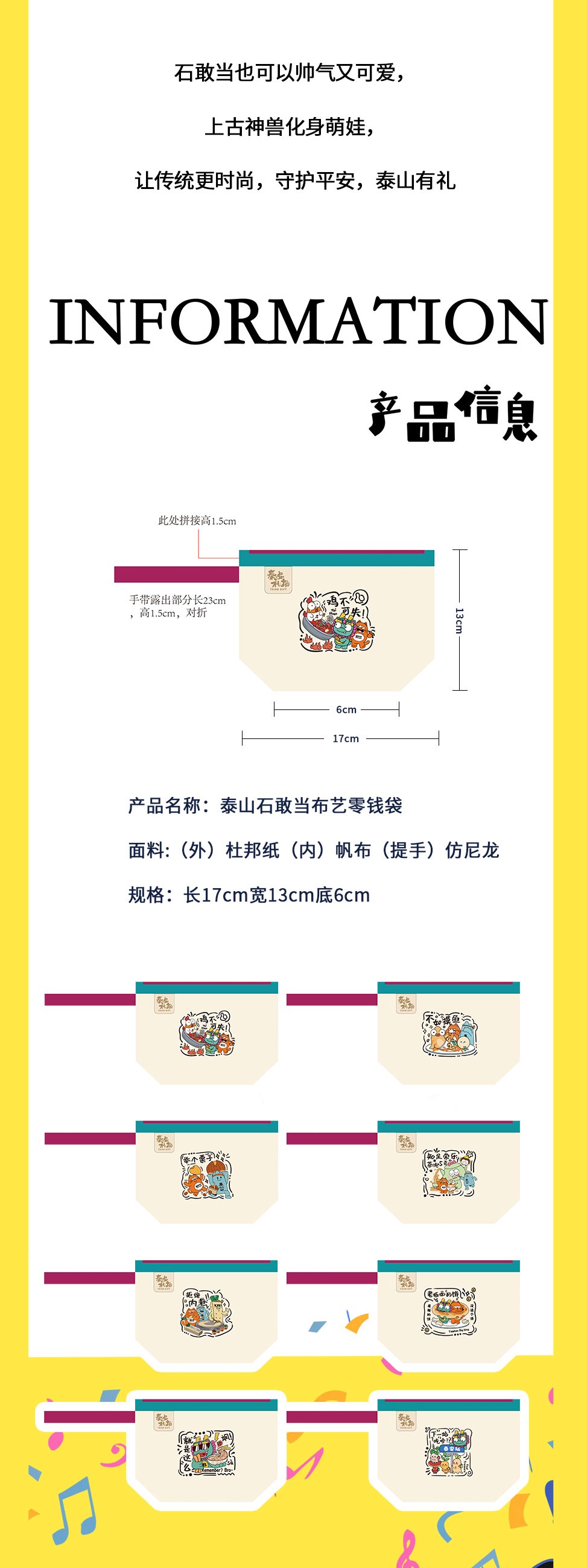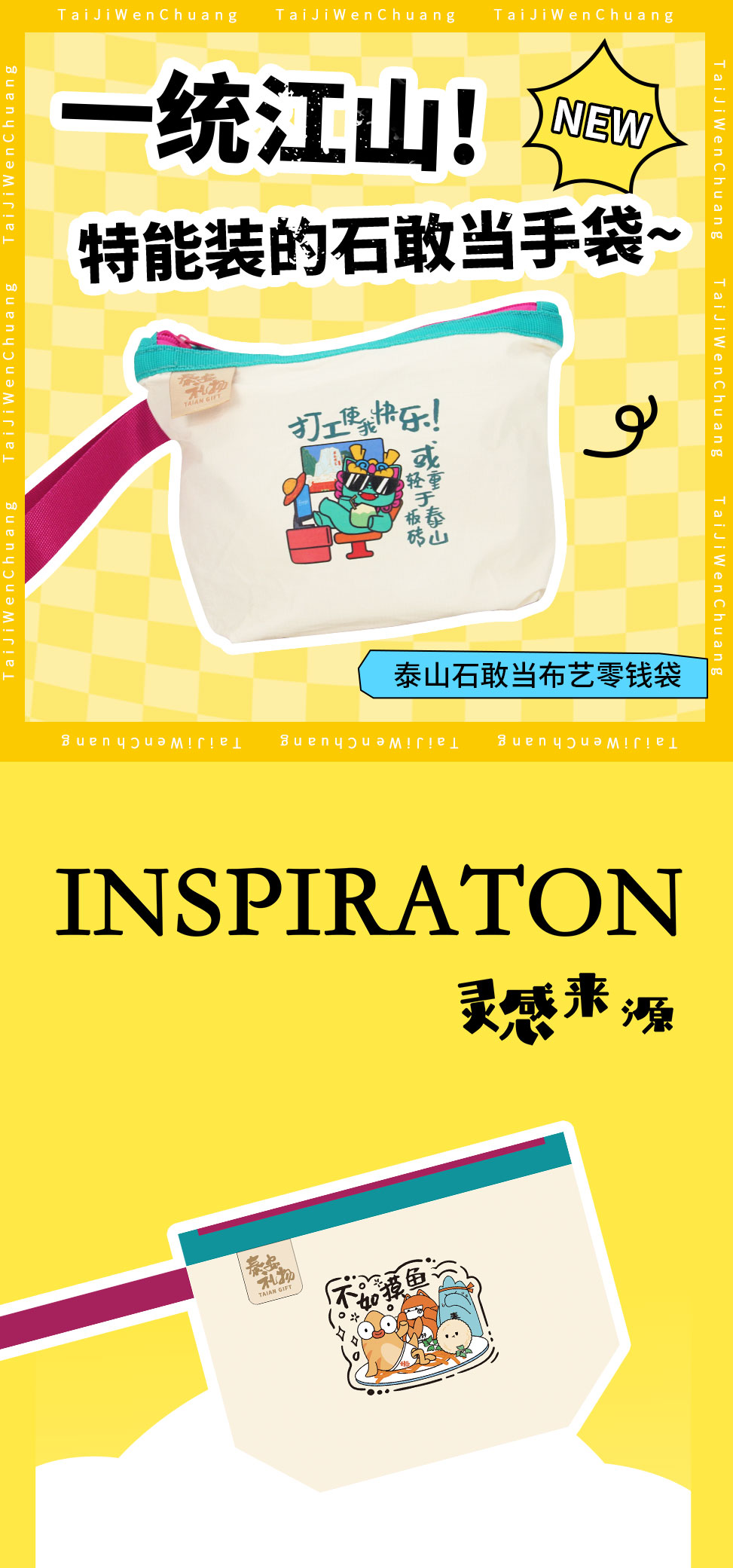 Tai集泰山文创石敢当收纳袋化妆包帆布零钱袋手提多种款式可选