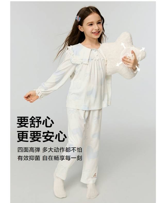 【春上新】8楼爱慕儿童Aimer Kids女孩奶皮爱心熊翻领套头长袖睡衣AK141J462,吊牌价499元