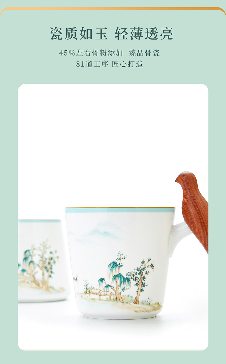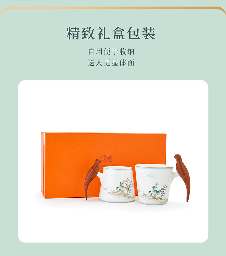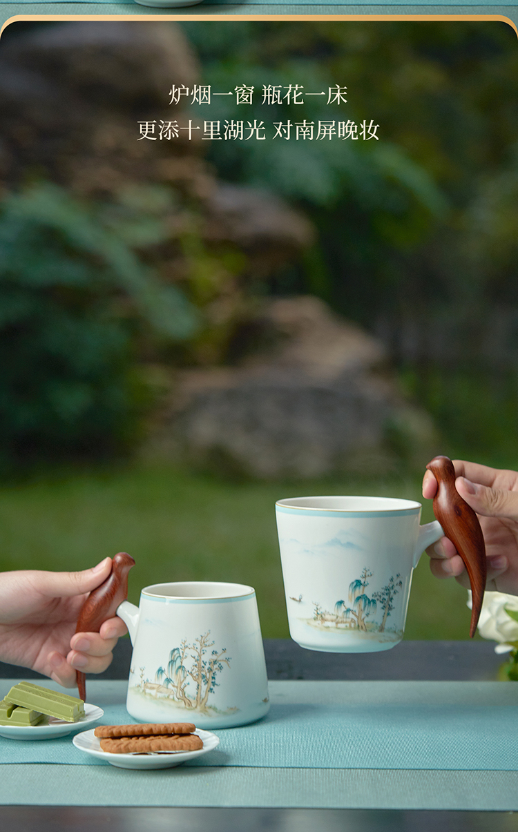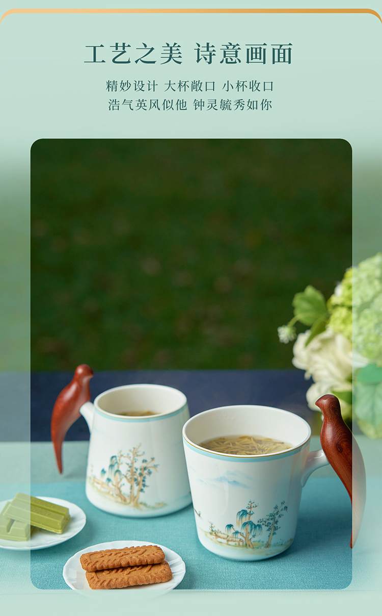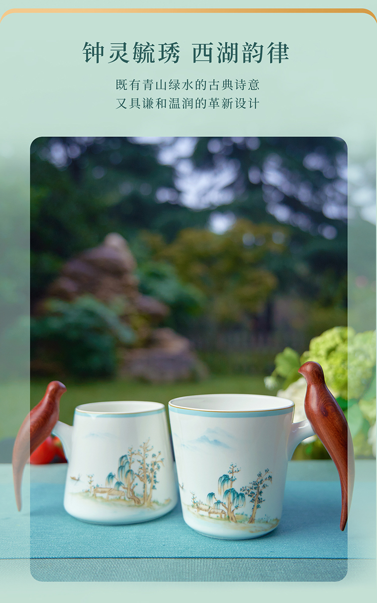 【6F】玛戈隆特西湖盛宴幸福小鸟对杯木把手 骨瓷家用情侣创意 礼盒包装