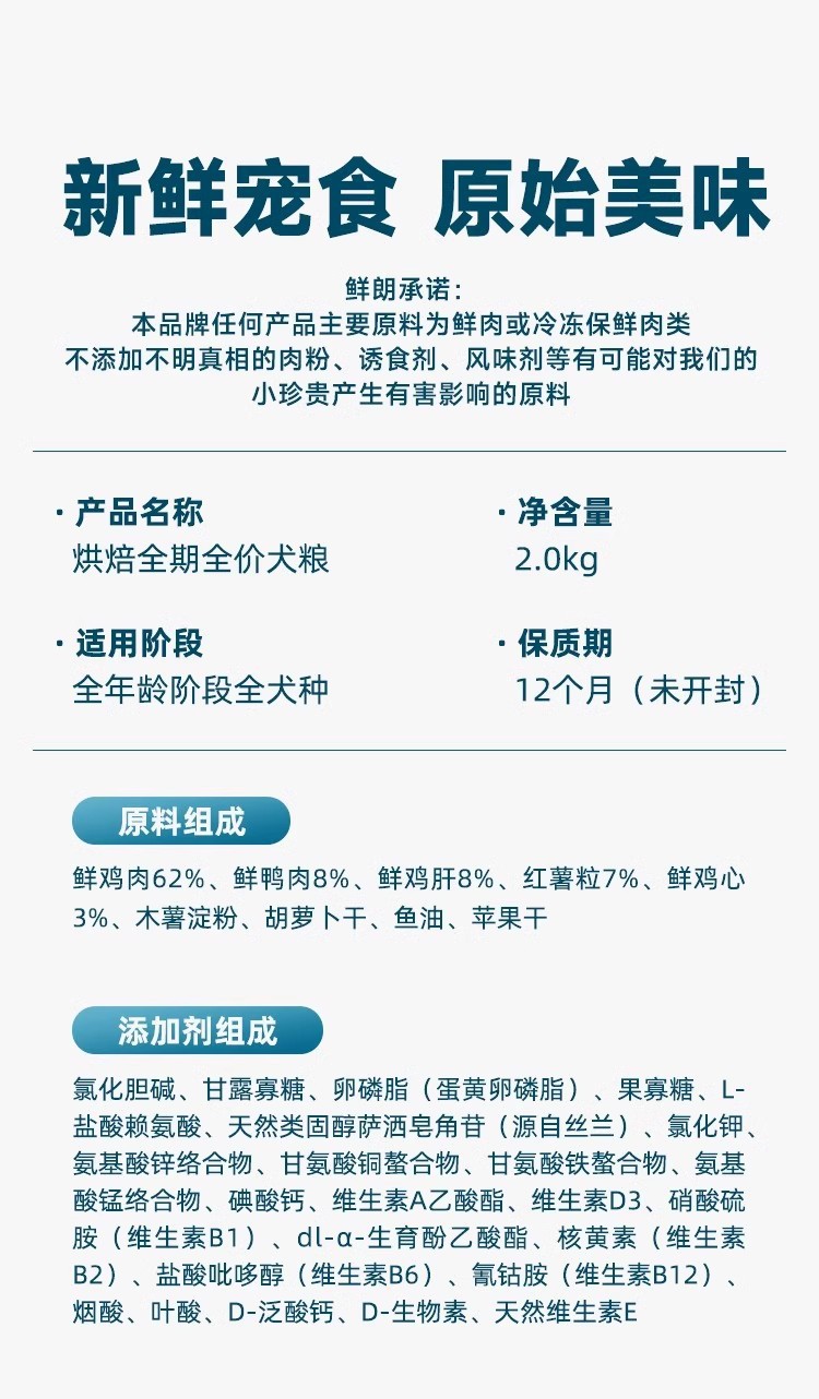 鲜朗低温烘焙狗粮泰迪博美大小型奶糕幼犬成犬粮金毛通用主粮2kg