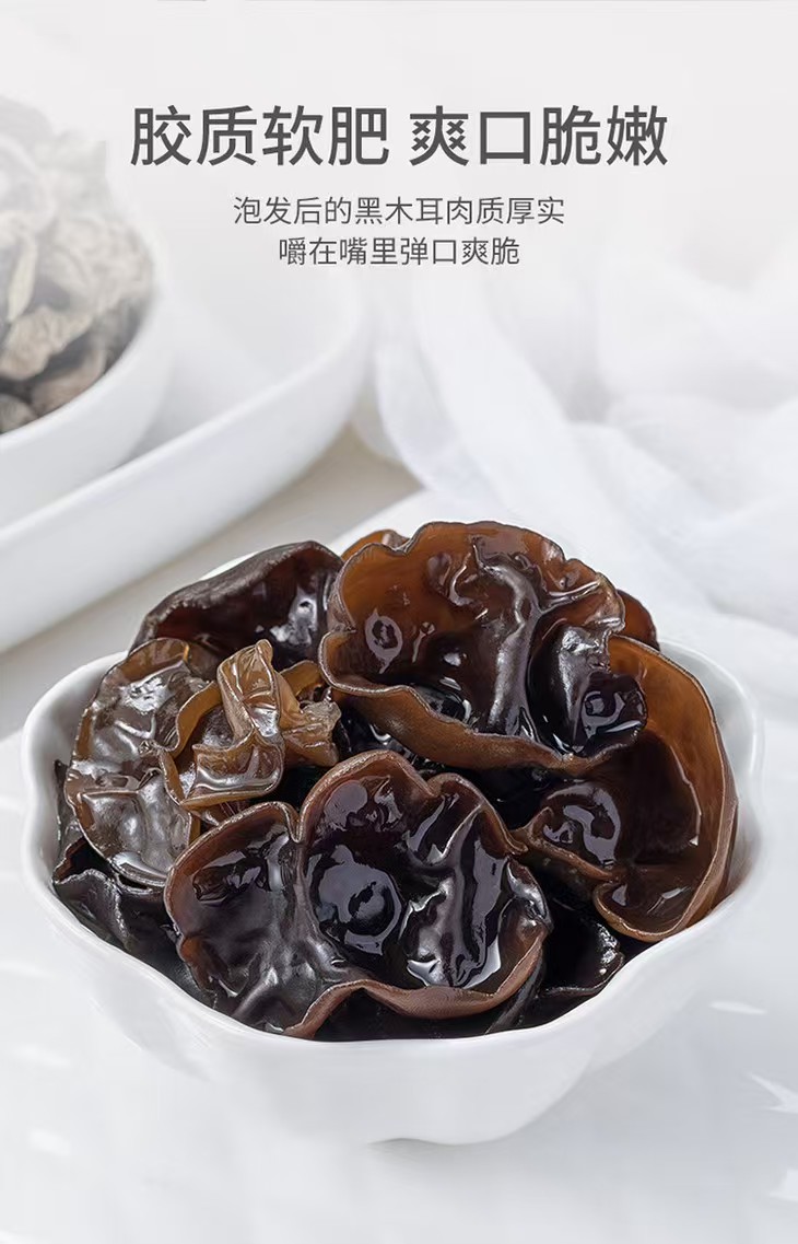 黑木耳用的是食品级包装袋,可以反复开合,随取随用。想吃时,抓几朵放到清水里浸泡,一会儿就会变成嫩嫩大木耳了,色泽透亮,很是新鲜,而且泡发率好高,小小一撮就能繁殖出一大碗!泡发后的黑木耳胶质丰富,口感软滑而不腻,随便搭配着做炒菜煮汤羹,不仅品相上增色不少,风味更加分!大家一定试试西施豆腐呀,太好吃啦!