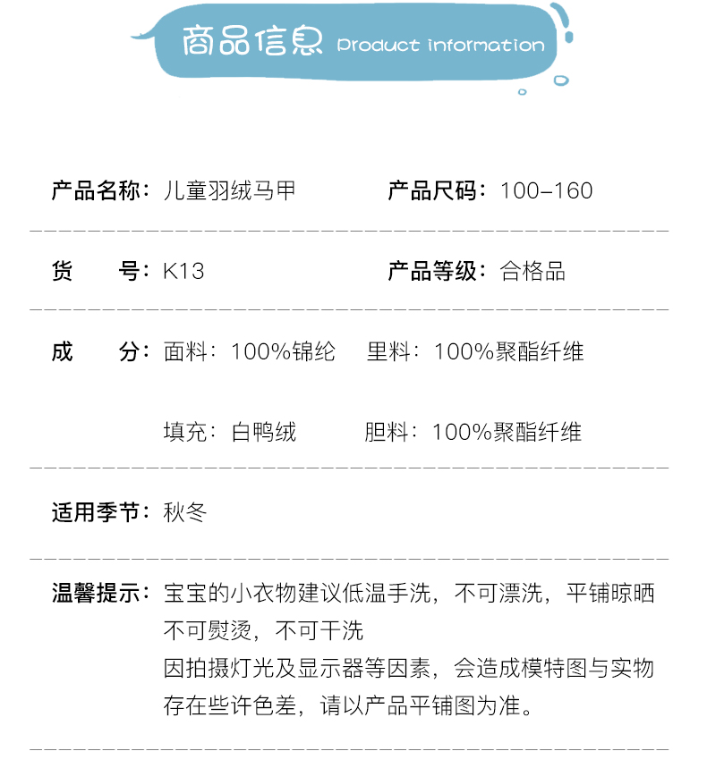 【59/件】胖胖象新款儿童羽绒马甲中小大童保暖羽绒背心男女宝宝纯色坎肩聚