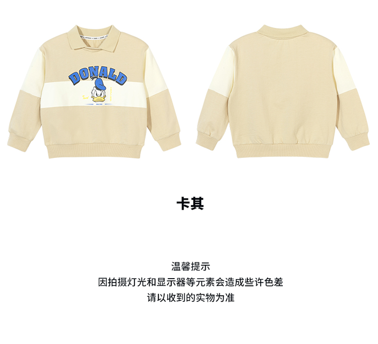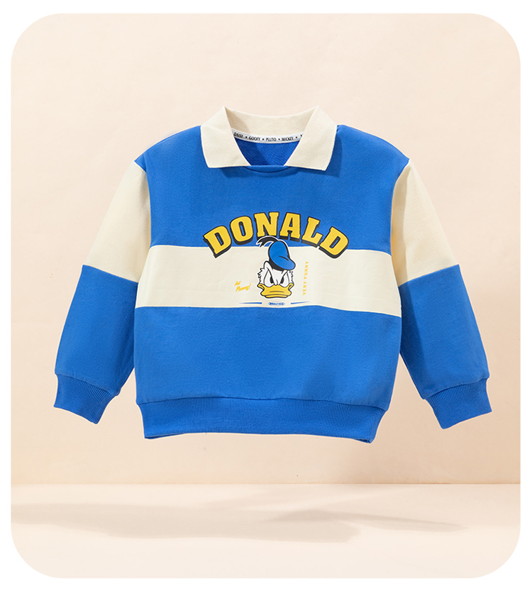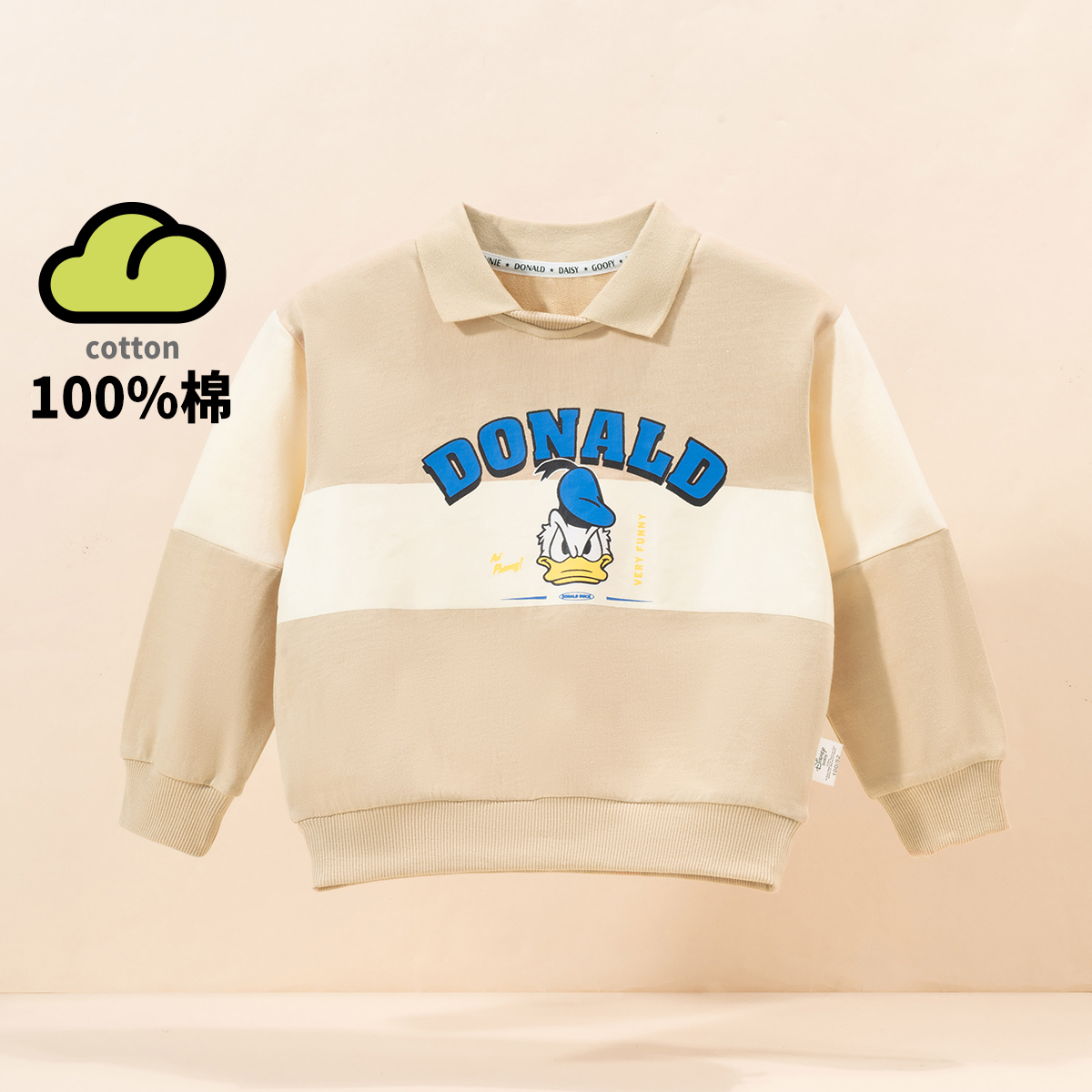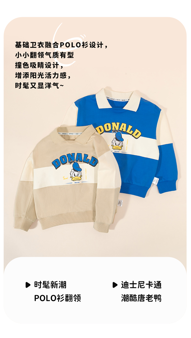 迪士尼2024春季新款男童套头卫衣中小童纯棉撞色微领套头衫百搭上衣ZD1DS015