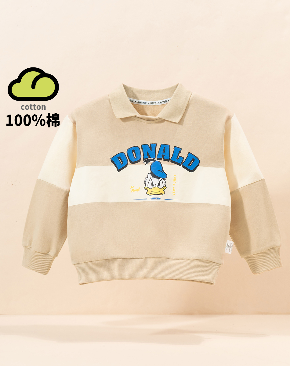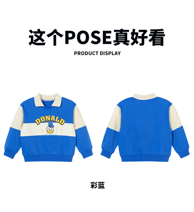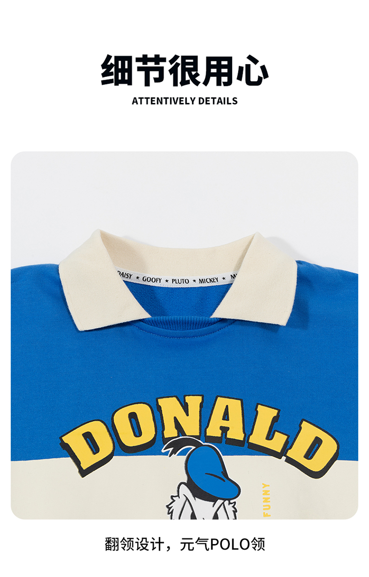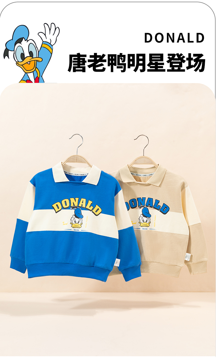 迪士尼2024春季新款男童套头卫衣中小童纯棉撞色微领套头衫百搭上衣ZD1DS015