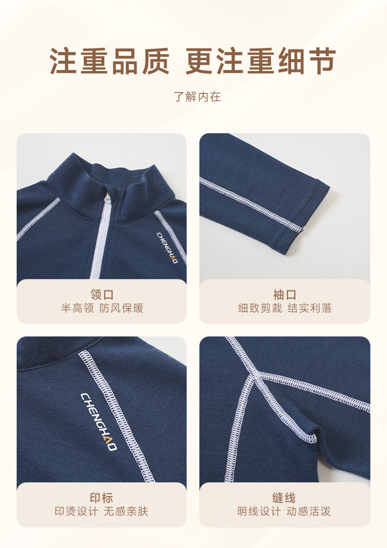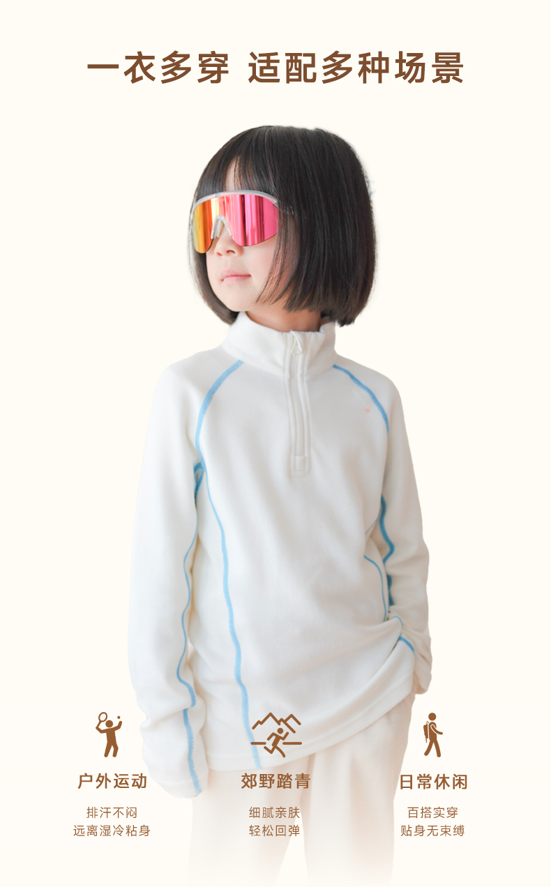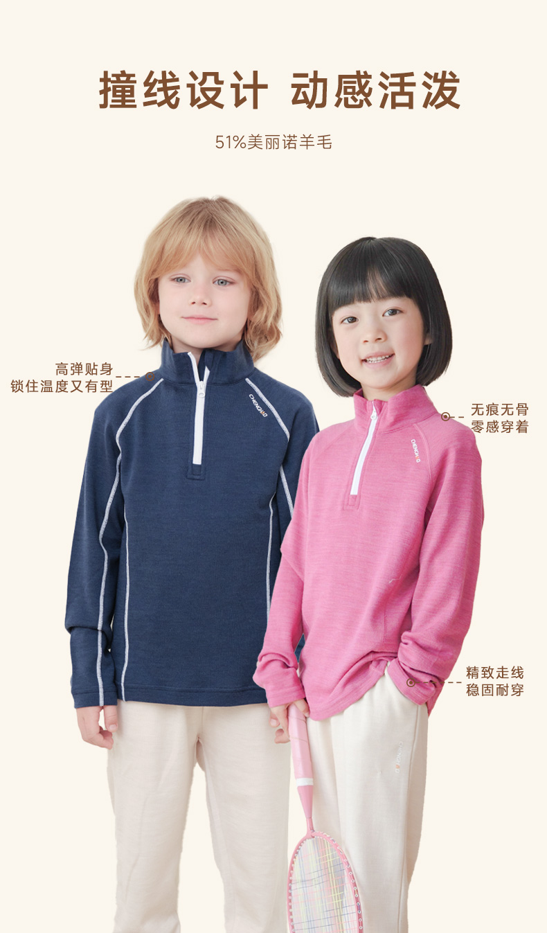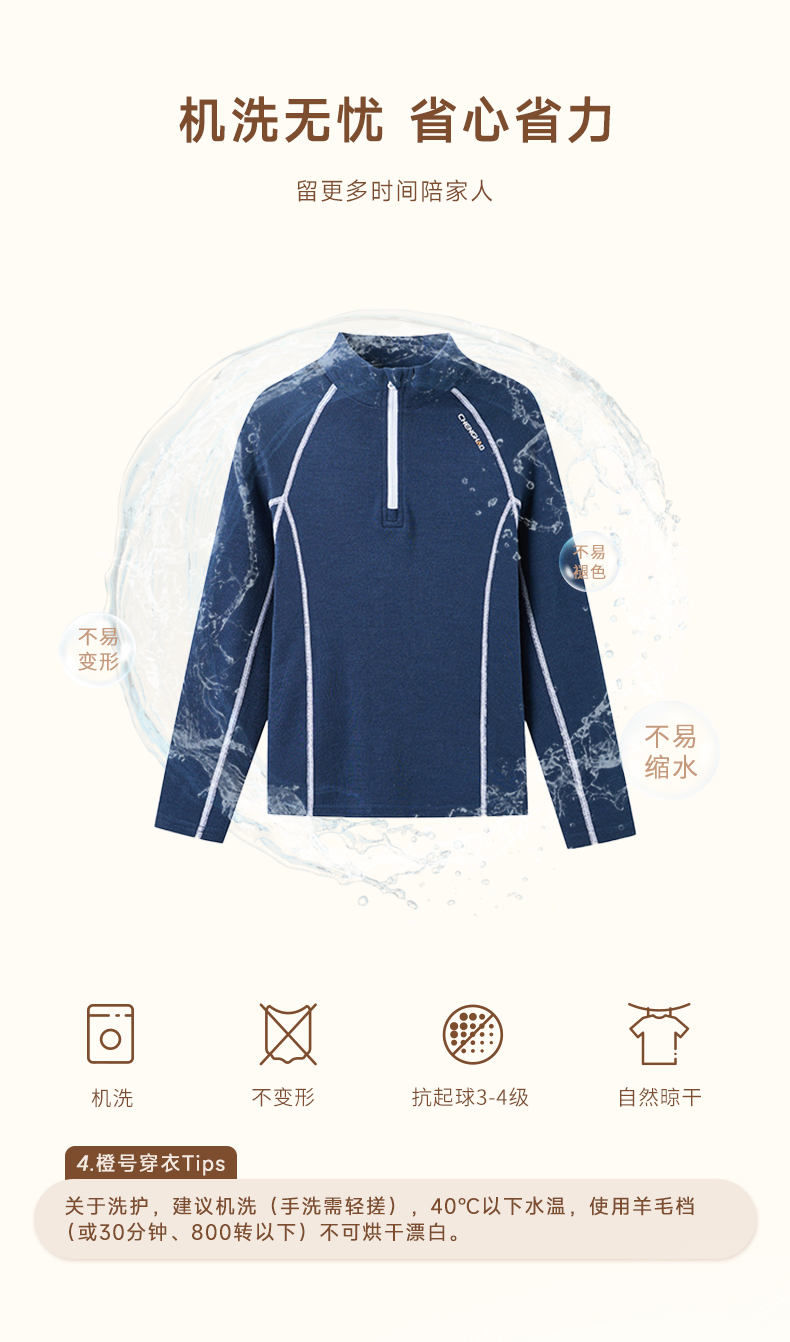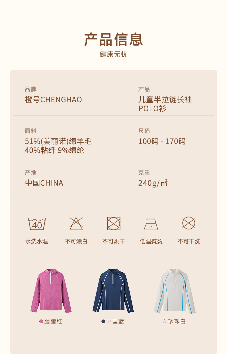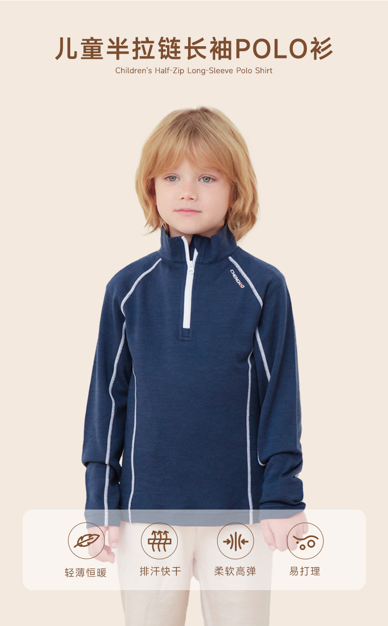 特惠清仓【100-170码】橙号 儿童半拉链长袖POLO衫 24T26ACTV 51%绵羊毛 240/㎡