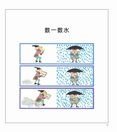 很多东西都可以画成圈圈来数,可是多到像豆子那么多,该怎么数呢?水、砂糖此类东西要怎么数呢?如果了解了数量的两个类别――离散量和连续量,问题就会简单多了。离散量是可以个别分开,能一个一个数算的;连续量无法一个个数算,因此需要特定的单位来测量。如果想比较两个容器哪个能装的水更多,就用到量杯这种工具了。可以让孩子试着去量一量水、身高、体重……透过这样的具体经验,增进对“量”的认知能力。