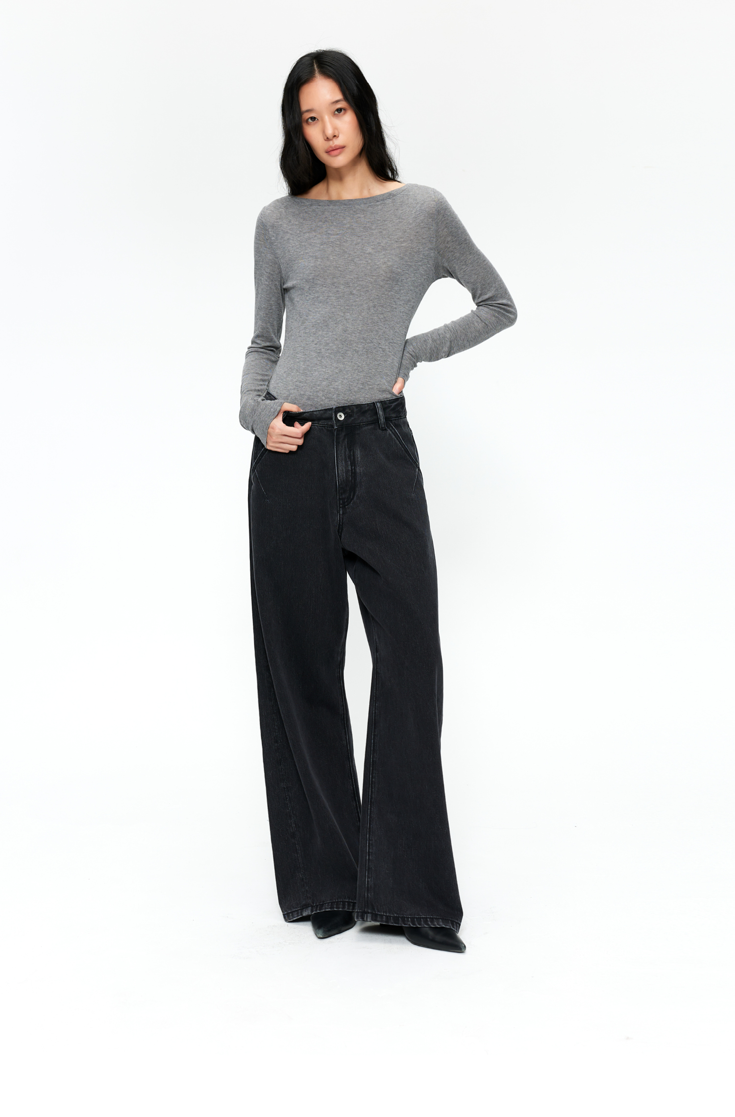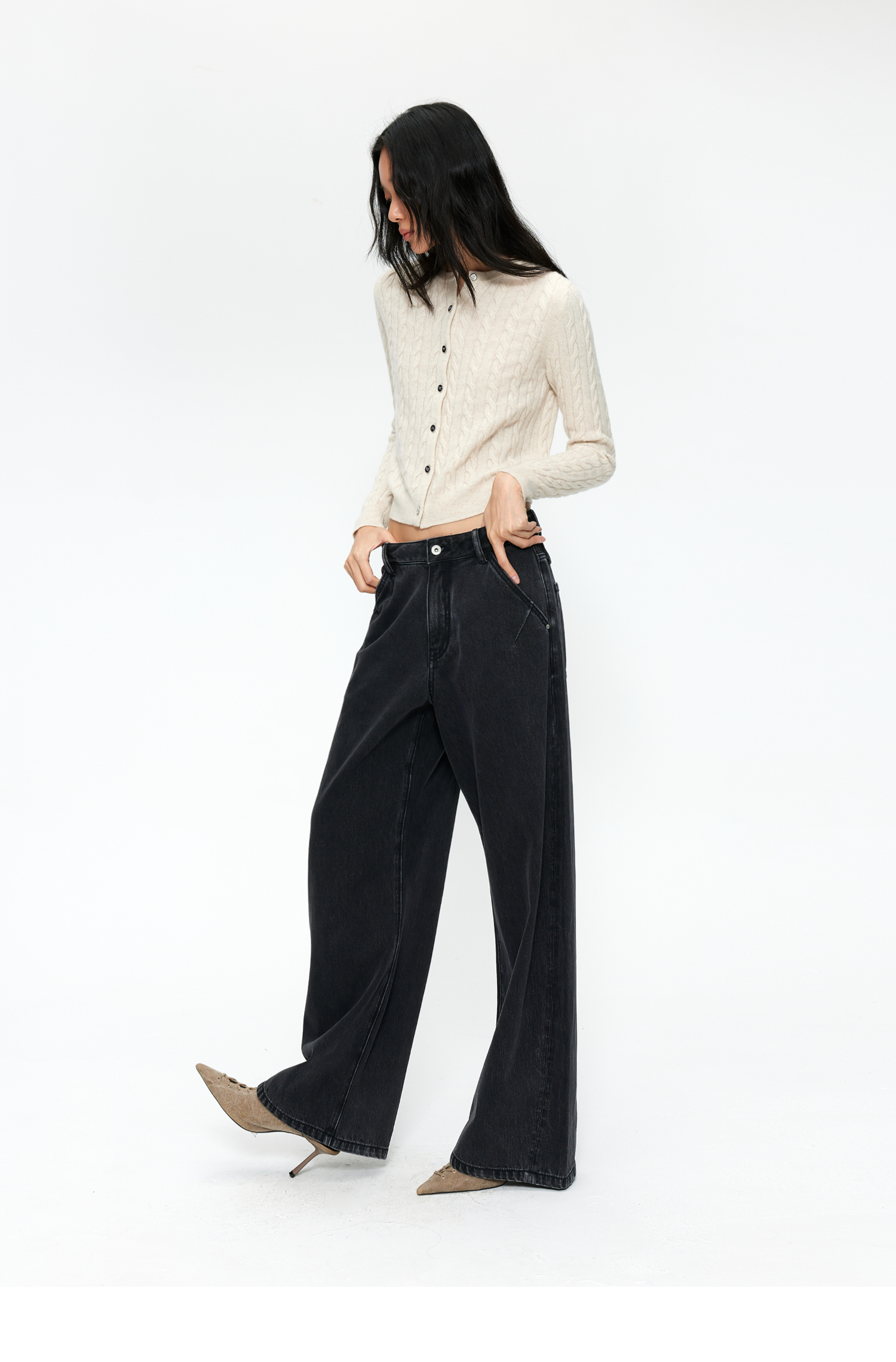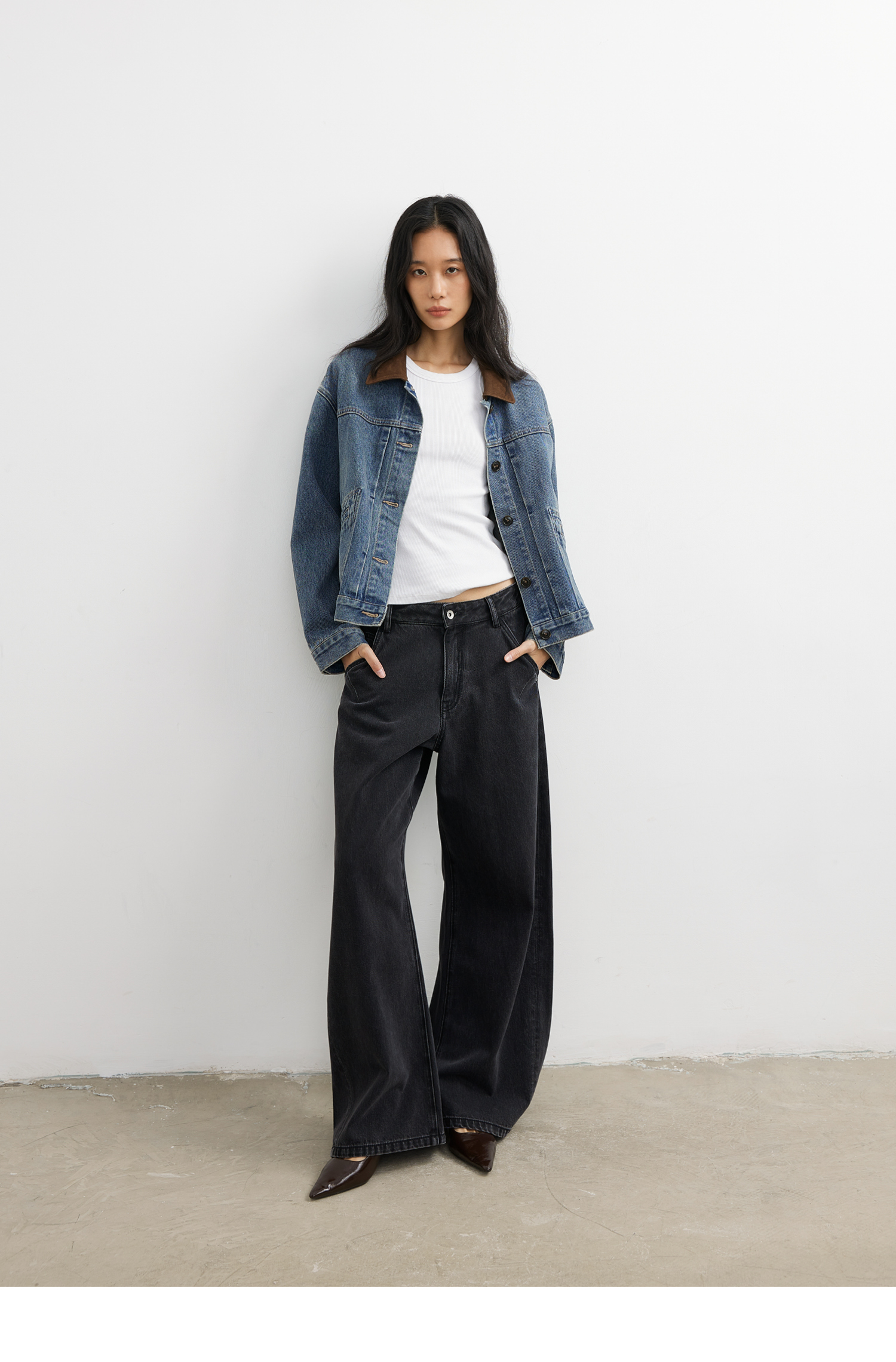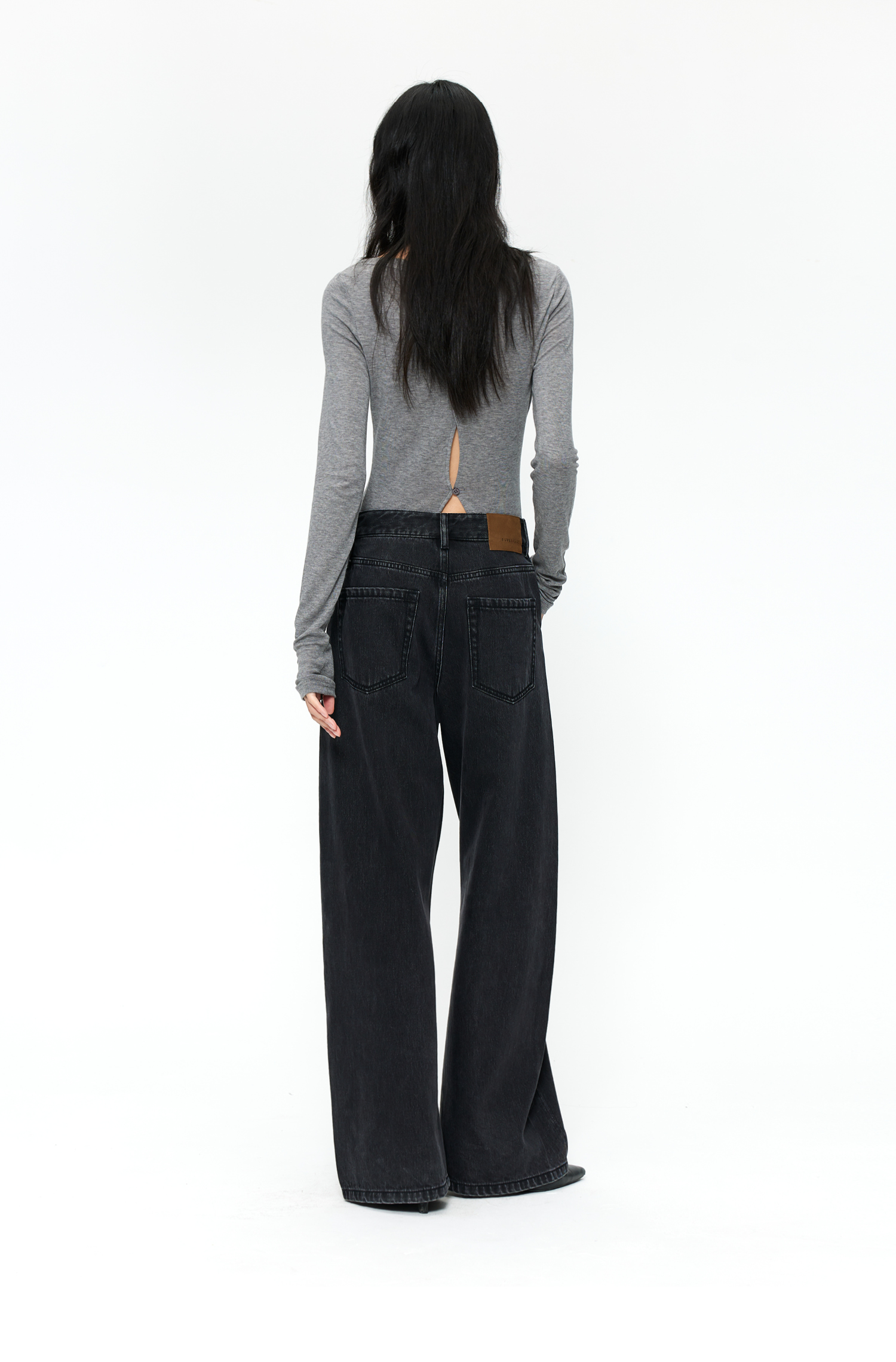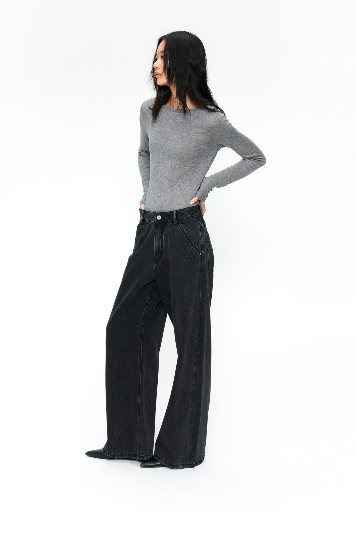 【8/25新品】素舶 S4 全棉进口染料怀旧褪色水洗黑牛耐磨耐穿阔腿牛仔裤