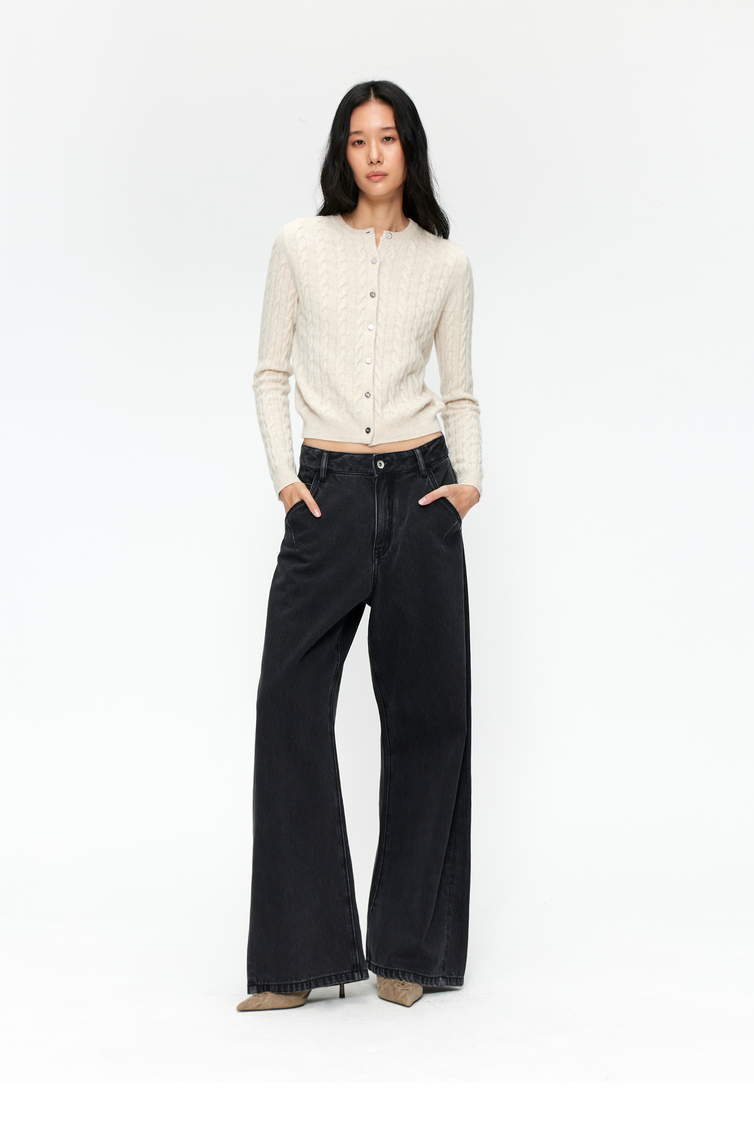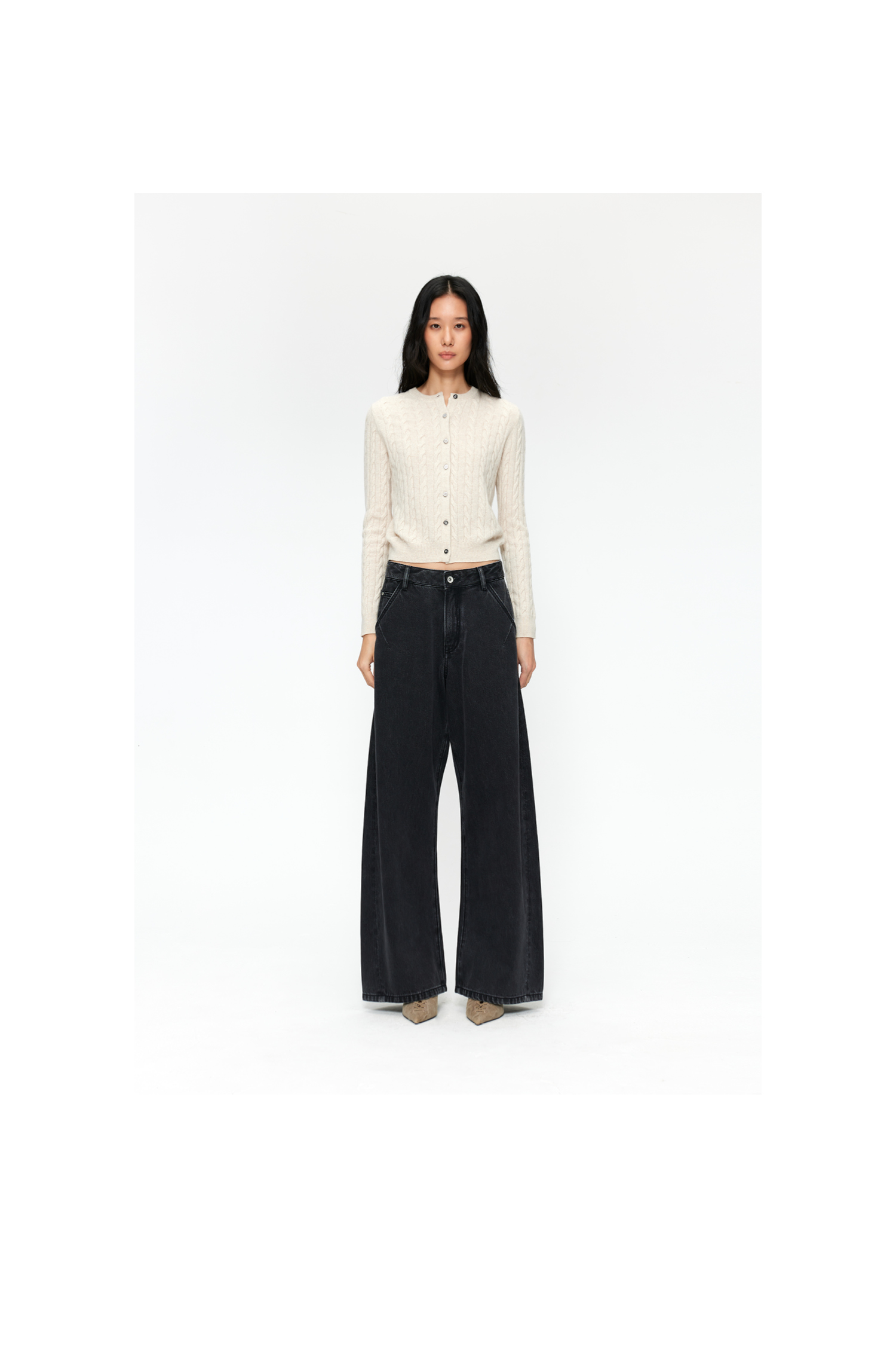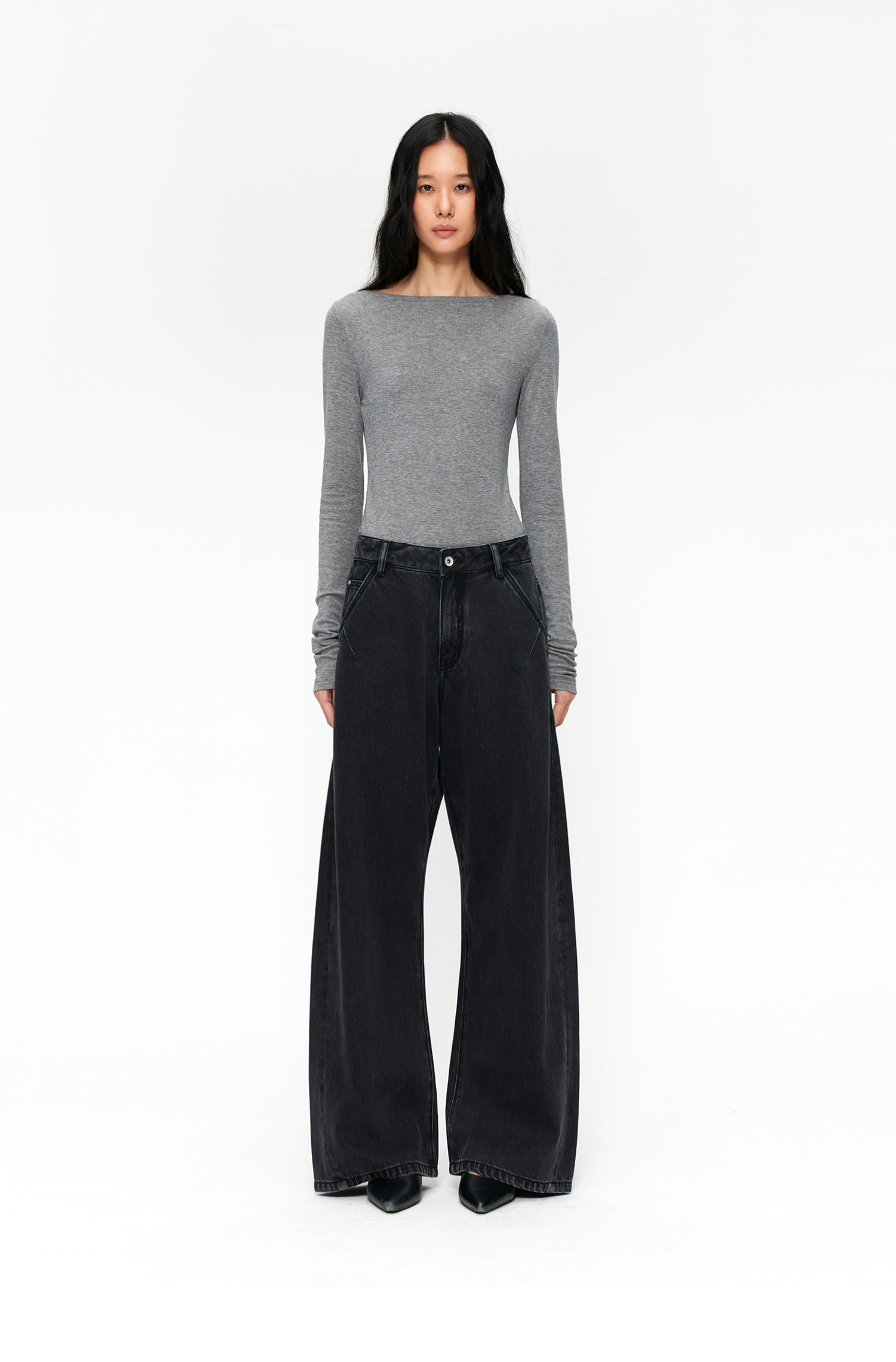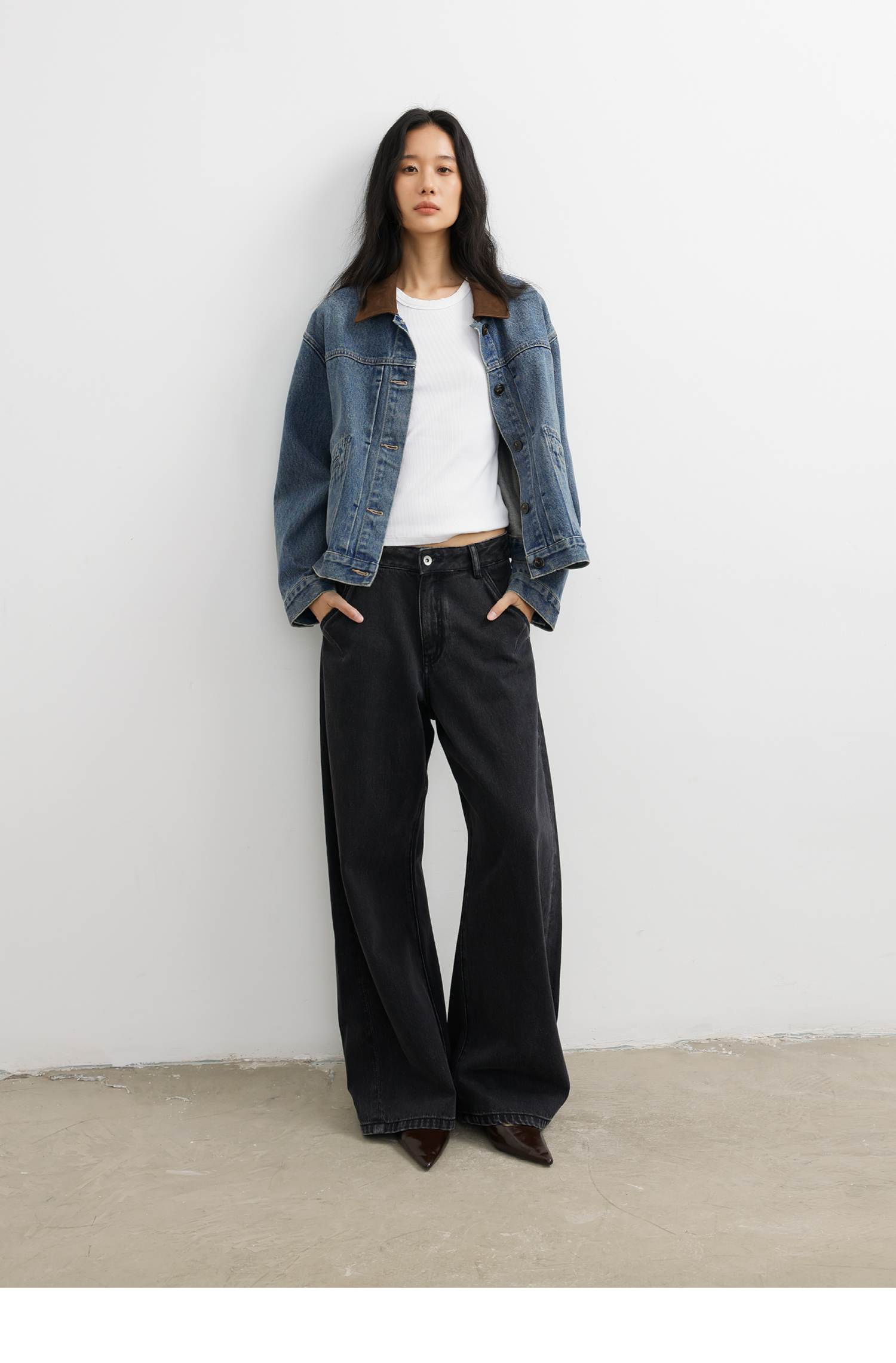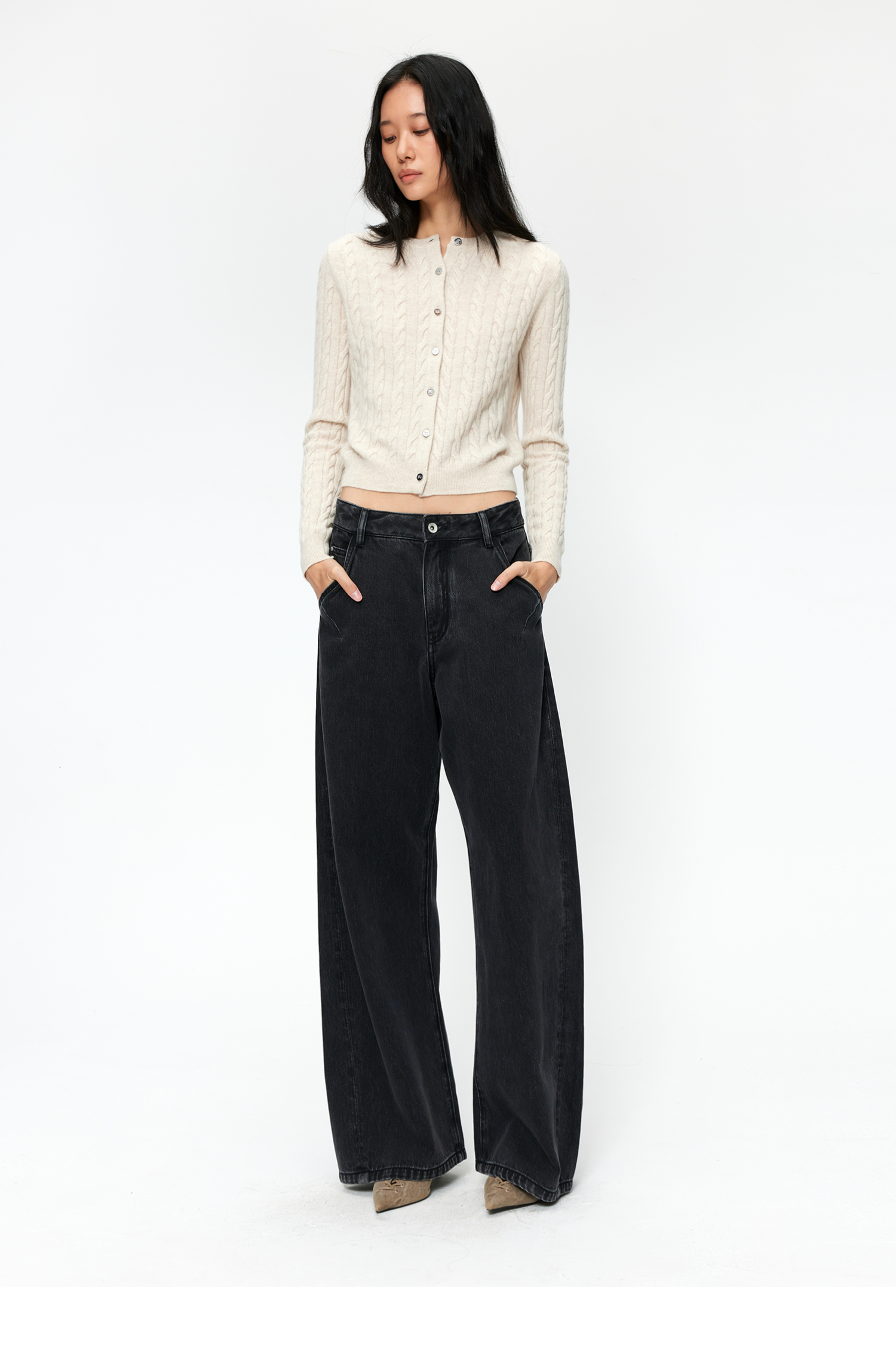 【8/25新品】素舶 S4 全棉进口染料怀旧褪色水洗黑牛耐磨耐穿阔腿牛仔裤