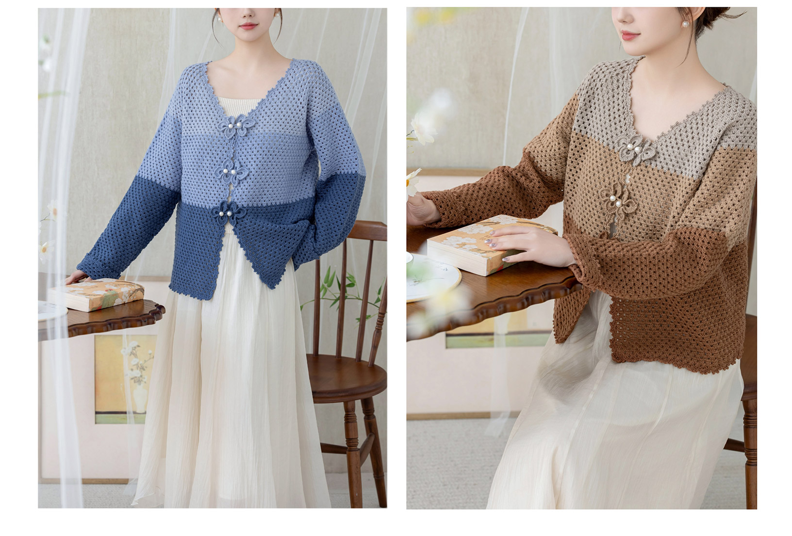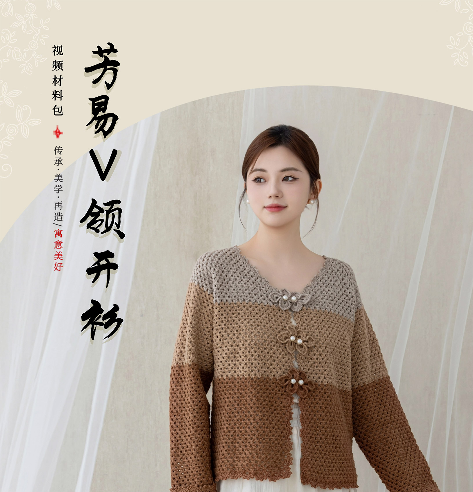 苏苏姐家芳易V领开衫手工diy钩针编织羊毛线毛线团材料包