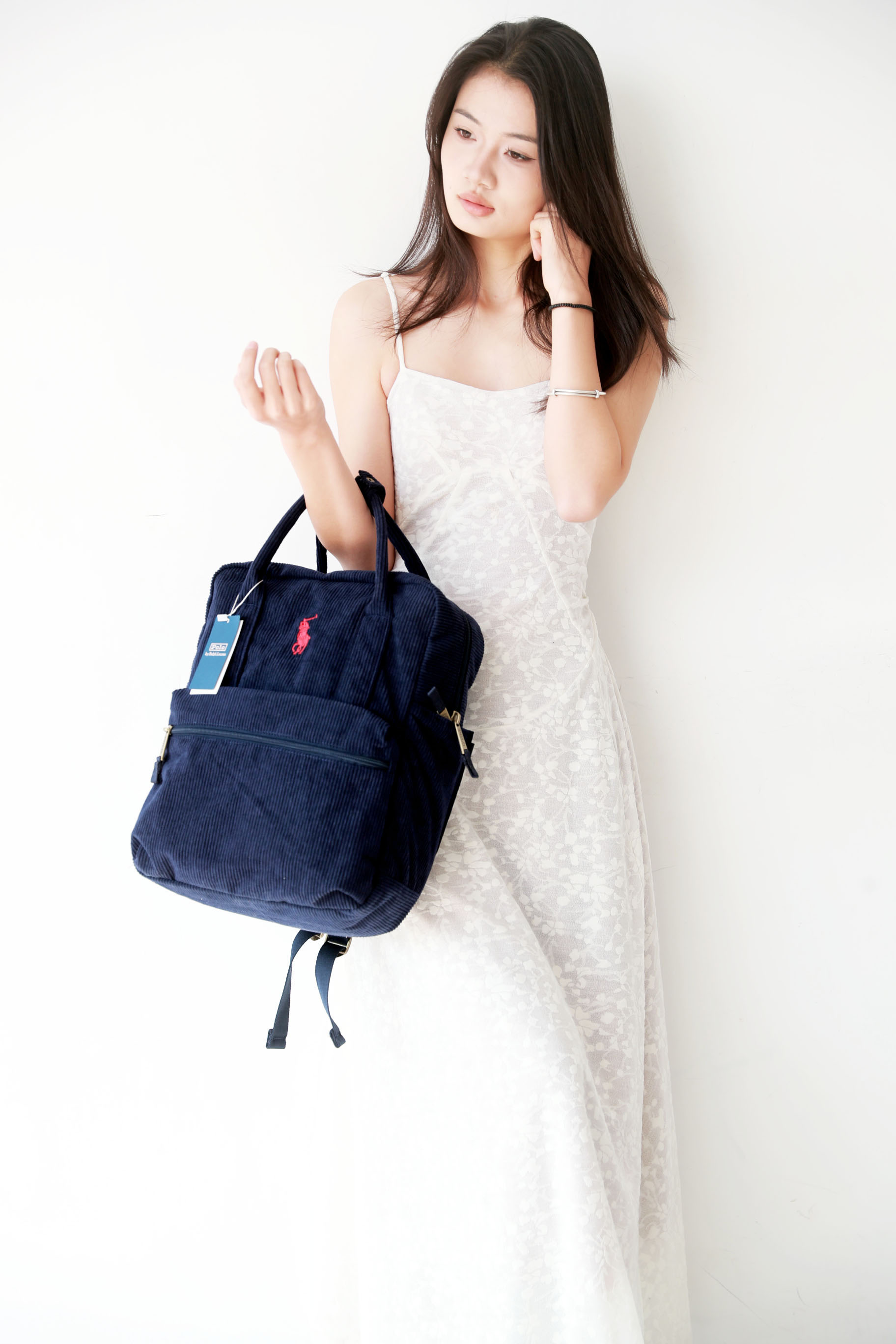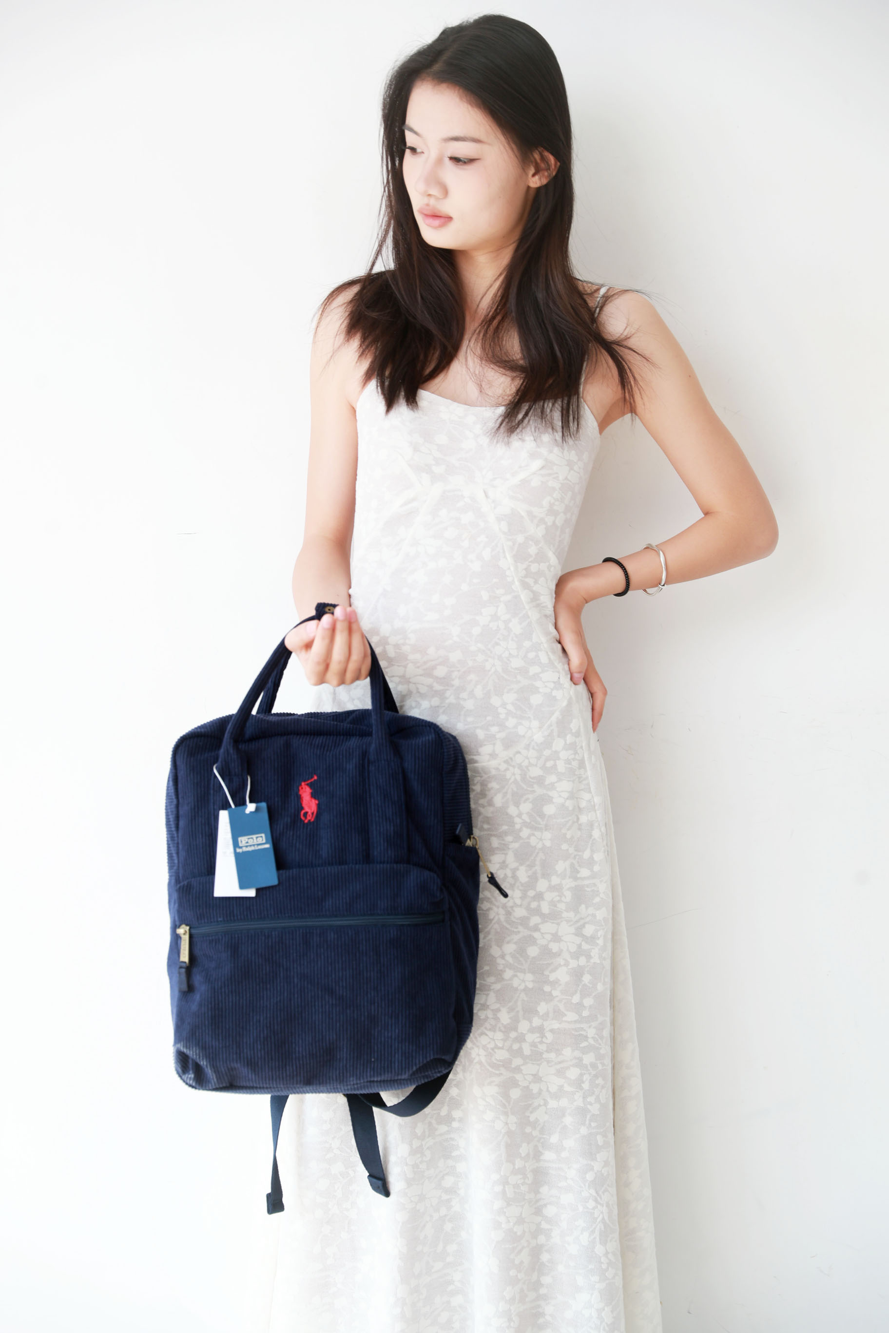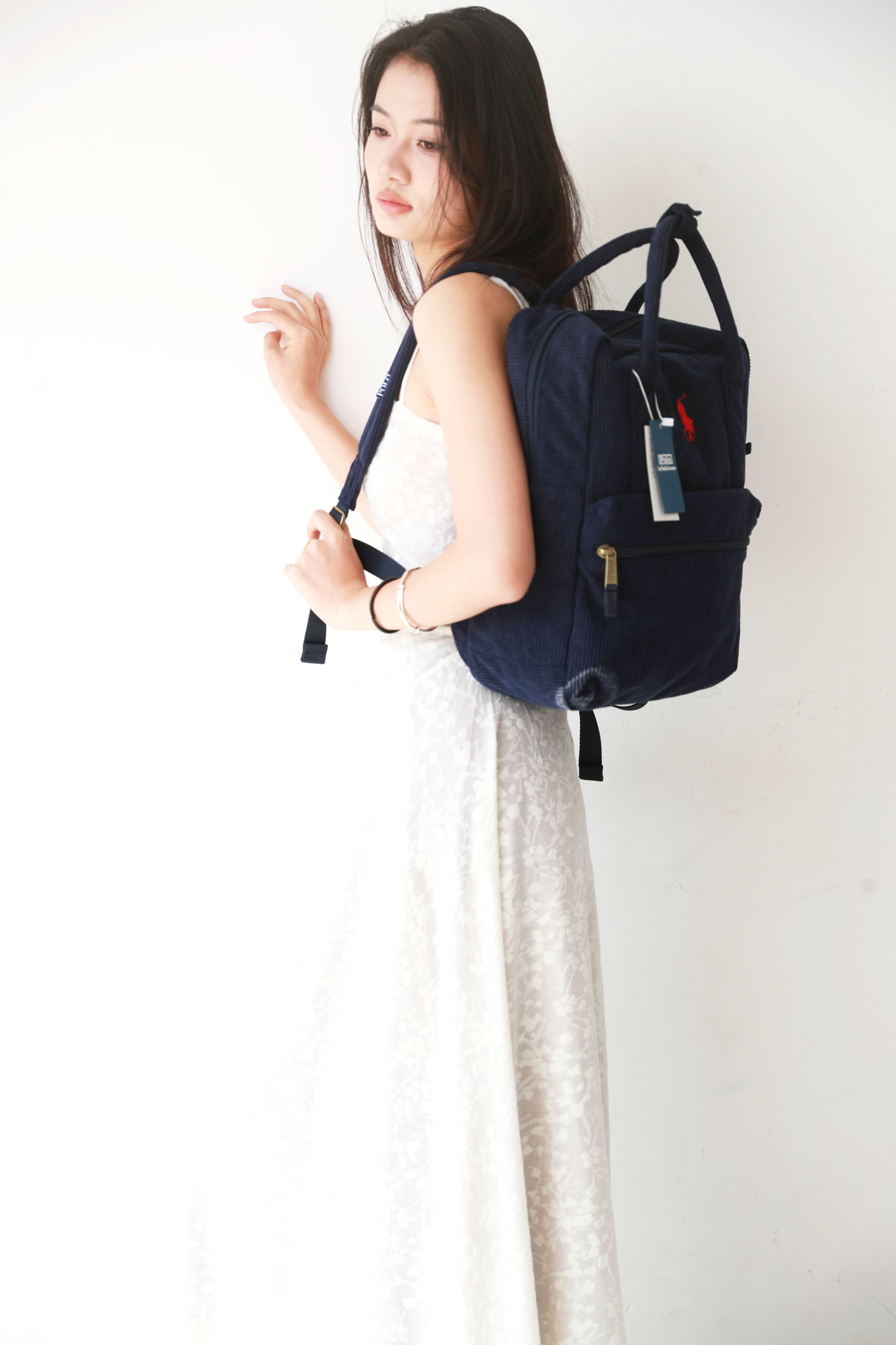 灯芯绒双肩包,小标刺绣工艺。大容量可手提复古拉链背包C120368