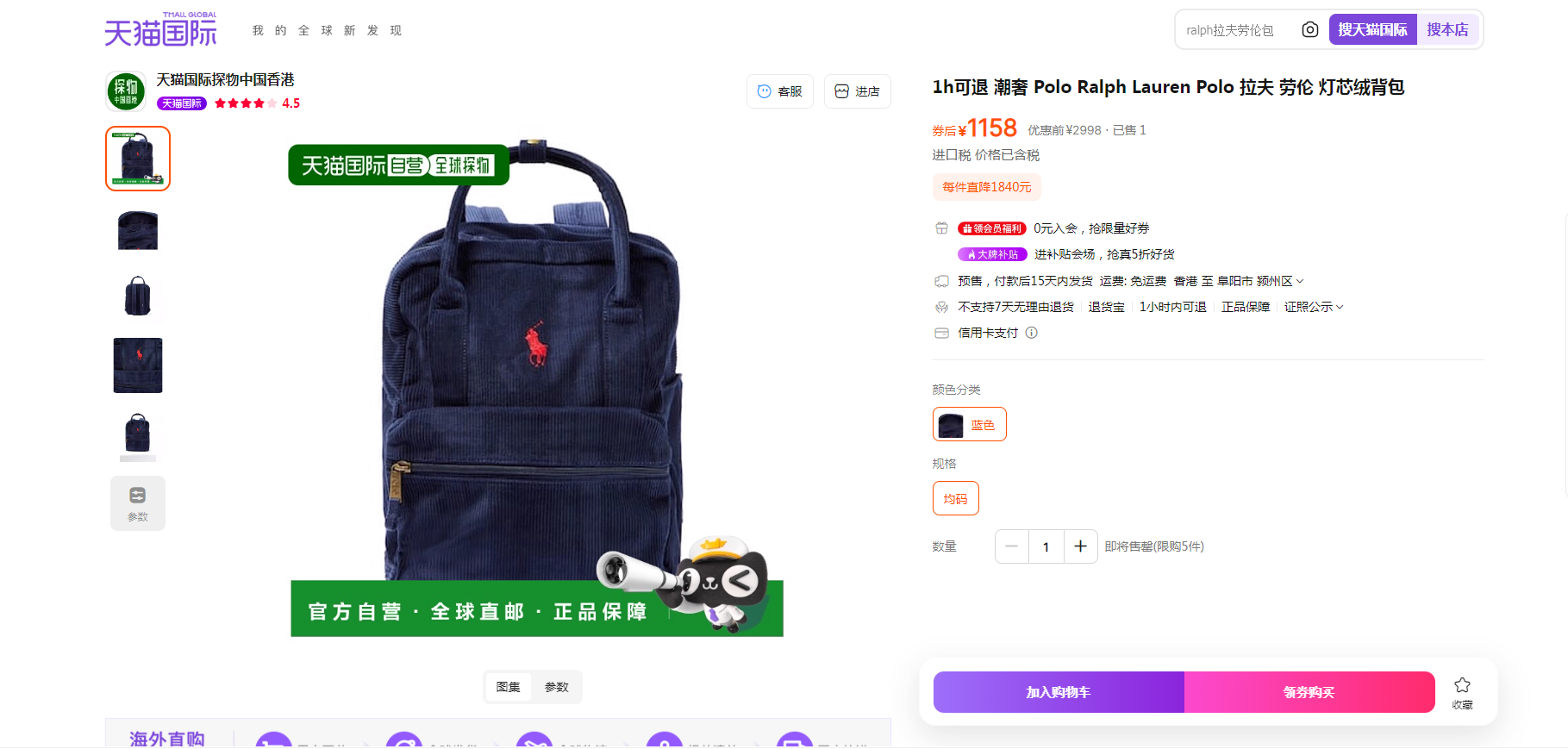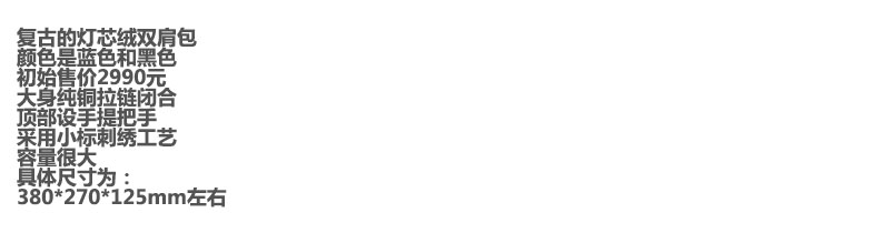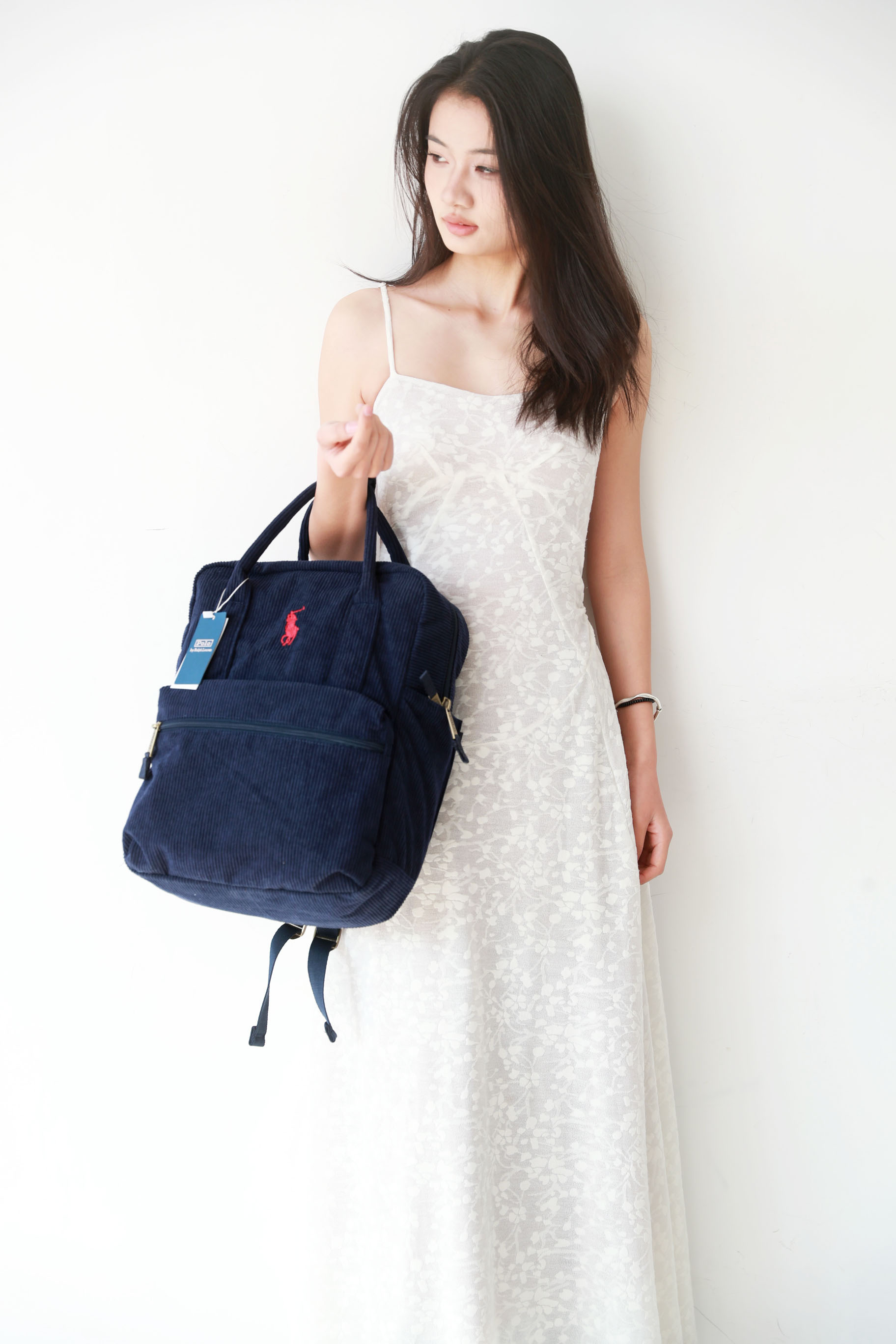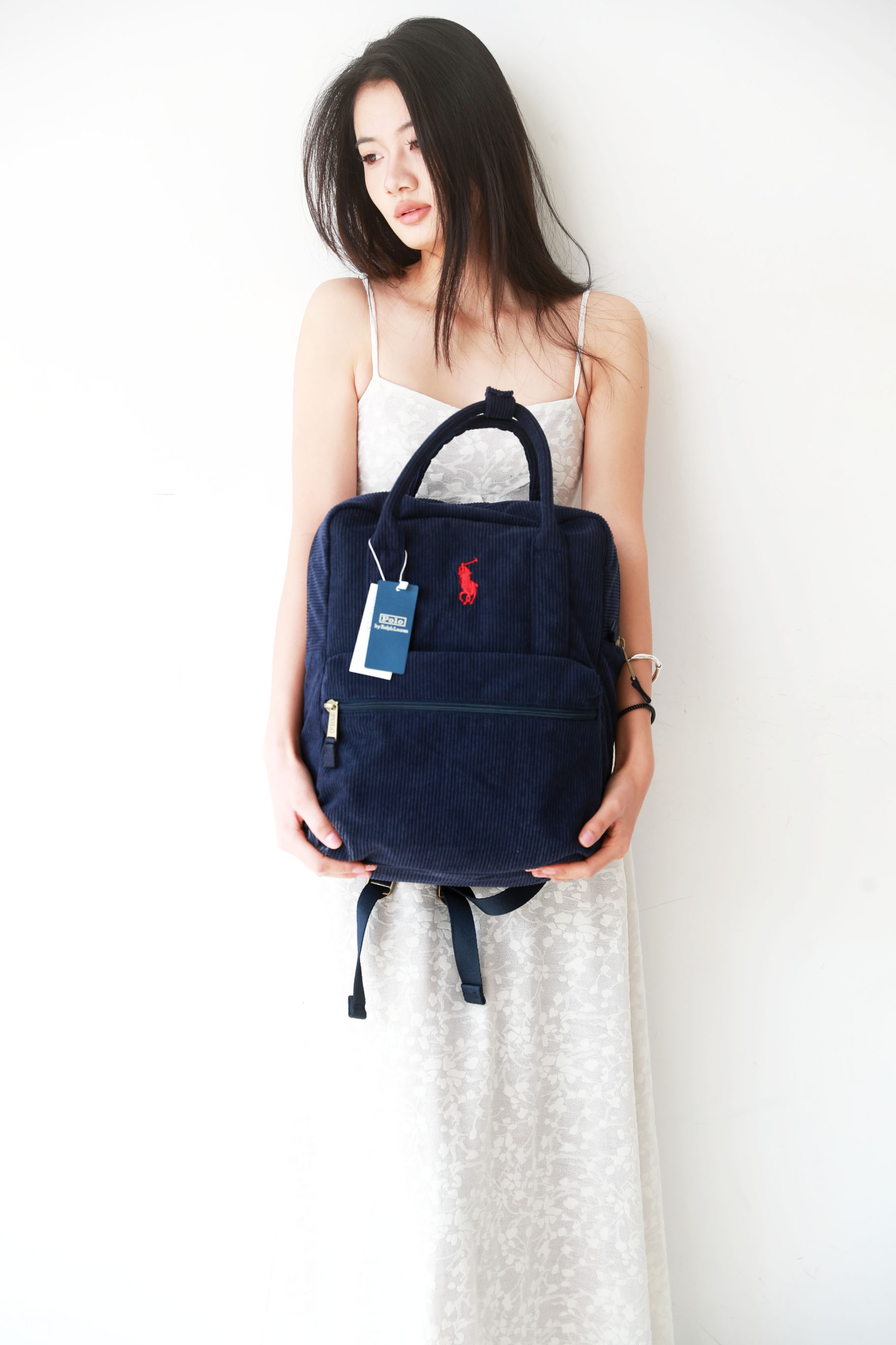 灯芯绒双肩包,小标刺绣工艺。大容量可手提复古拉链背包C120368