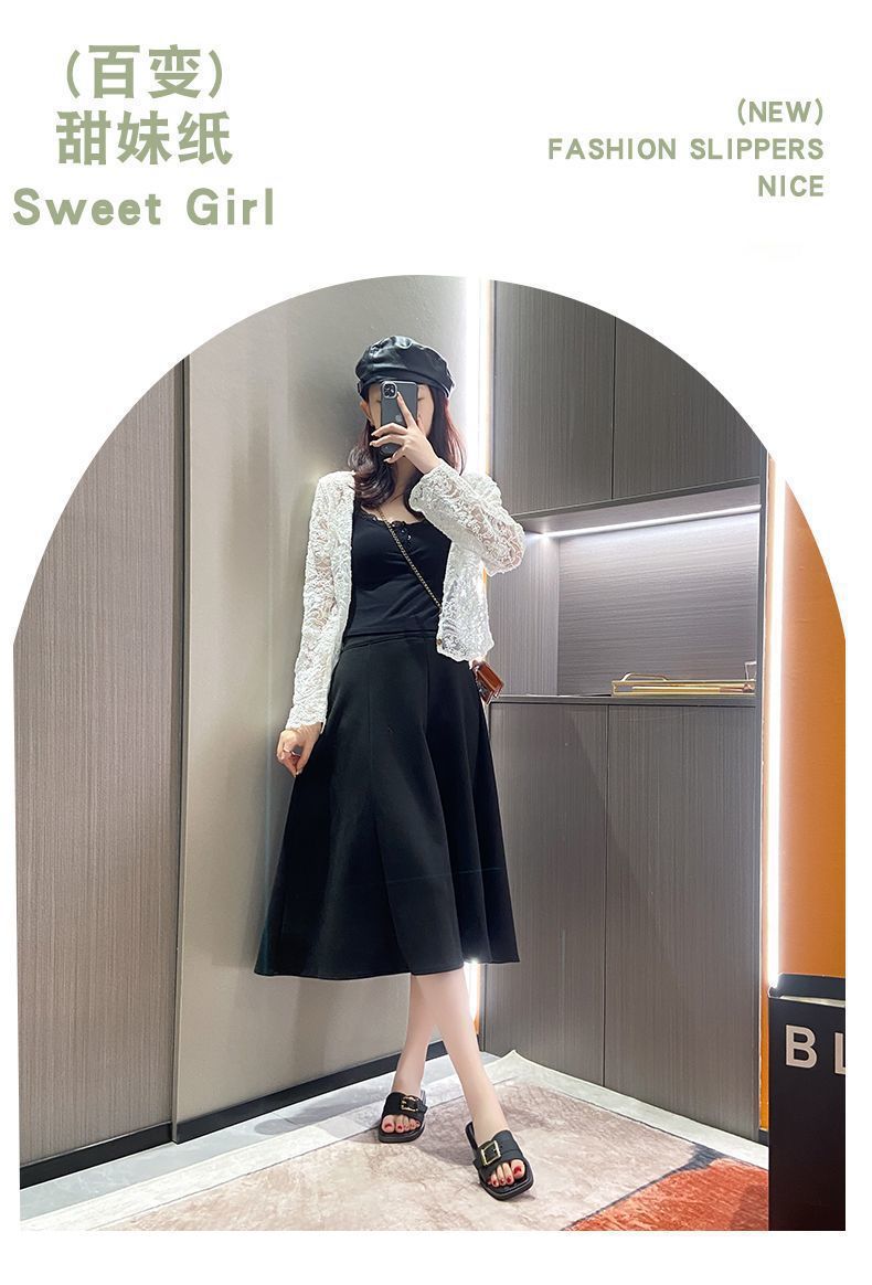 【时尚百搭❗️方扣平底凉拖鞋】2.5cm踩屎感,舒适软弹,久穿不累!网红爆款一字拖女新款金属拖鞋女夏季日常通勤仙女风配裙子