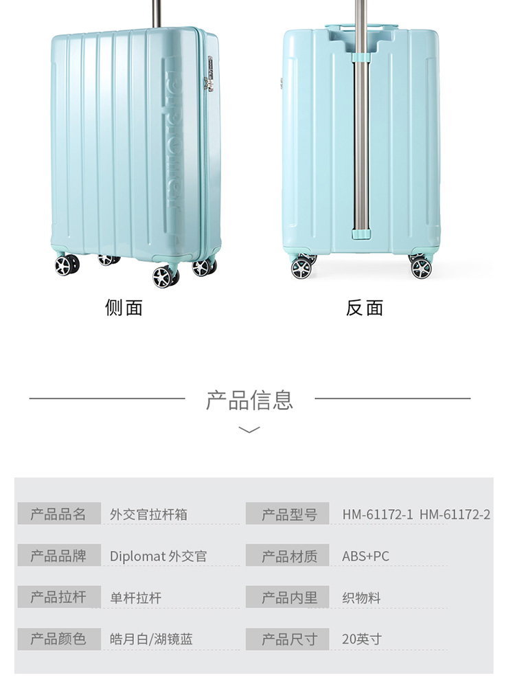 外交官 拉杆箱 HM-61172-1 20寸 皓月白/湖镜蓝 商品缩略图0 外交官 拉杆箱 HM-61172-1 20寸 皓月白/湖镜蓝 商品缩略图1 外交官 拉杆箱 HM-61172-1 20寸 皓月白/湖镜蓝 商品缩略图2 外交官 拉杆箱 HM-61172-1 20寸 皓月白/湖镜蓝 商品缩略图3 外交官 拉杆箱 HM-61172-1 20寸 皓月白/湖镜蓝 商品缩略图4 外交官 拉杆箱 HM-61172-1 20寸 皓月白/湖镜蓝 商品缩略图5