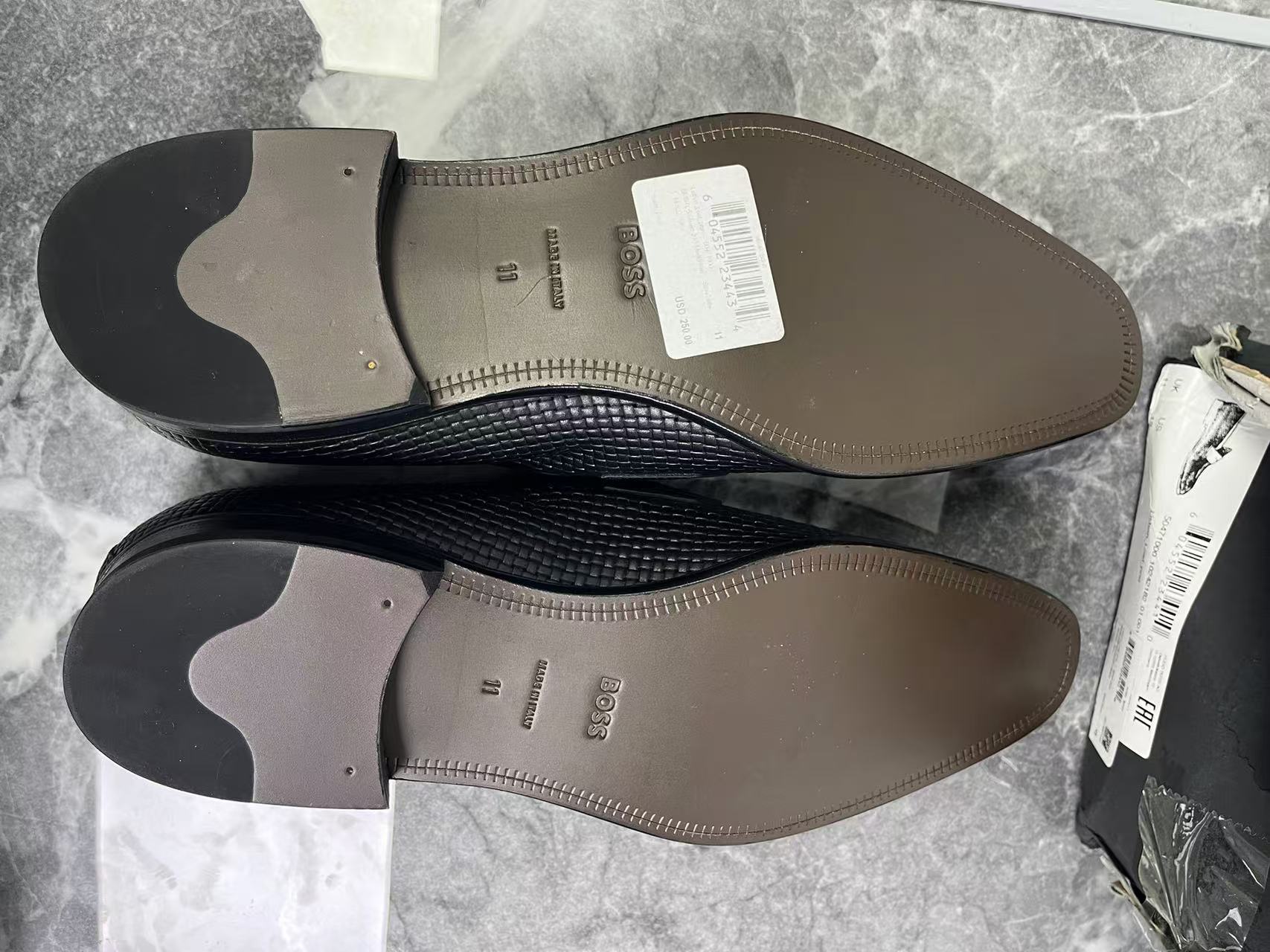 瑕疵意大利产 HUGO BOSS 男士小方头编织纹一脚蹬乐福鞋商务休闲皮鞋