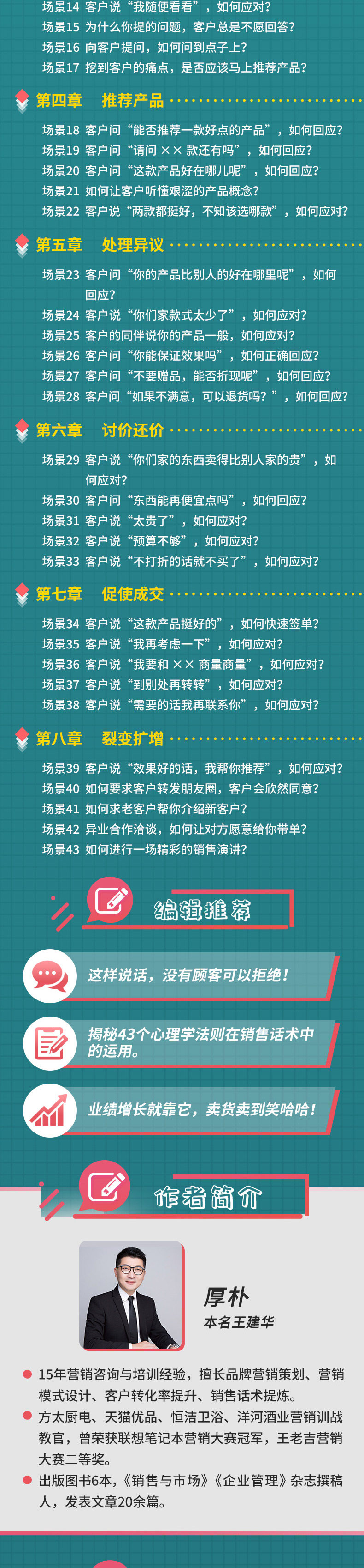这样说话,没有顾客可以拒绝! 揭秘43个心理学法则在销售话术中的运用。 业绩增长就靠它,卖货卖到笑哈哈! |
