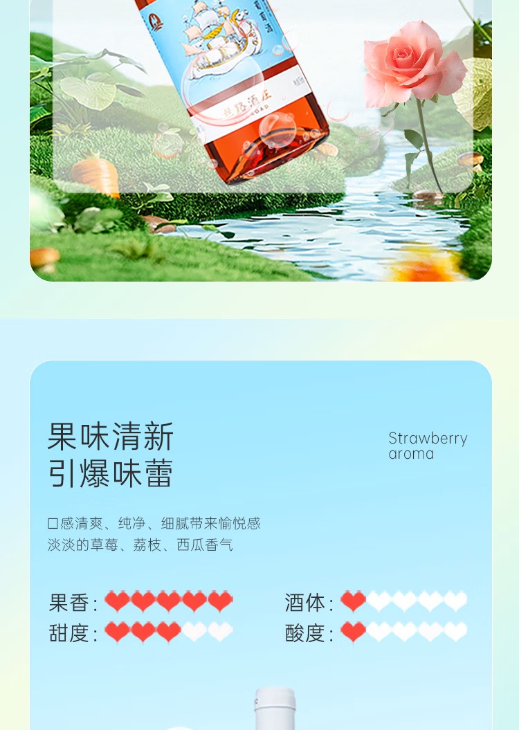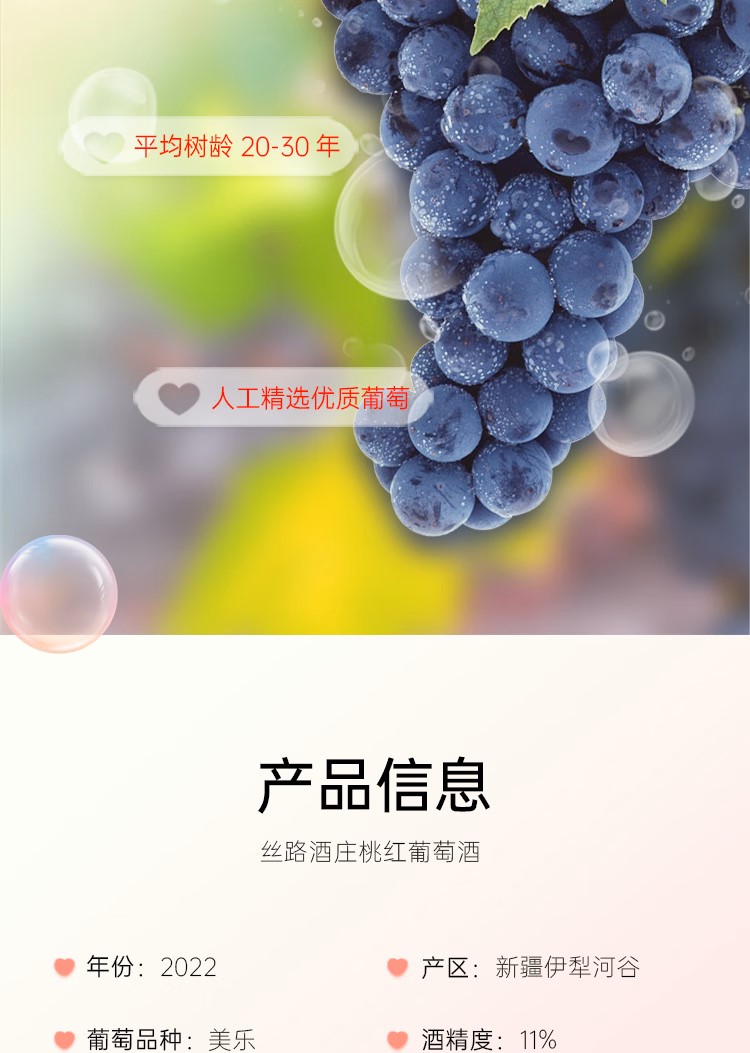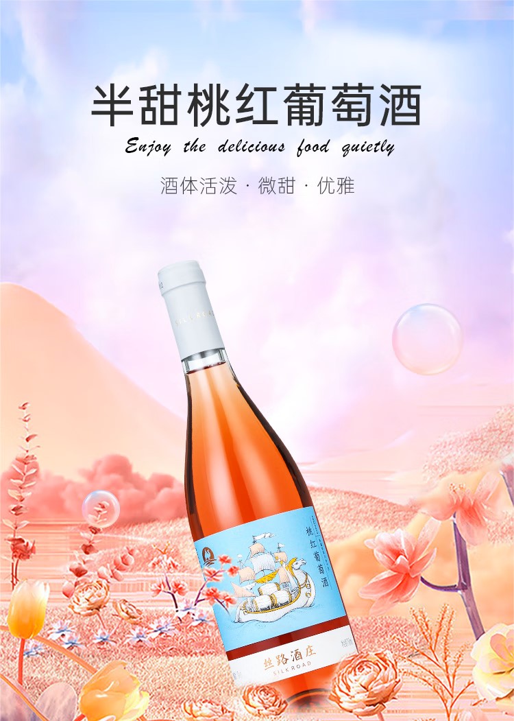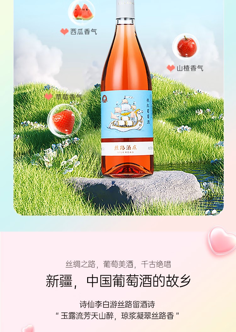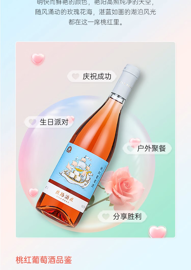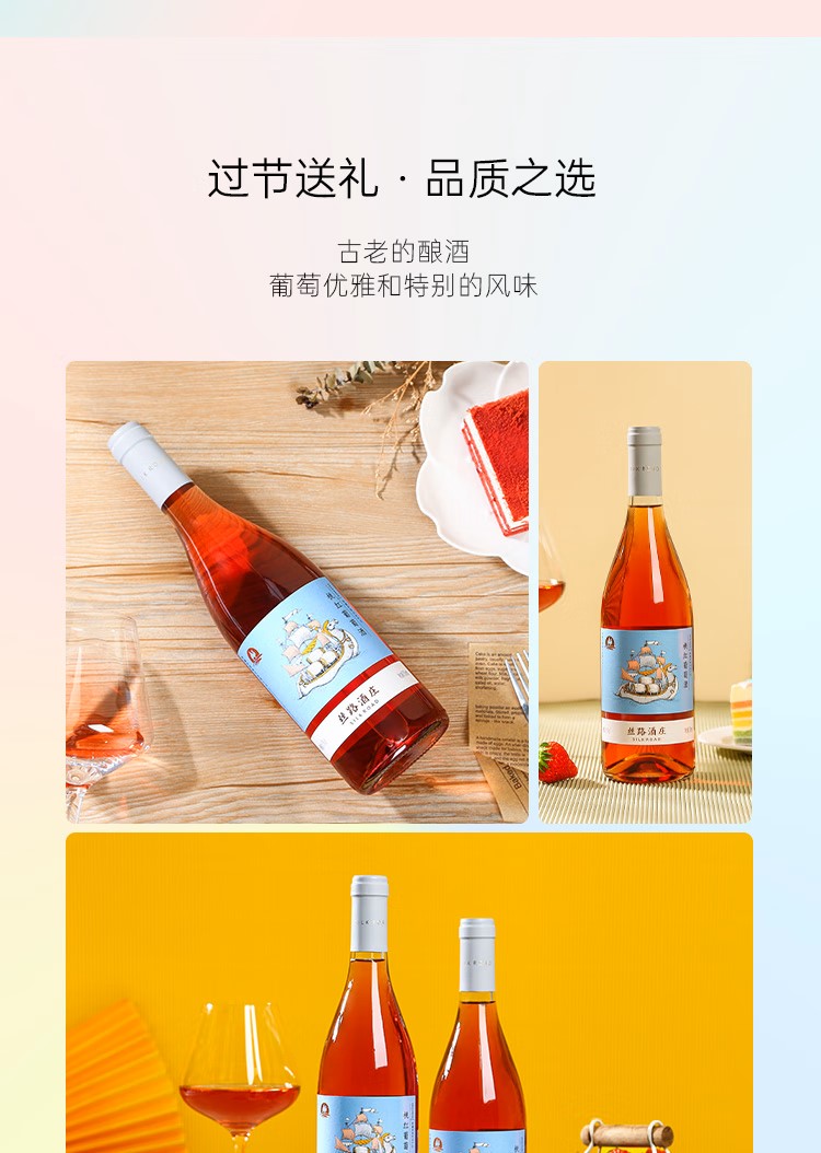 丝路酒庄新疆伊犁河谷产区女士半甜型桃红葡萄酒情人节婚宴礼盒装送礼