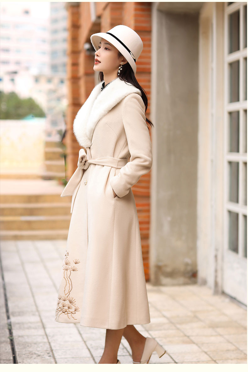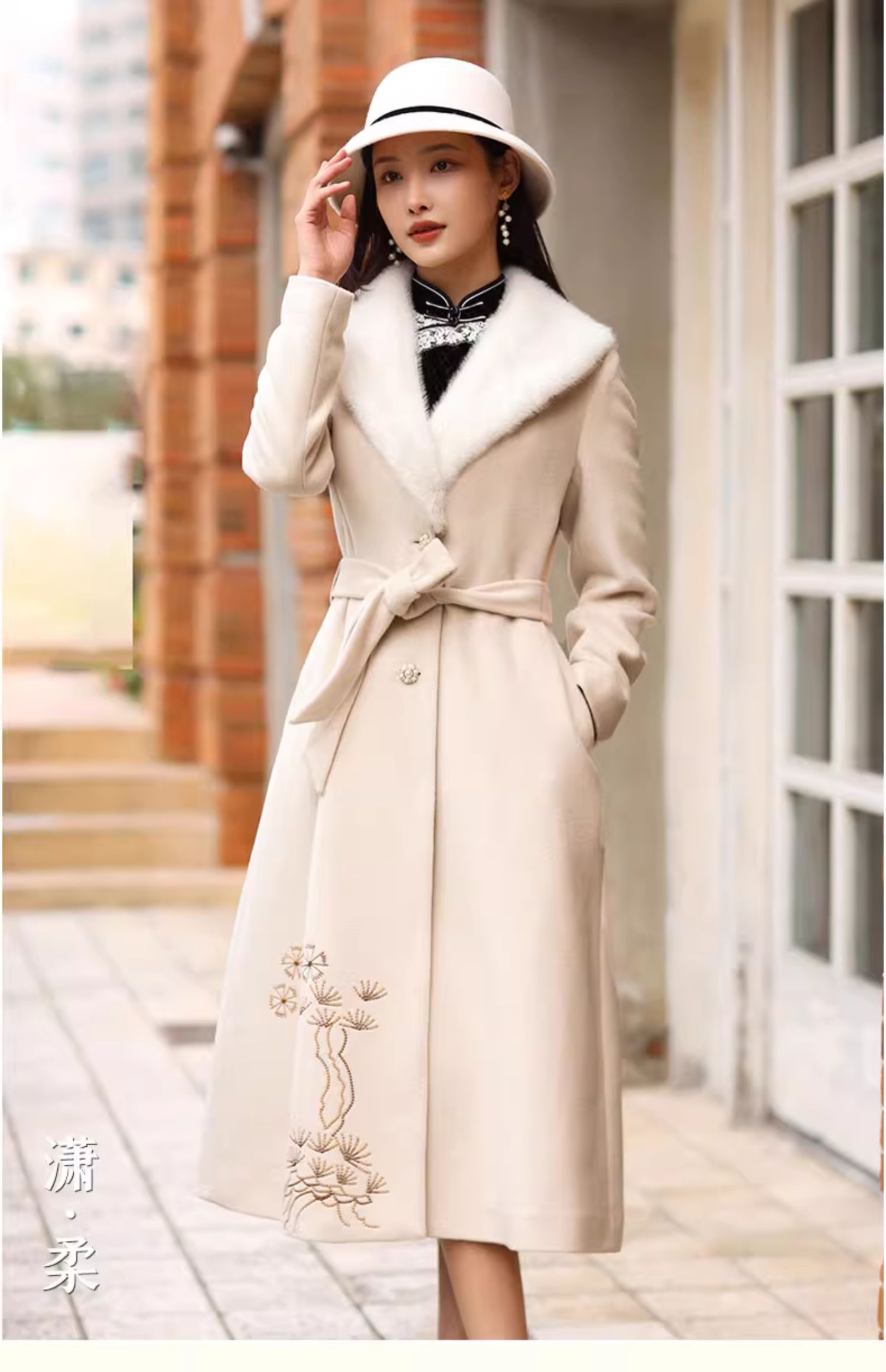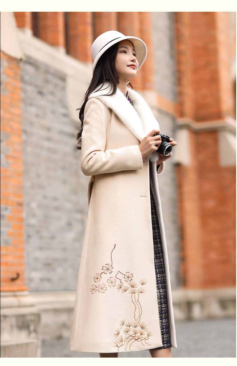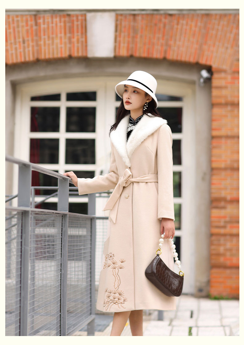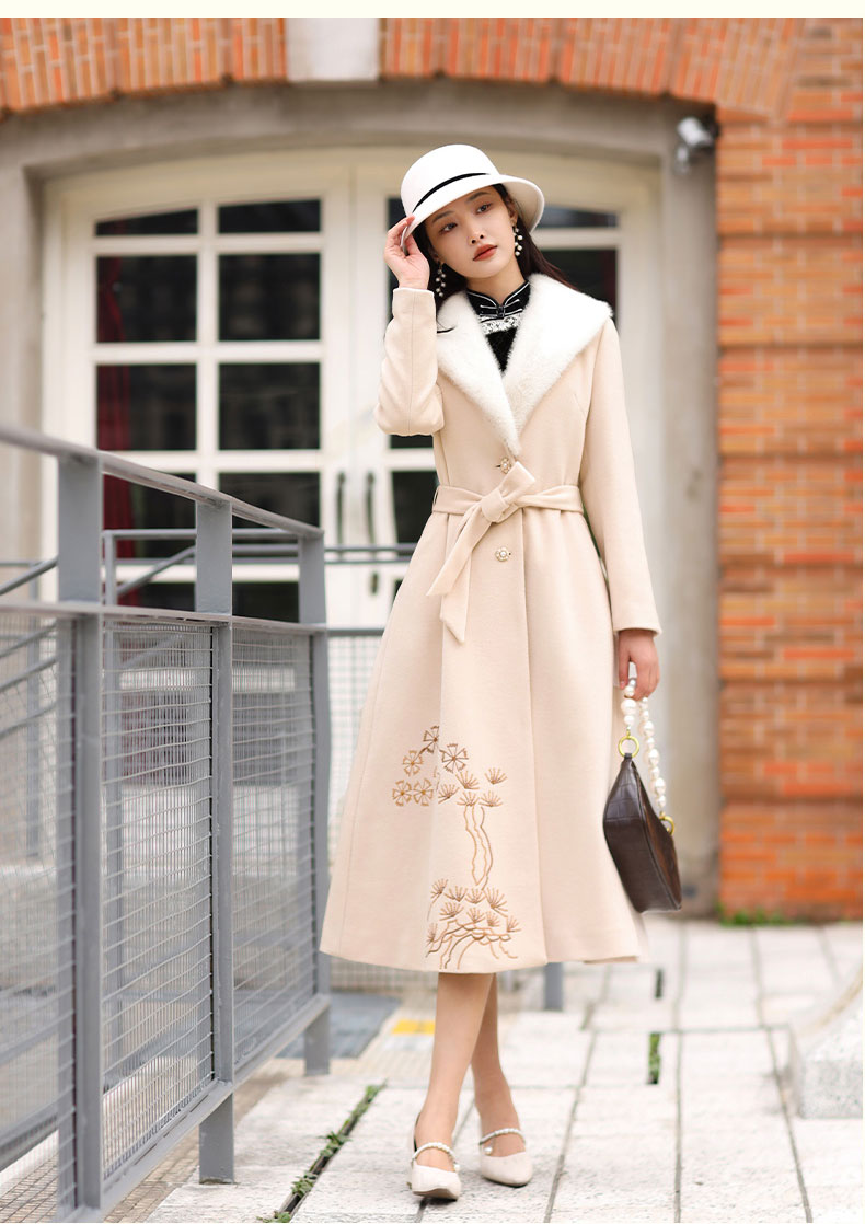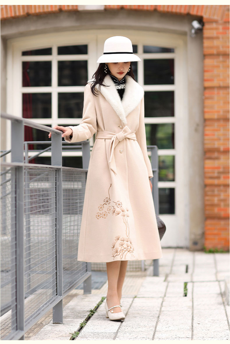 上海逸红颜潇柔2025年冬季新款羊毛刺绣陈都灵影视剧同款复古大衣