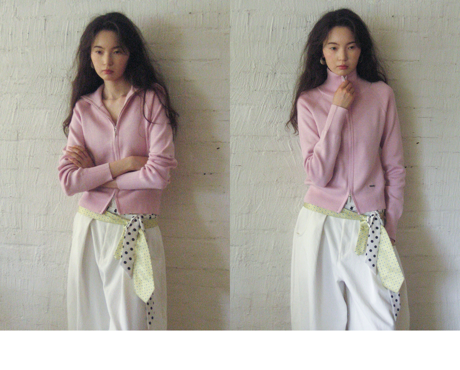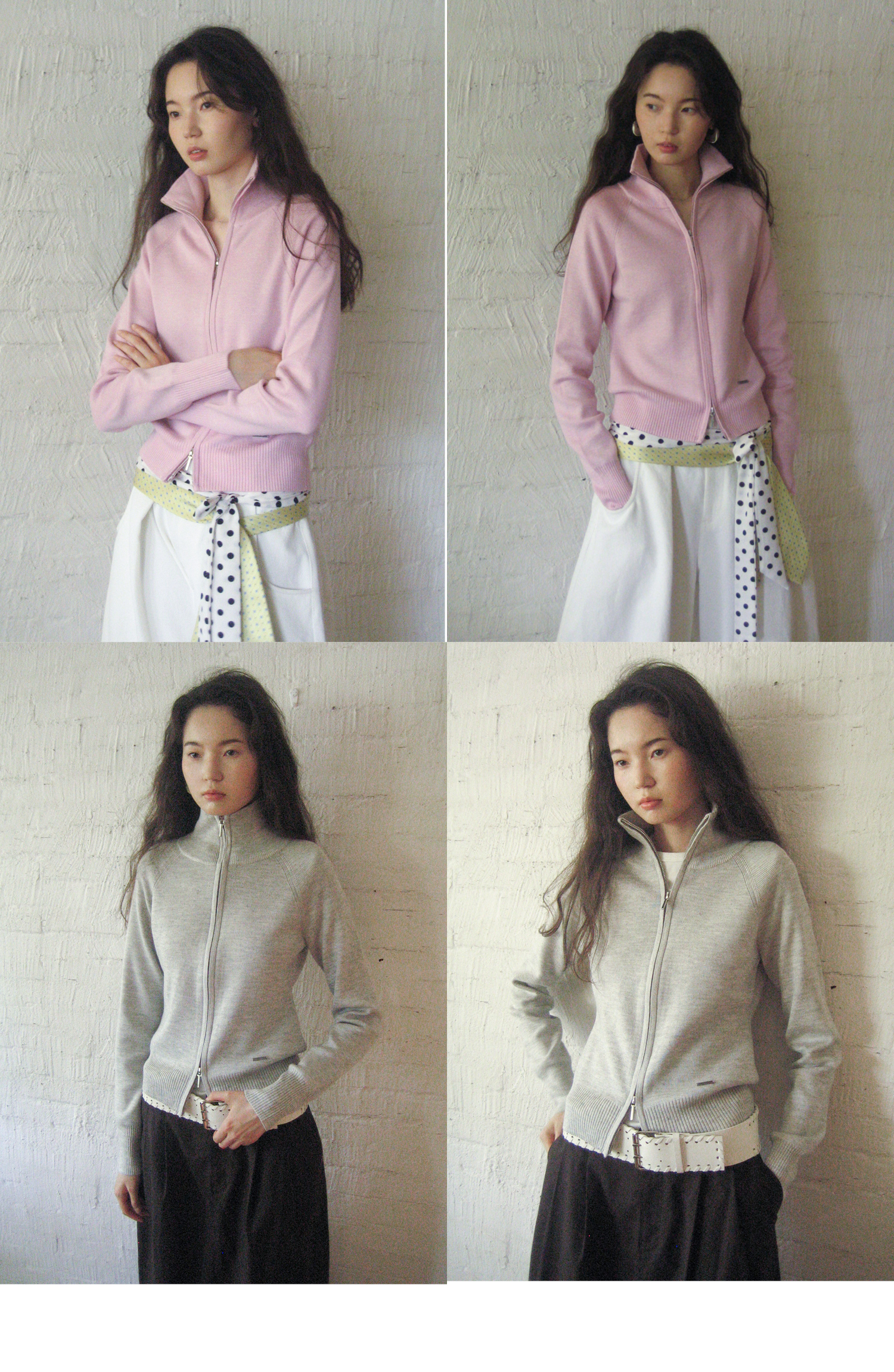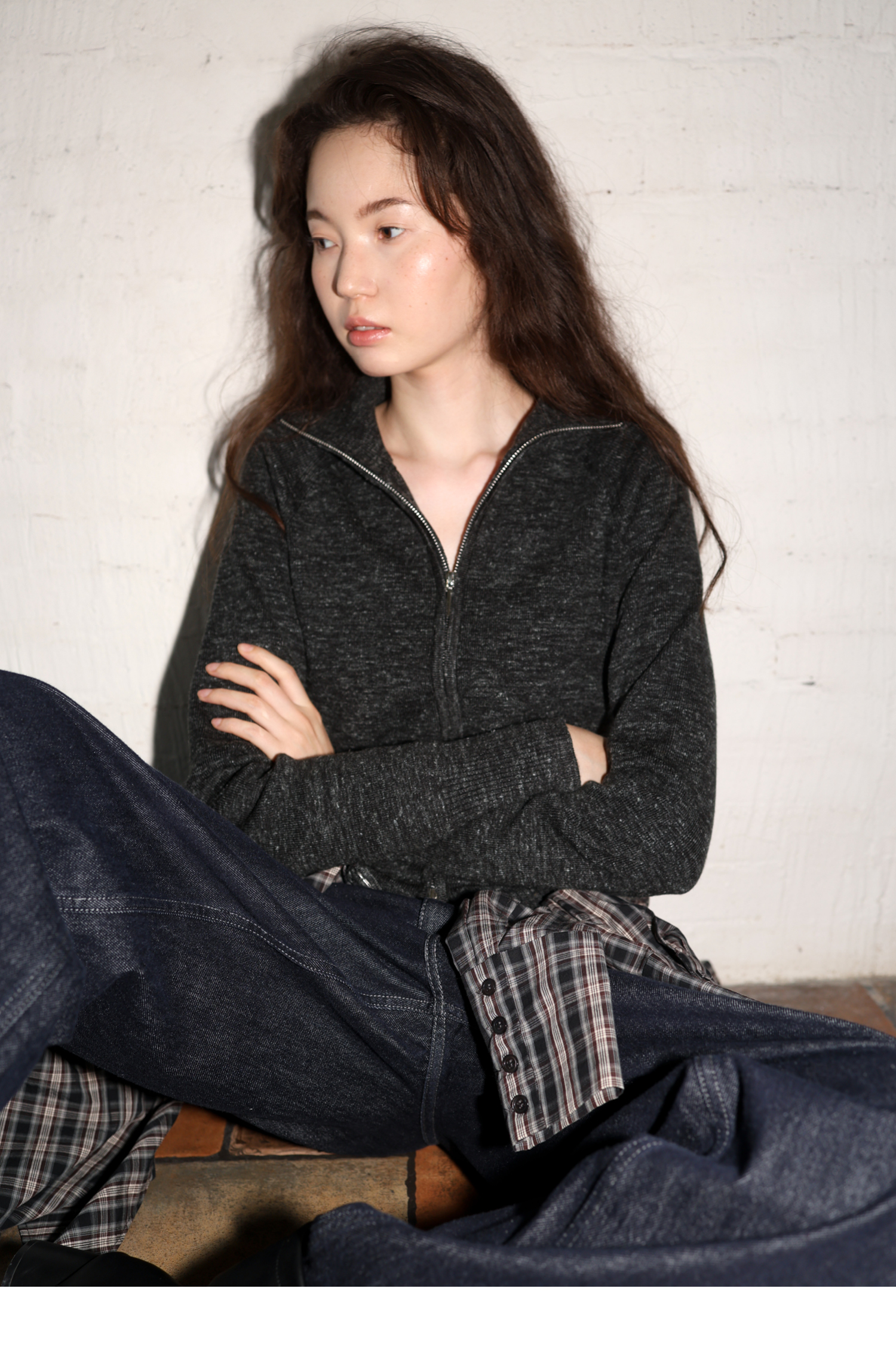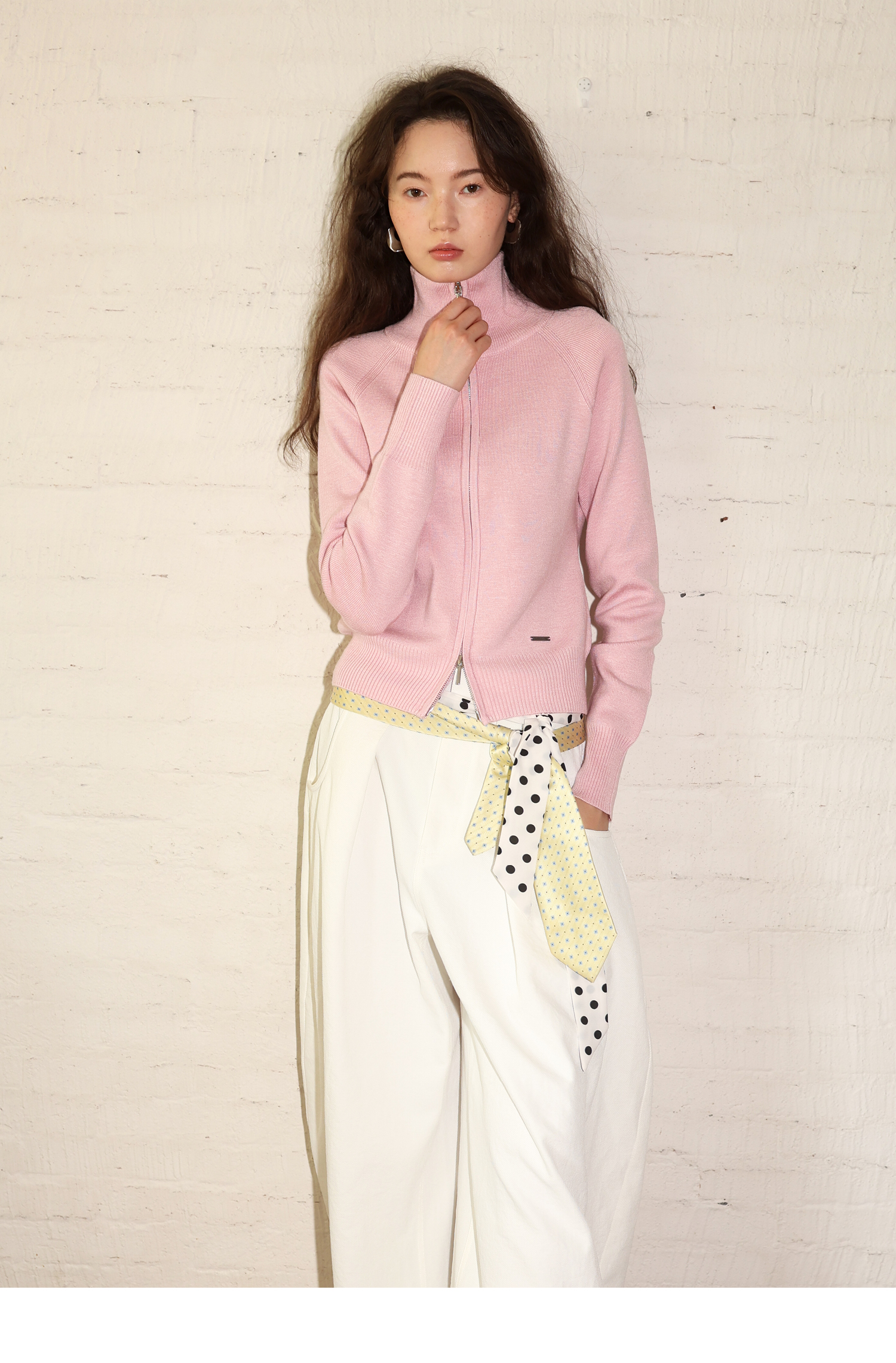 素舶 羊毛亚麻天然杂点调温抗菌插肩袖显瘦高领双头拉链针织开衫