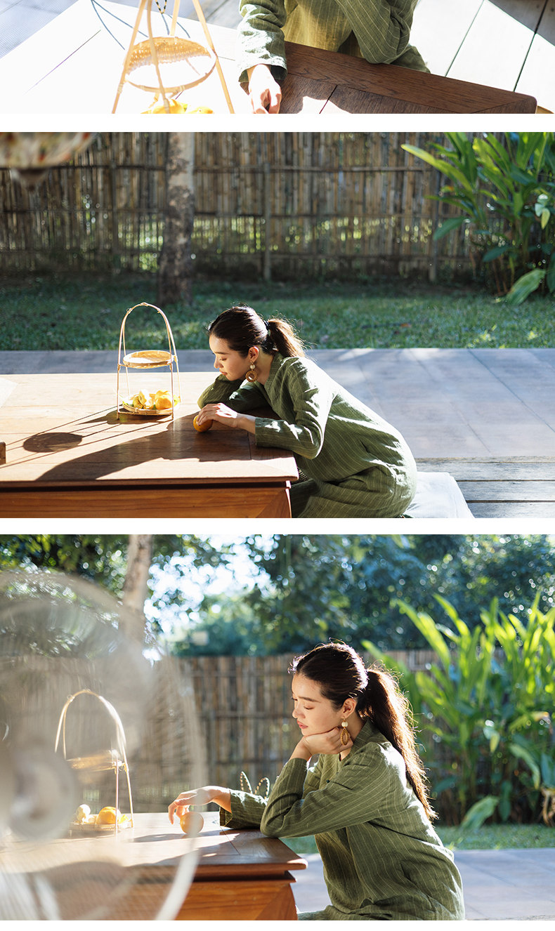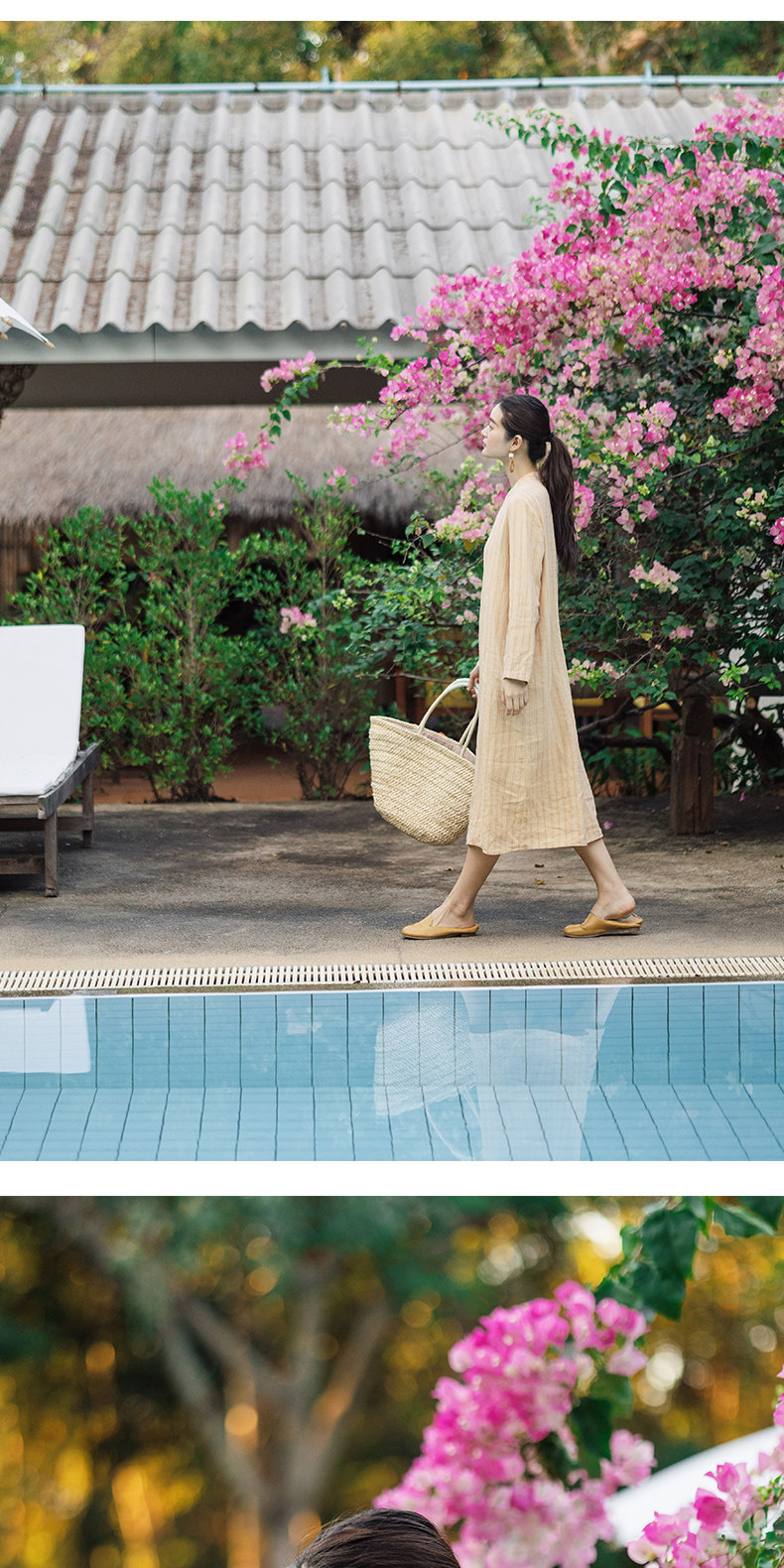 以天然亚麻为载体,融合热烈色彩与自在剪裁为身在城市、心怀远方的女性提供兼具美学与舒适的旅行着装