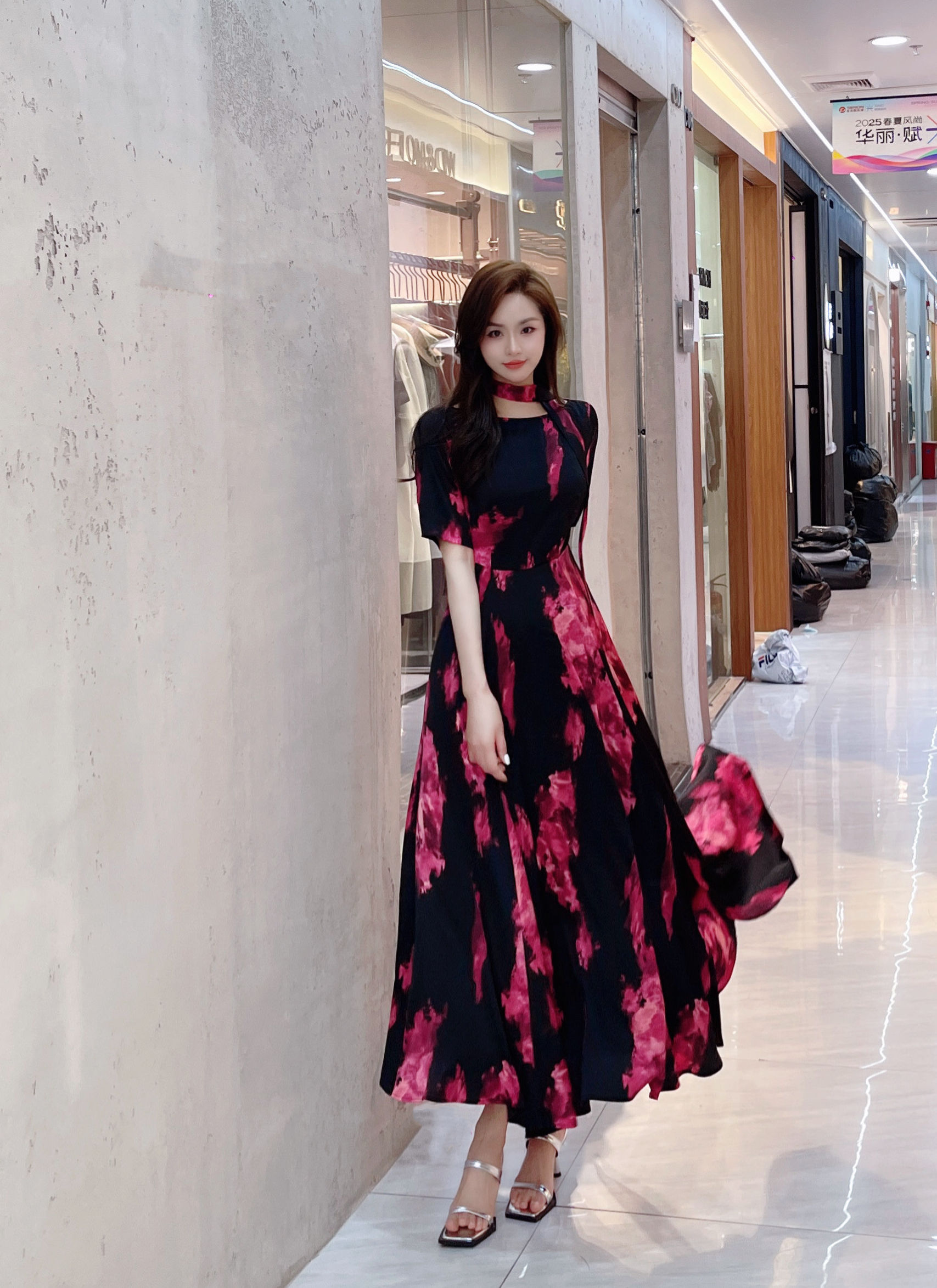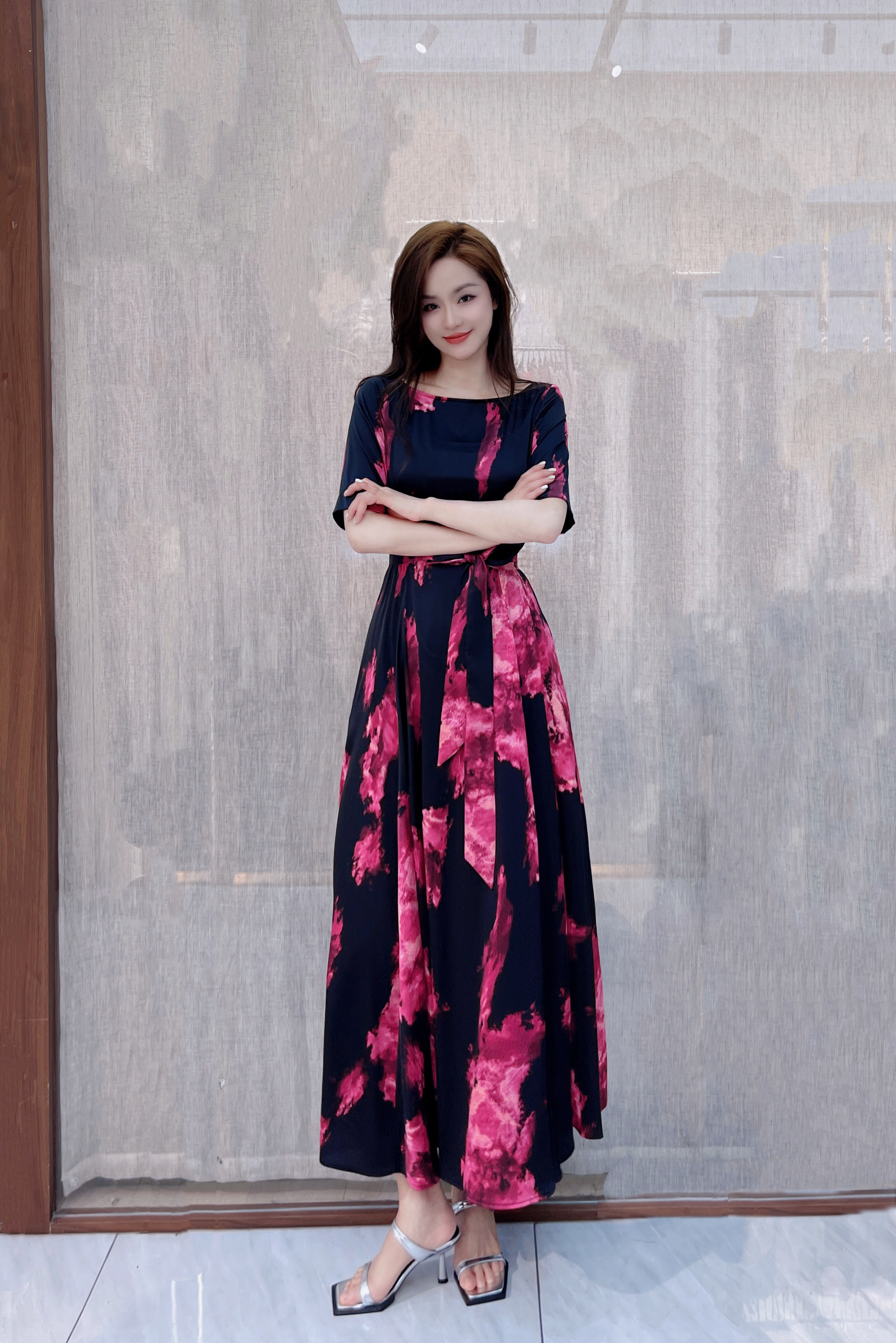 SZ2S77_魏红色_连衣裙_春夏_短袖船领收腰系带大摆气质通勤_高级女装_BERNIEELEN 伯妮斯茵