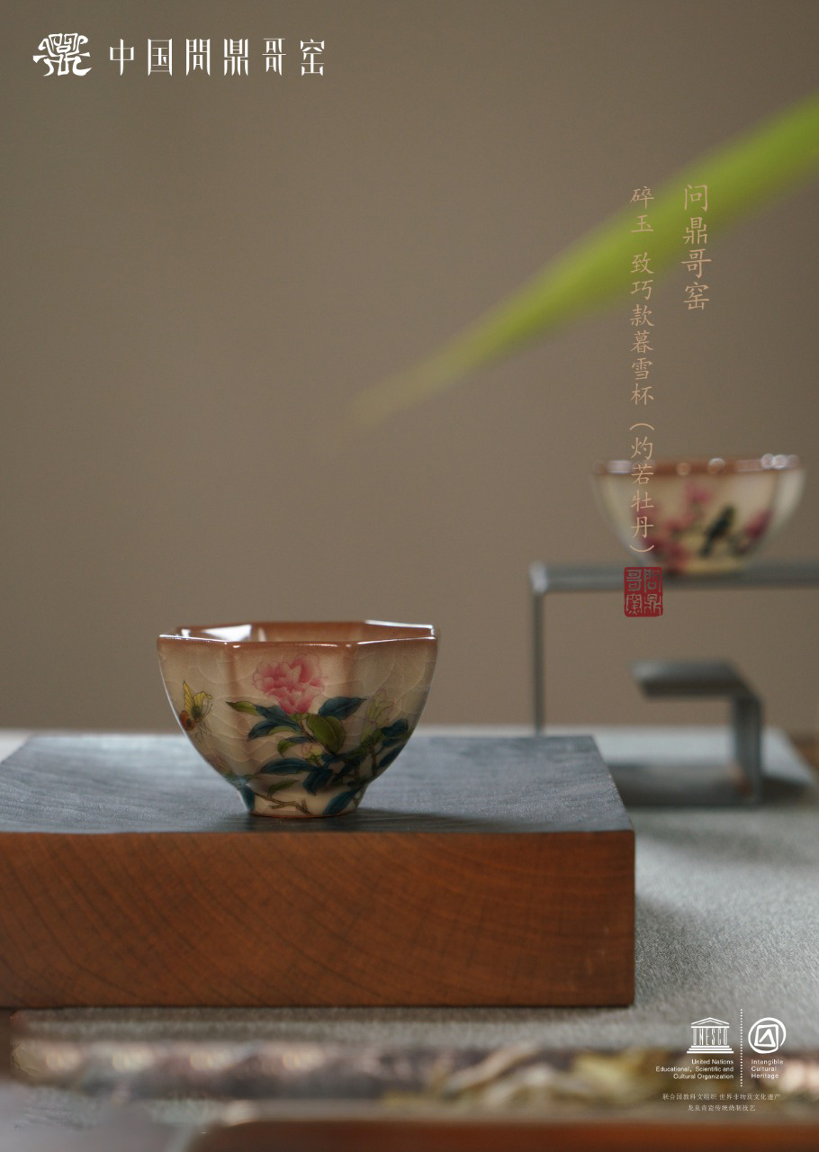 问鼎哥窑致巧款暮雪杯(灼若牡丹)(缺货)