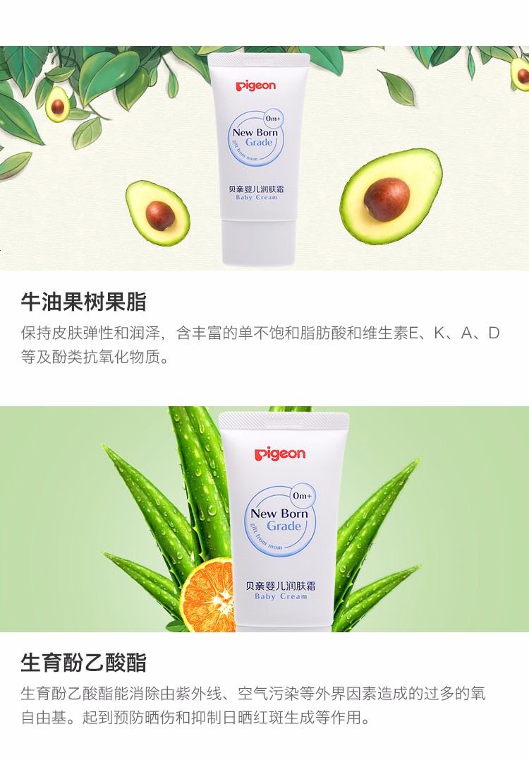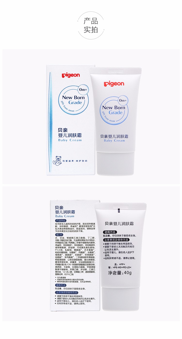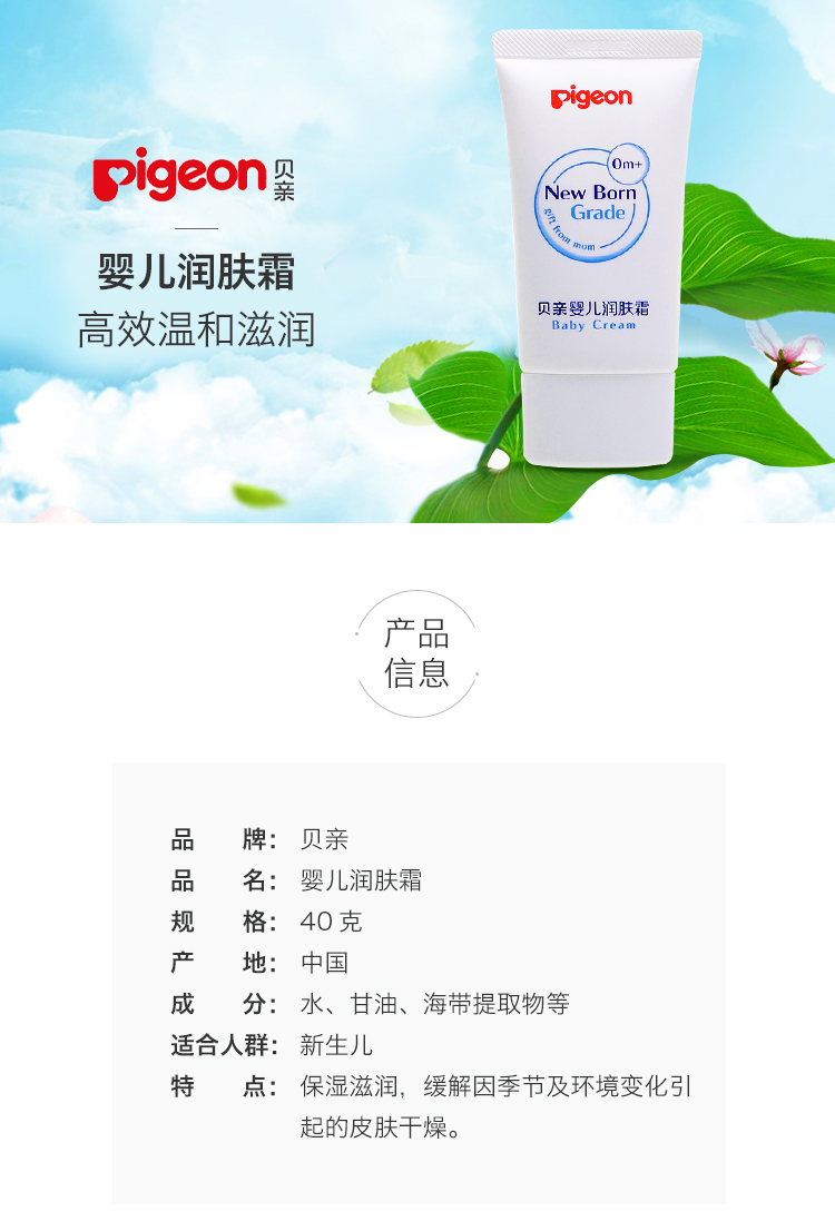 日本贝亲Pigeon婴儿润肤霜 宝宝护肤 40克 IA154