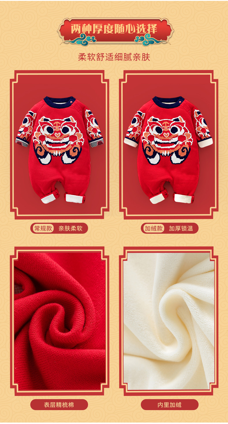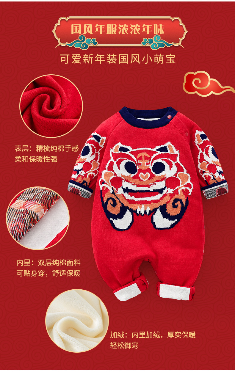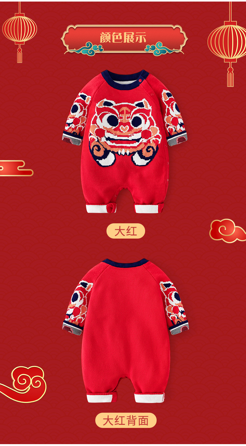 【可爱新年装 国风小萌宝】巴布雨中国风童装纯棉虎头大红色婴儿连体衣秋冬款A类新生儿衣服