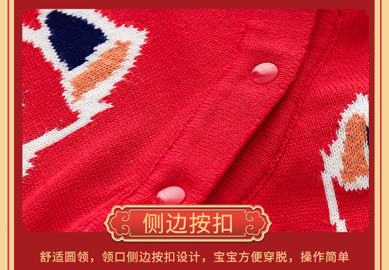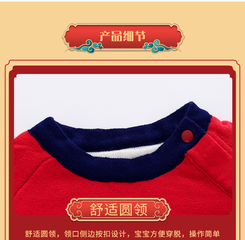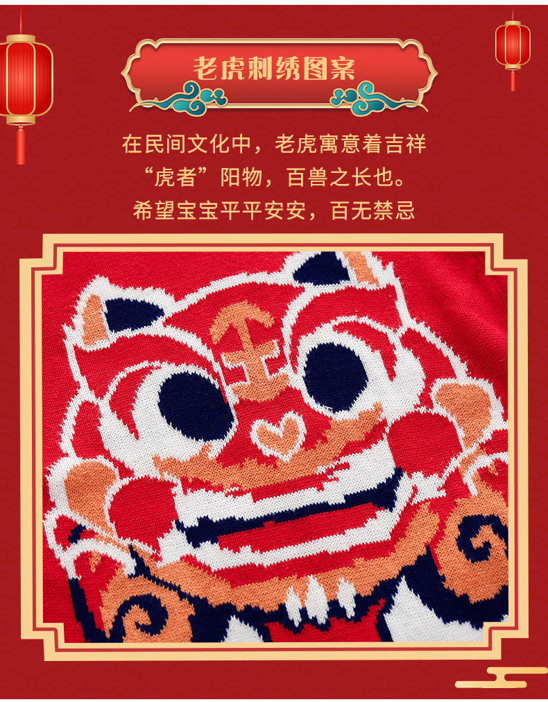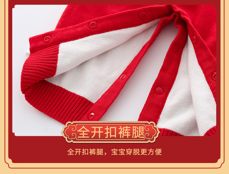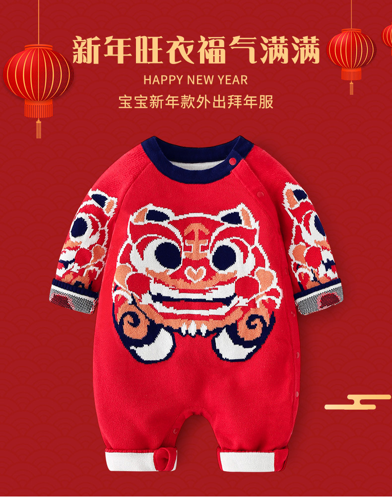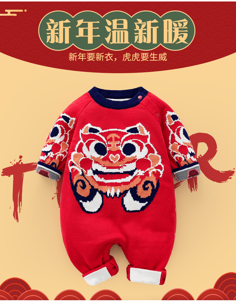【可爱新年装 国风小萌宝】巴布雨中国风童装纯棉虎头大红色婴儿连体衣秋冬款A类新生儿衣服