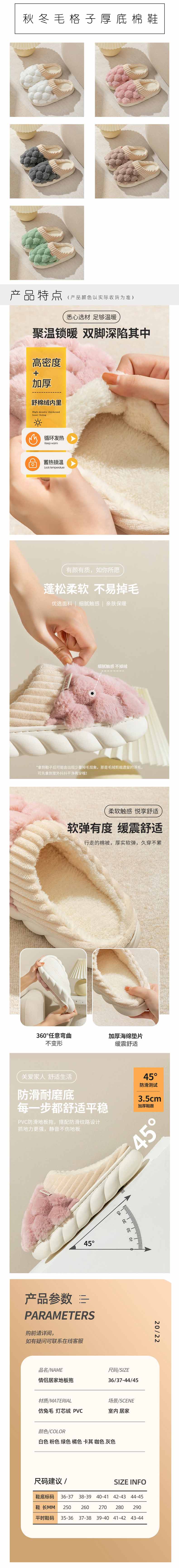 男女人造PU防水棉拖鞋 秋冬厚底拖鞋 毛绒保暖包脚厚底拖鞋