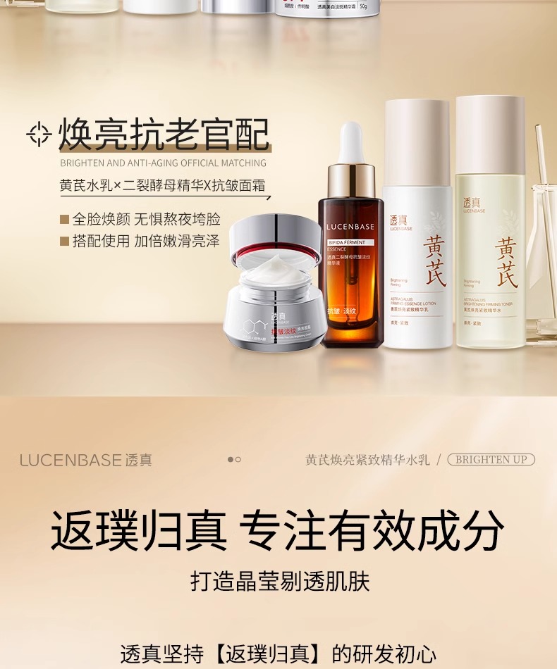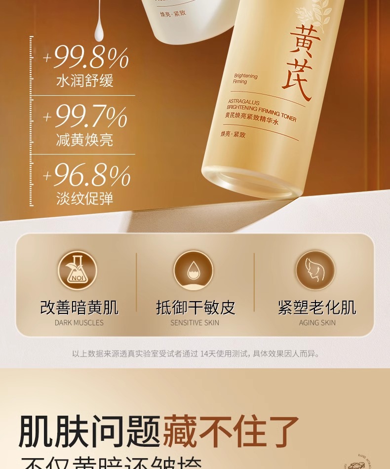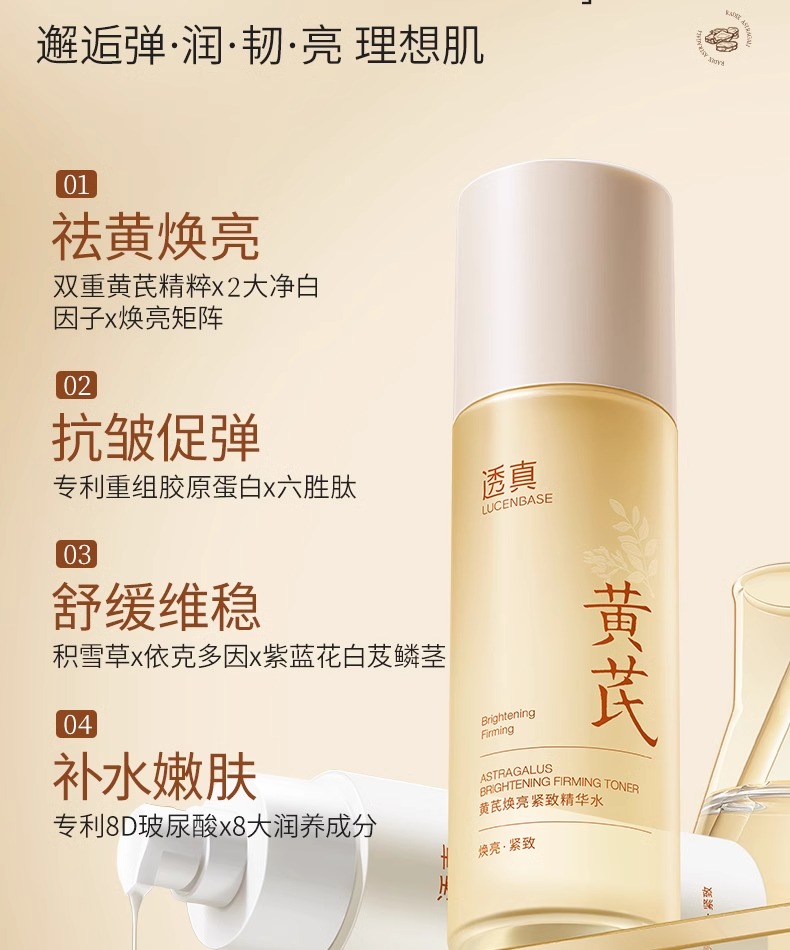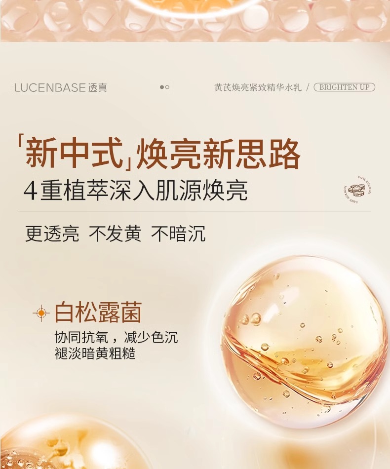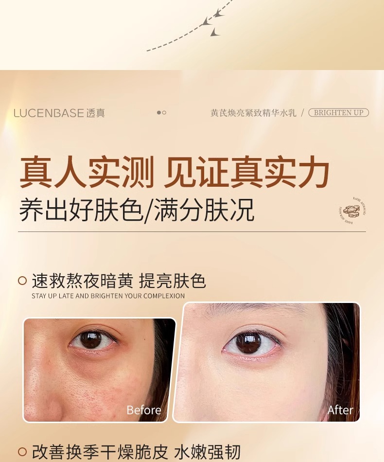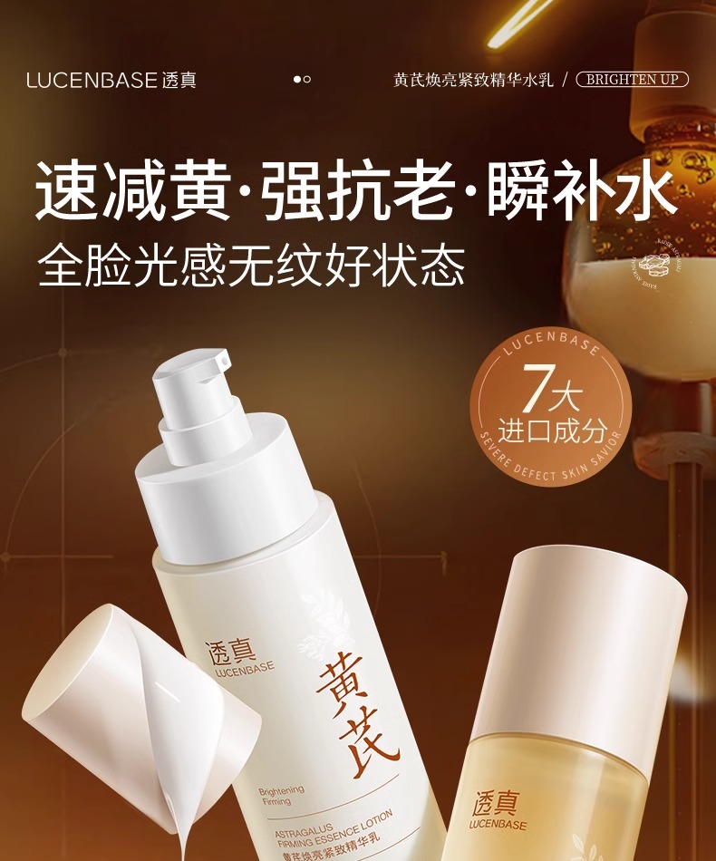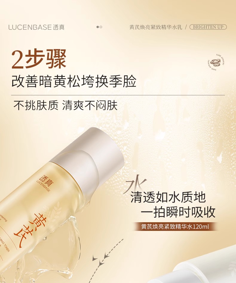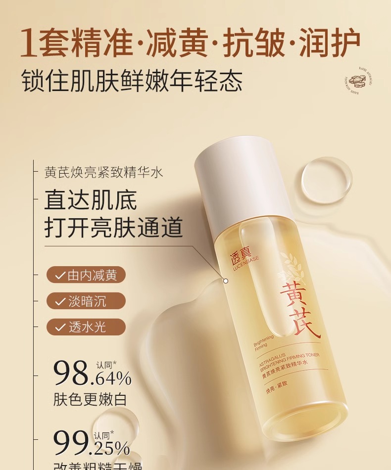 【减齡水乳】黄芪焕亮紧致精华水120ml/黄芪焕亮紧致精华乳100ml/黄芪面霜 50g#黄芪水乳去黄提亮肤色抗皱紧致熬夜暗沉修复补水保湿液抗初老套装