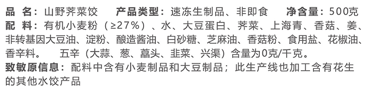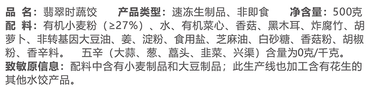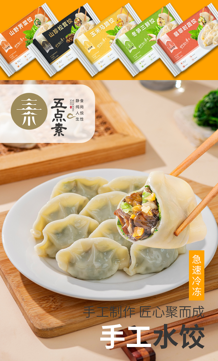 五点素净素水饺 五种口味 家庭装速冻饺子 营养健康儿童早餐