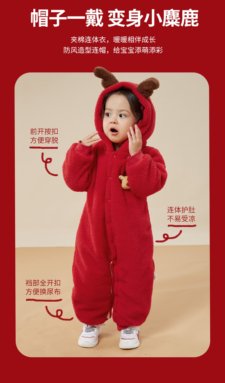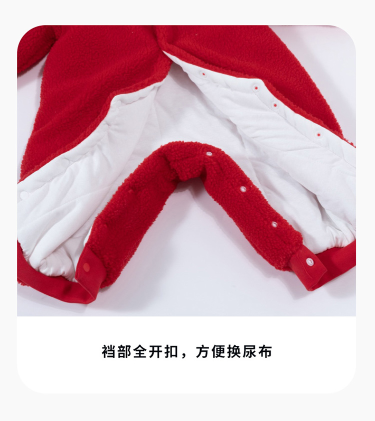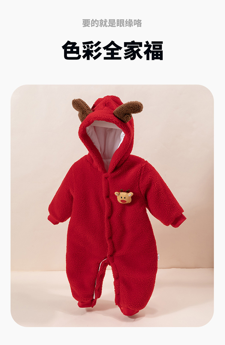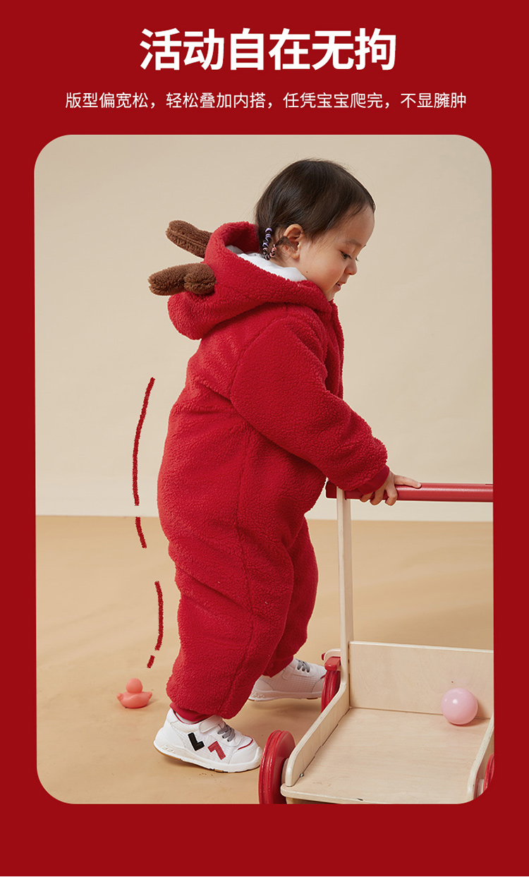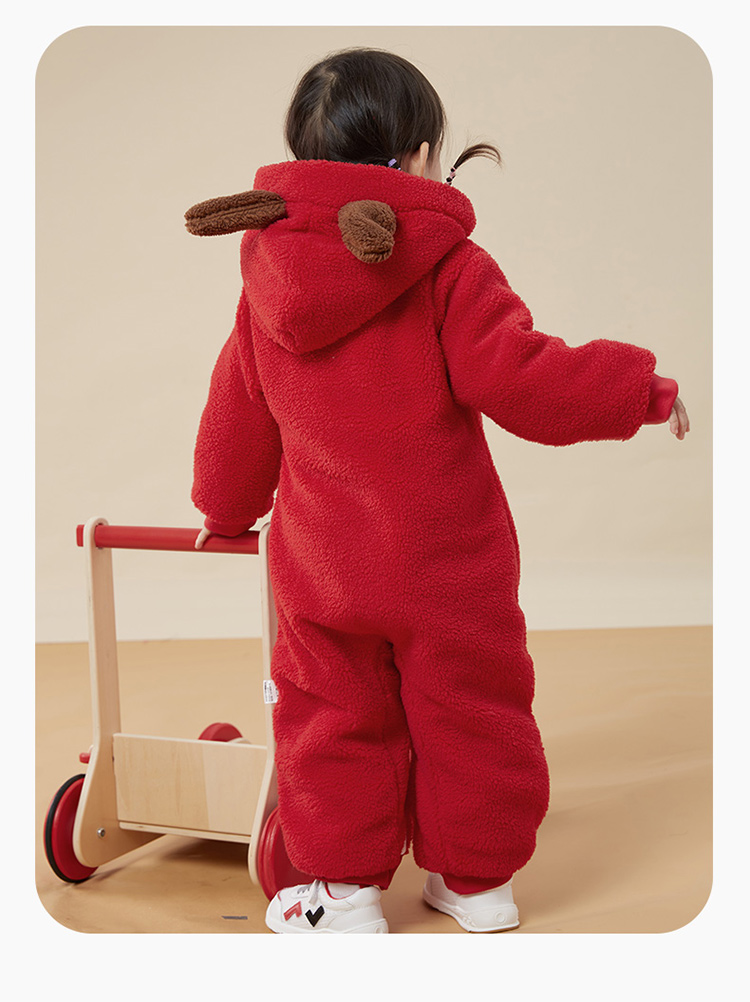 贝贝怡童装婴儿秋冬新款连帽夹棉前开连体衣羊羔绒宝宝外套234L2076