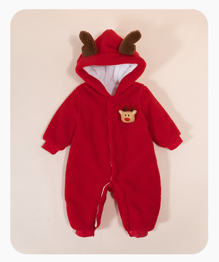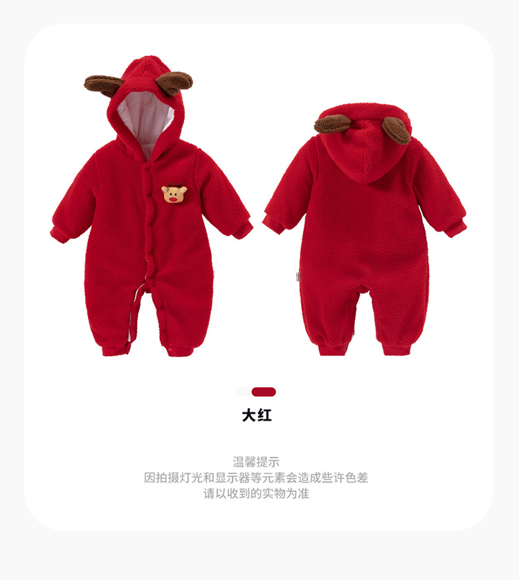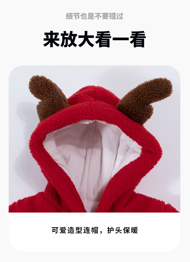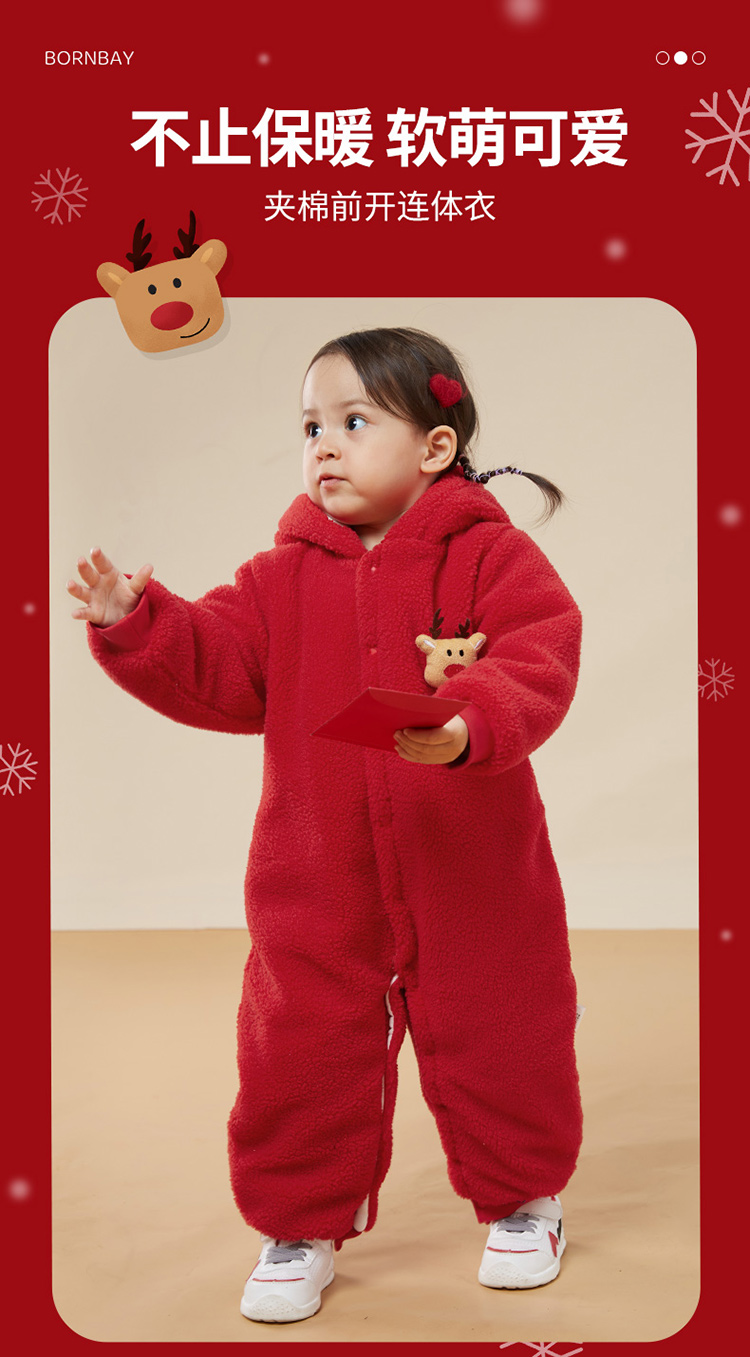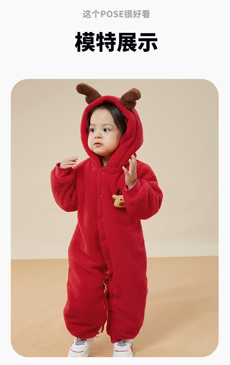 贝贝怡童装婴儿秋冬新款连帽夹棉前开连体衣羊羔绒宝宝外套234L2076