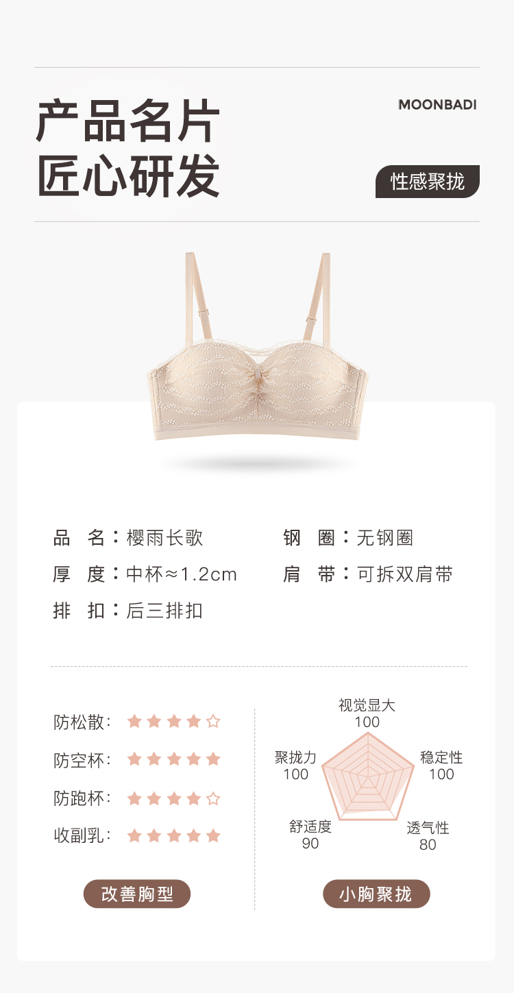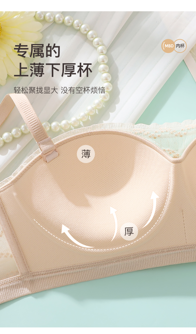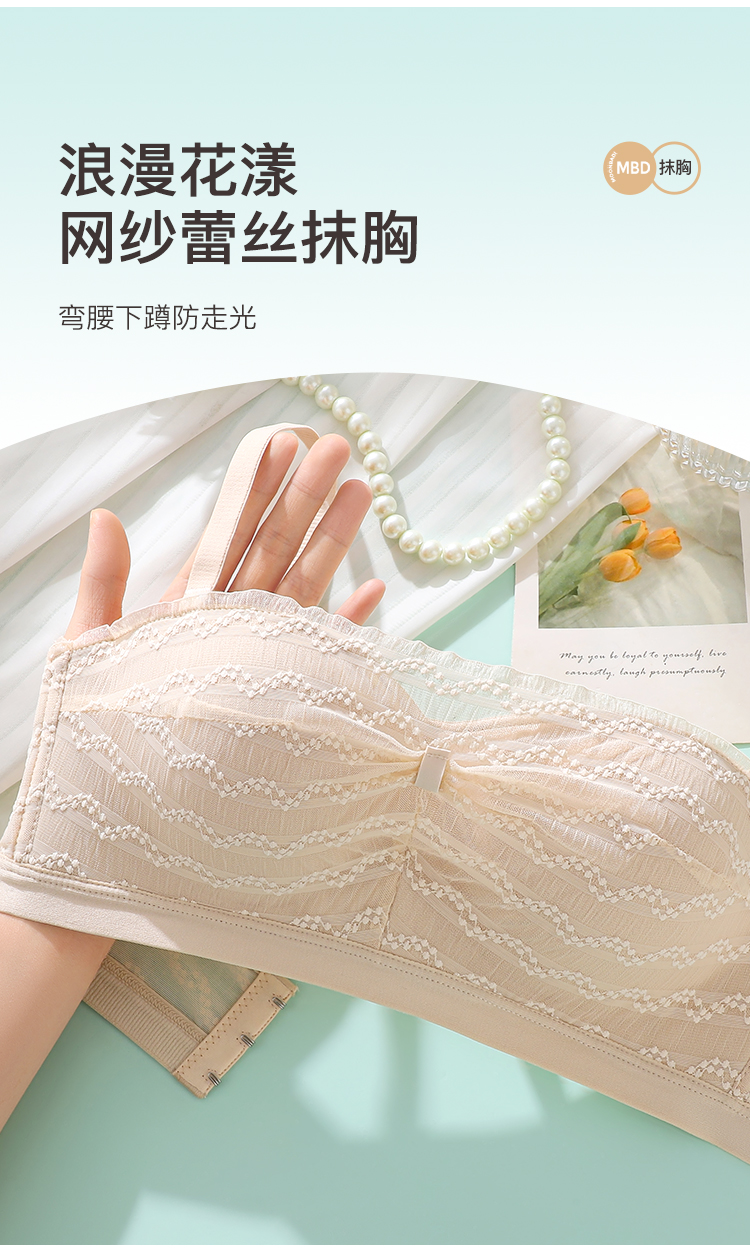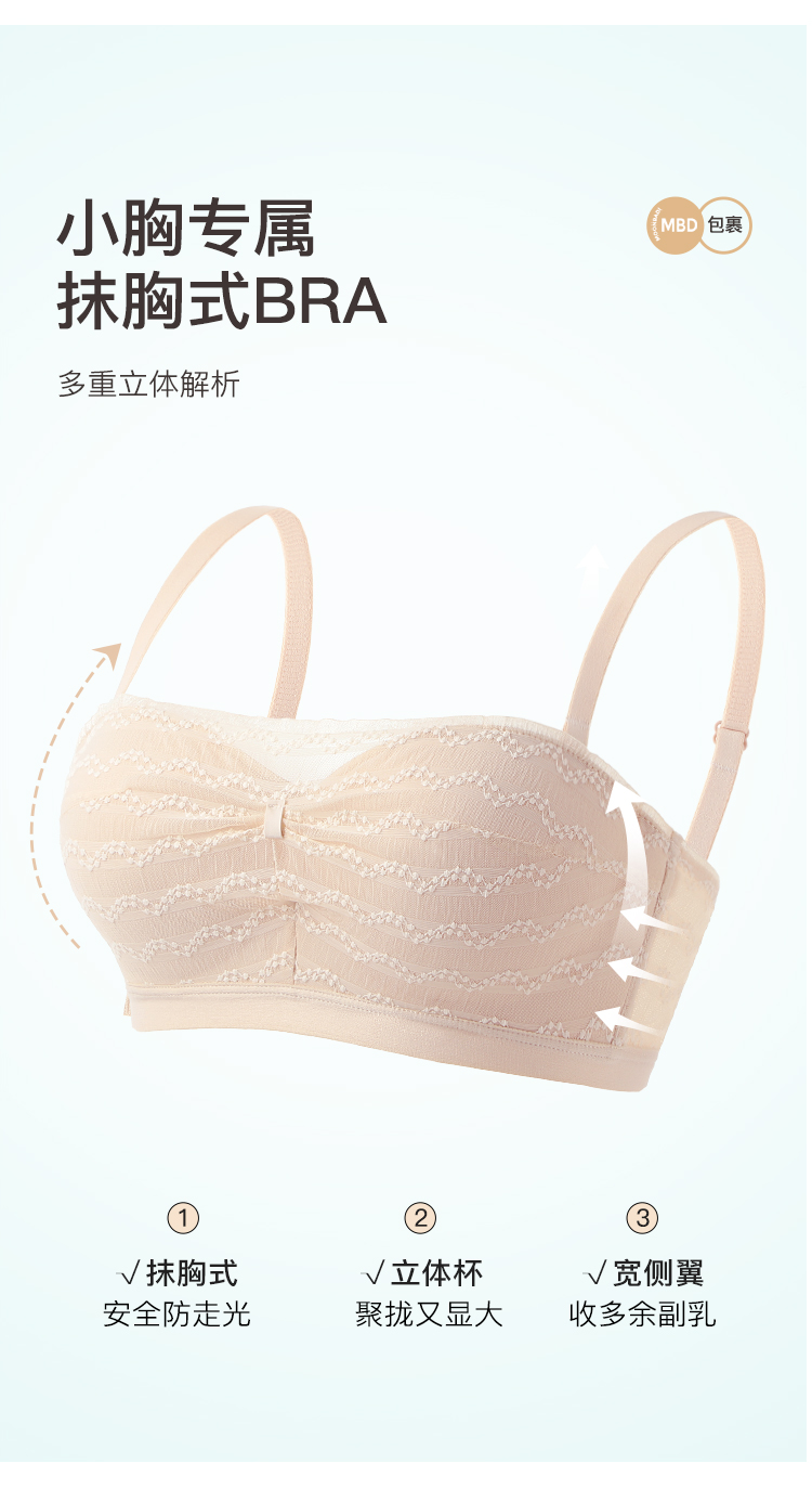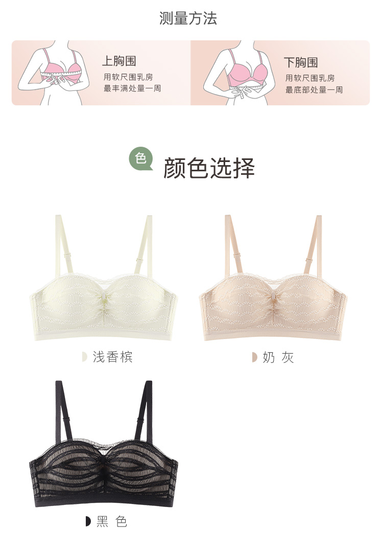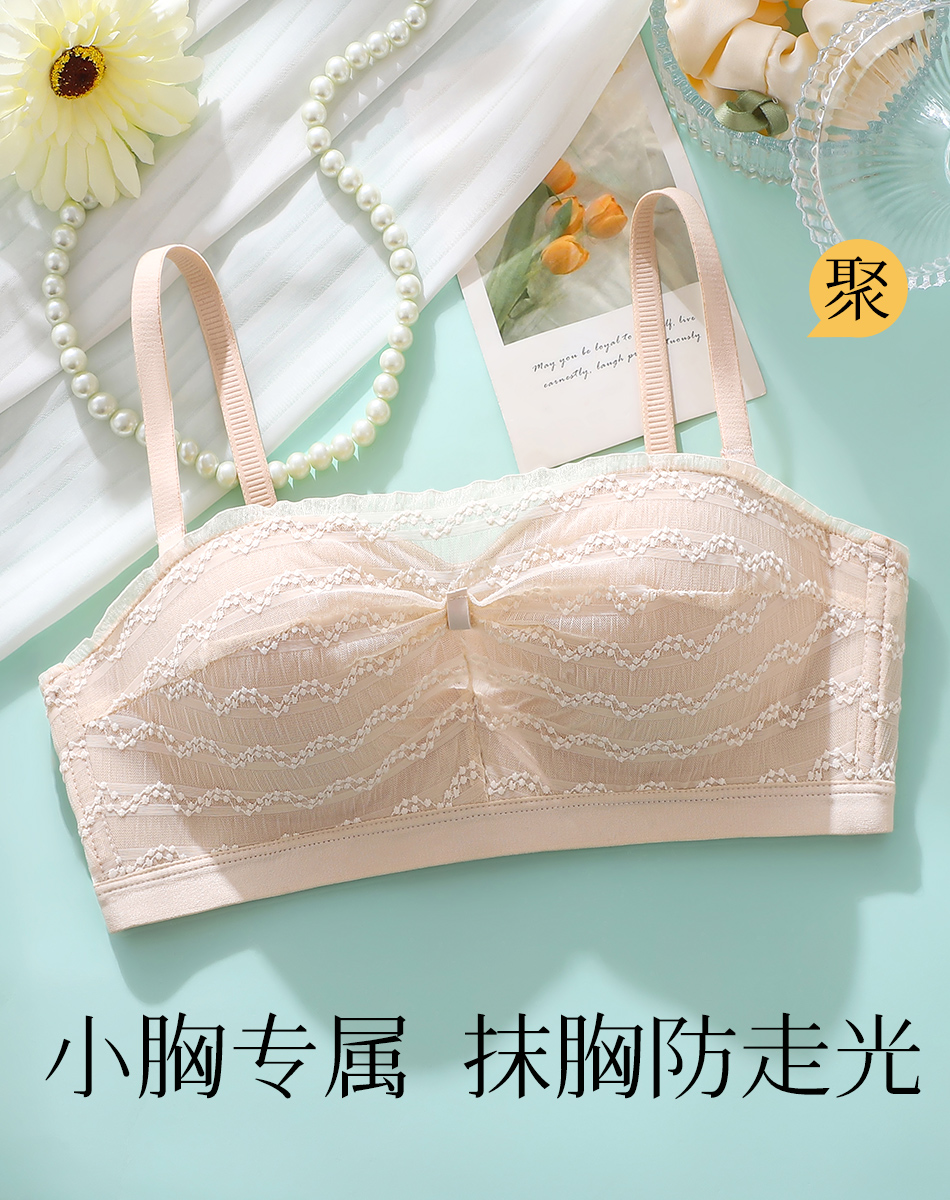 【抹胸防走光】夏季时尚蕾丝半球杯小胸聚拢内衣女舒适无钢圈文胸樱雨长歌