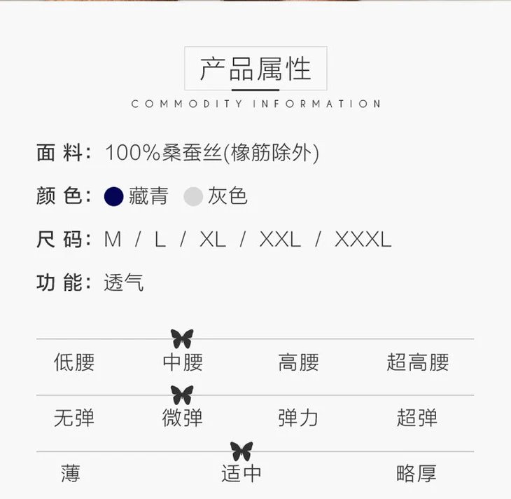 金三塔男士真丝加大码亲肤透气纯色弹力中腰平脚裤100%桑蚕丝内裤(私密物品不支持退换) 4NZM062