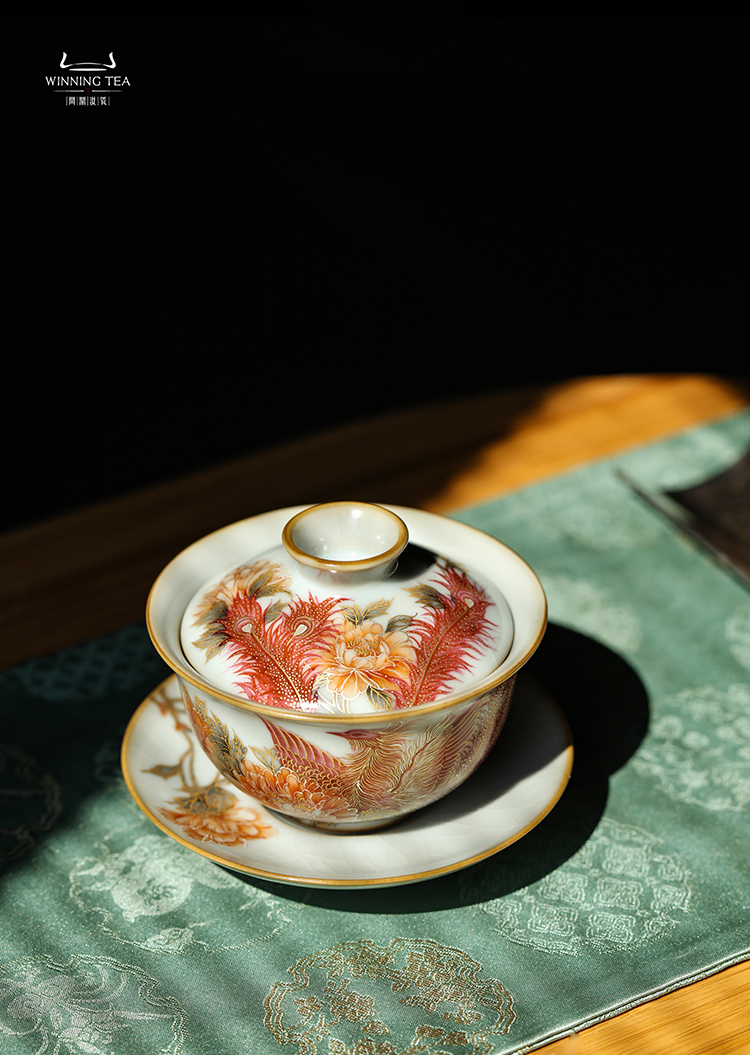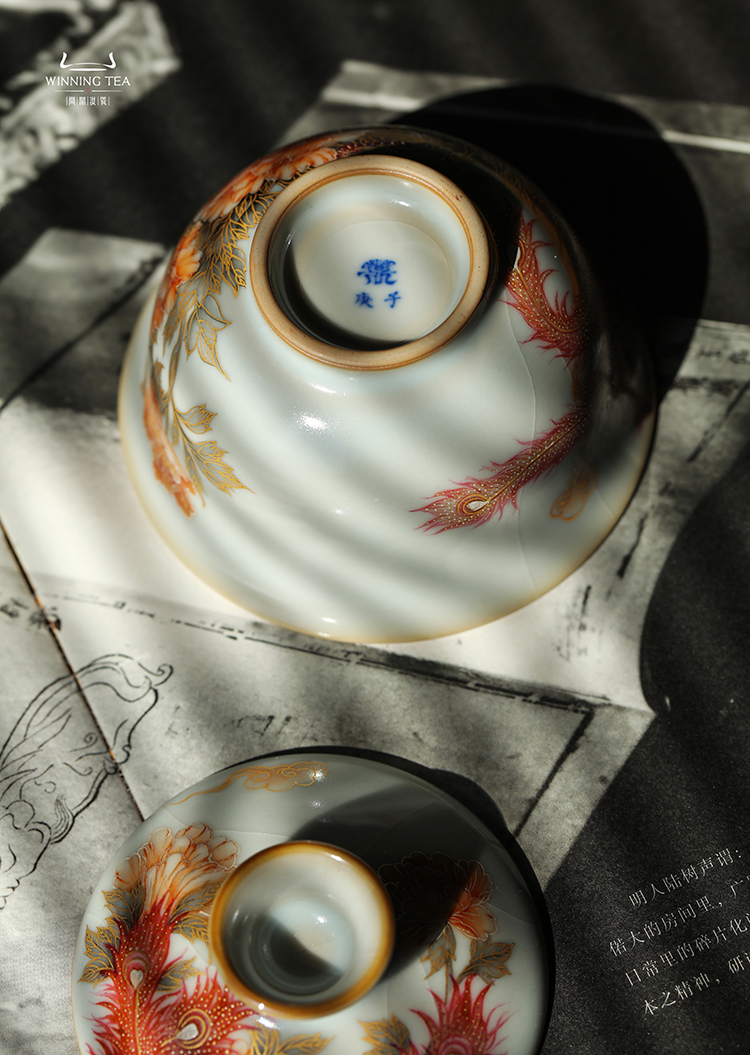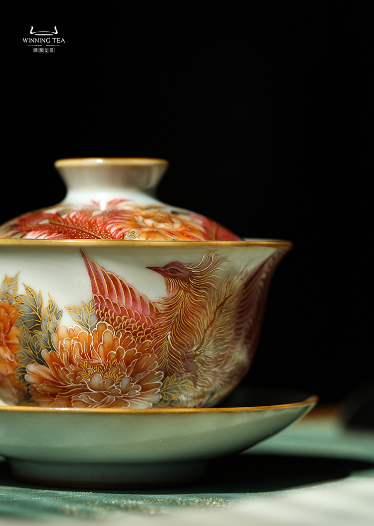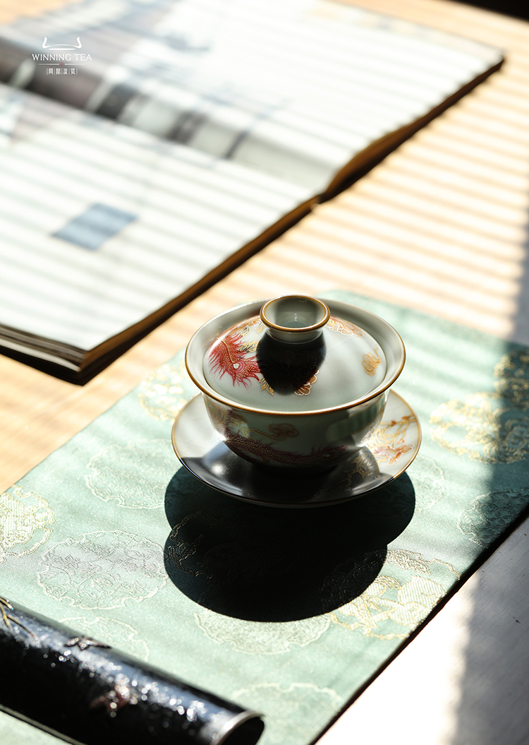 问鼎汝瓷月白精工复刻款正德盖碗(鸾翔凤集)