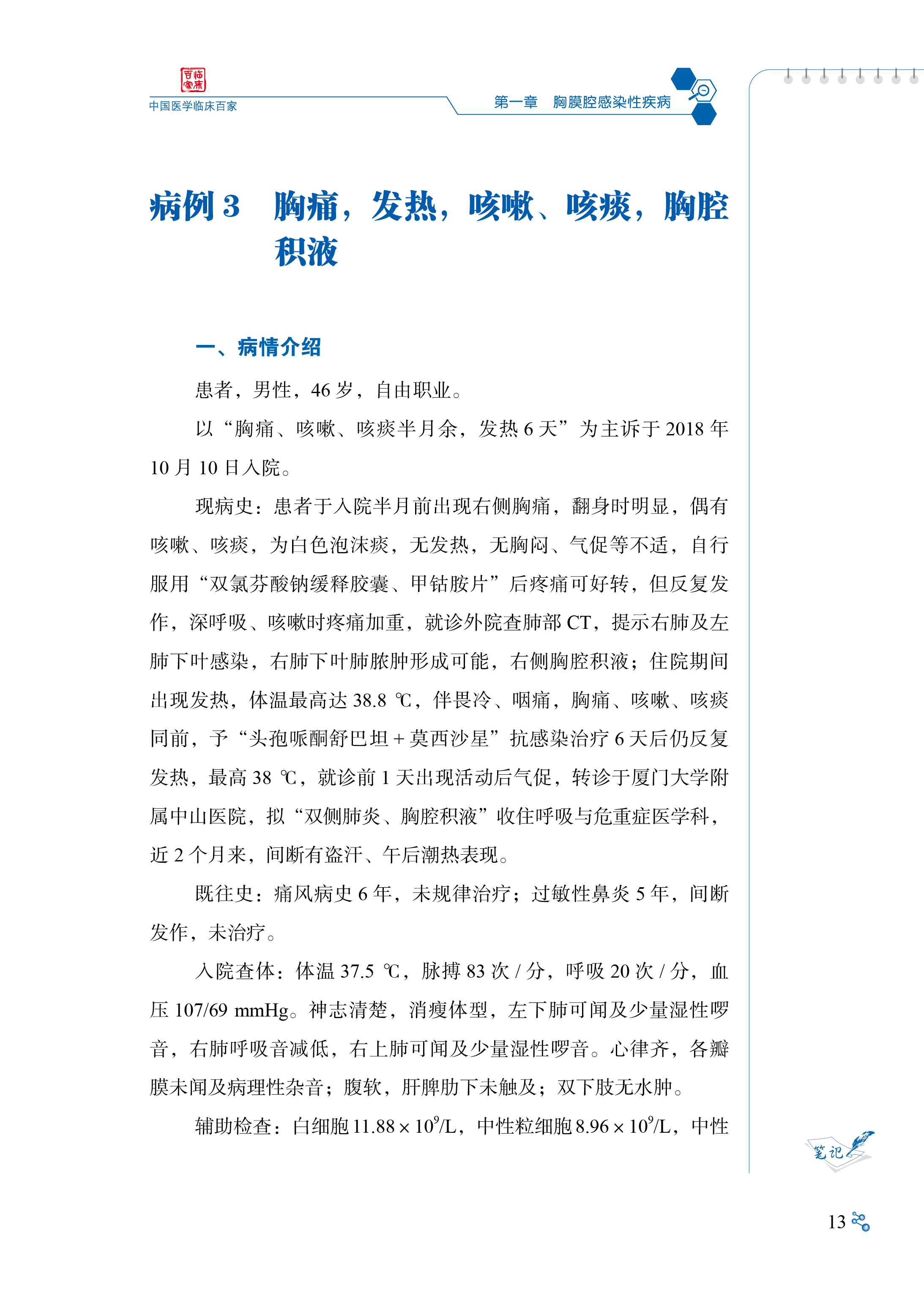 病例3 胸痛,发热,咳嗽、咳痰,胸腔积液13
