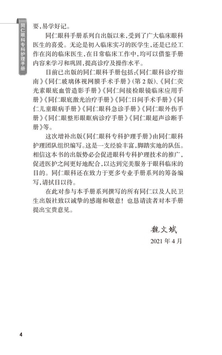 同仁眼科专科护理手册(同仁眼科手册系列) 2023年3月参考书 9787117325912