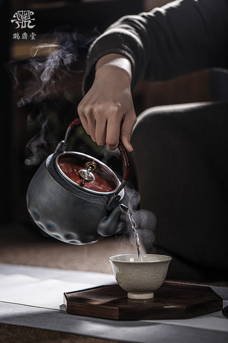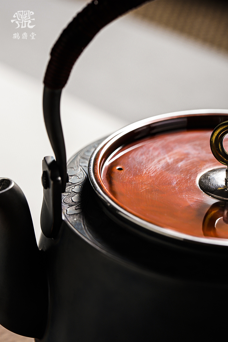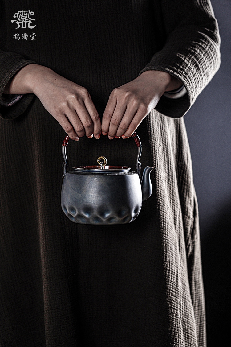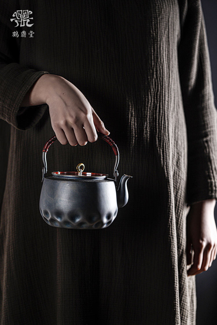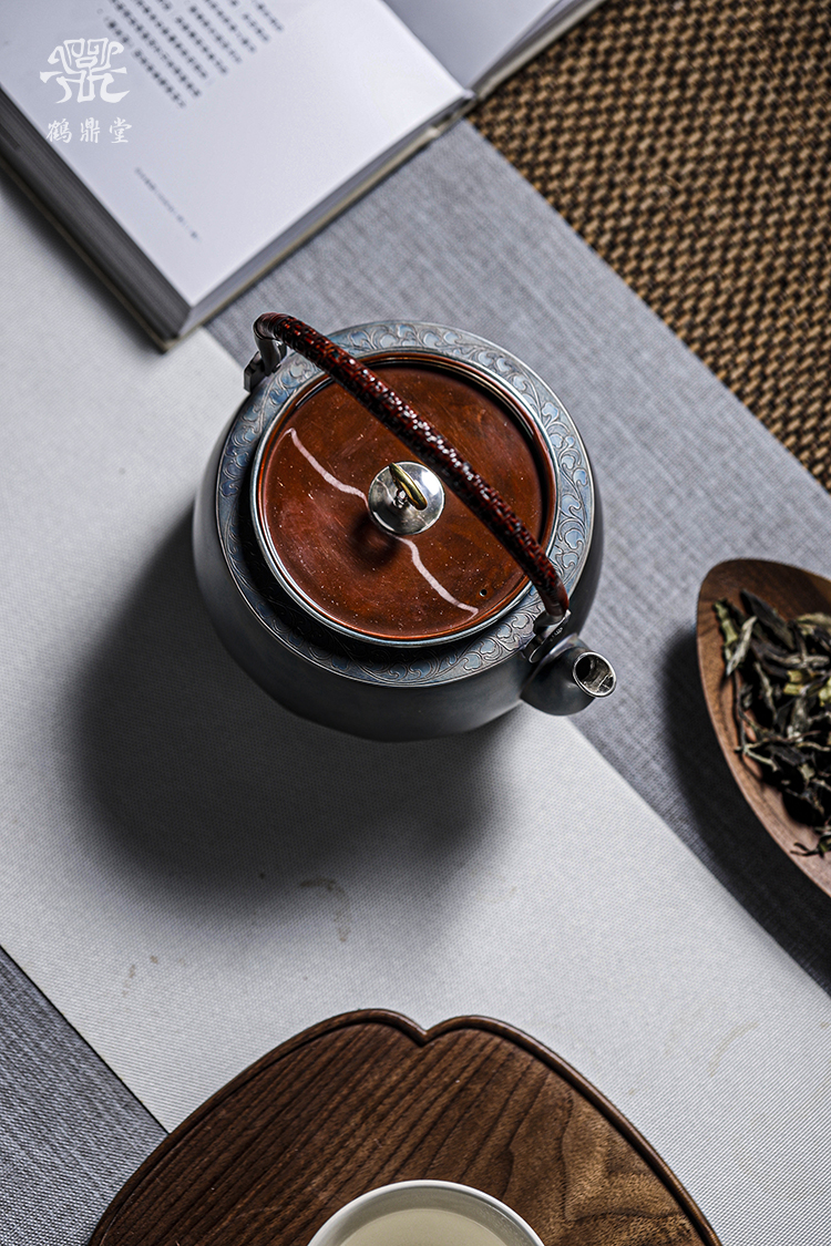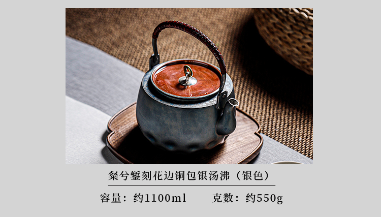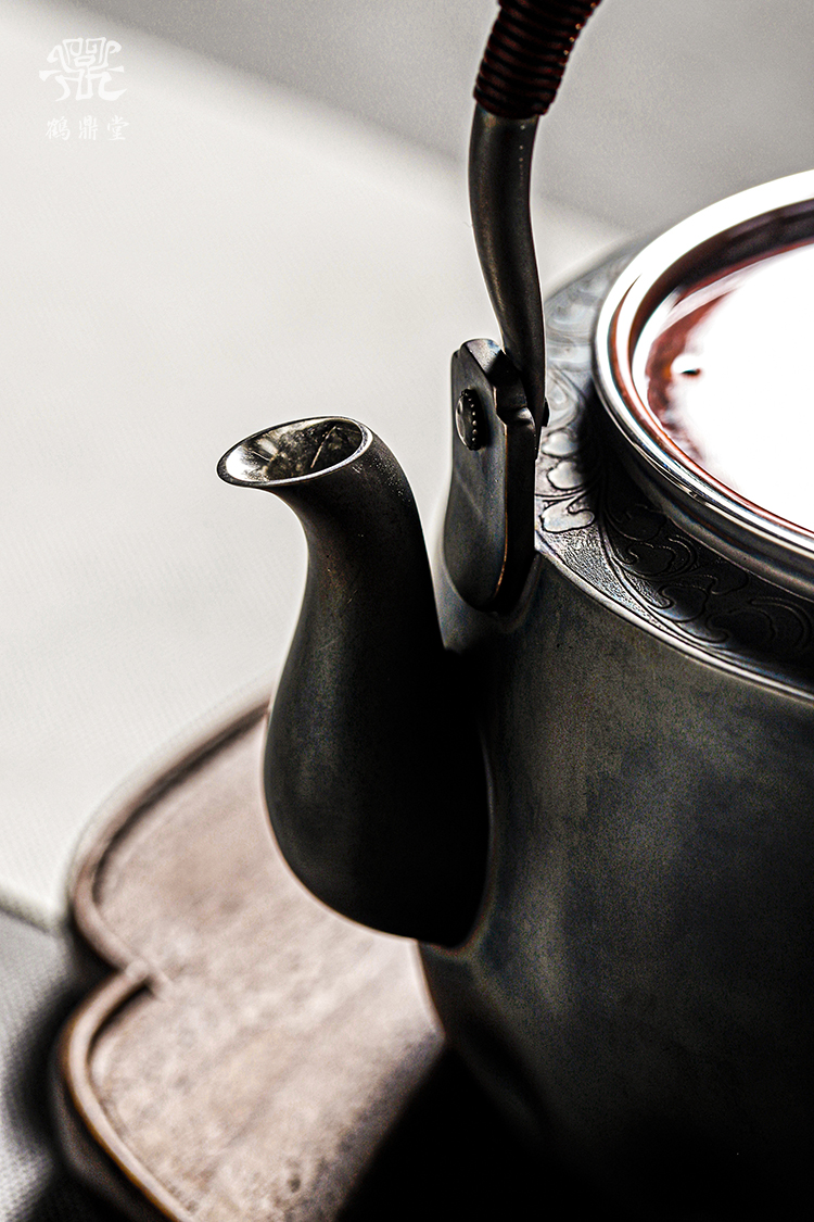 鹤鼎堂银壶闻天系列粲兮錾刻花边铜包银汤沸(银色)(缺货)