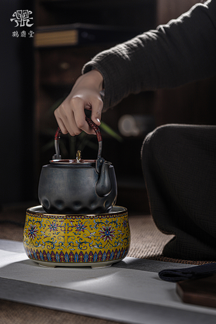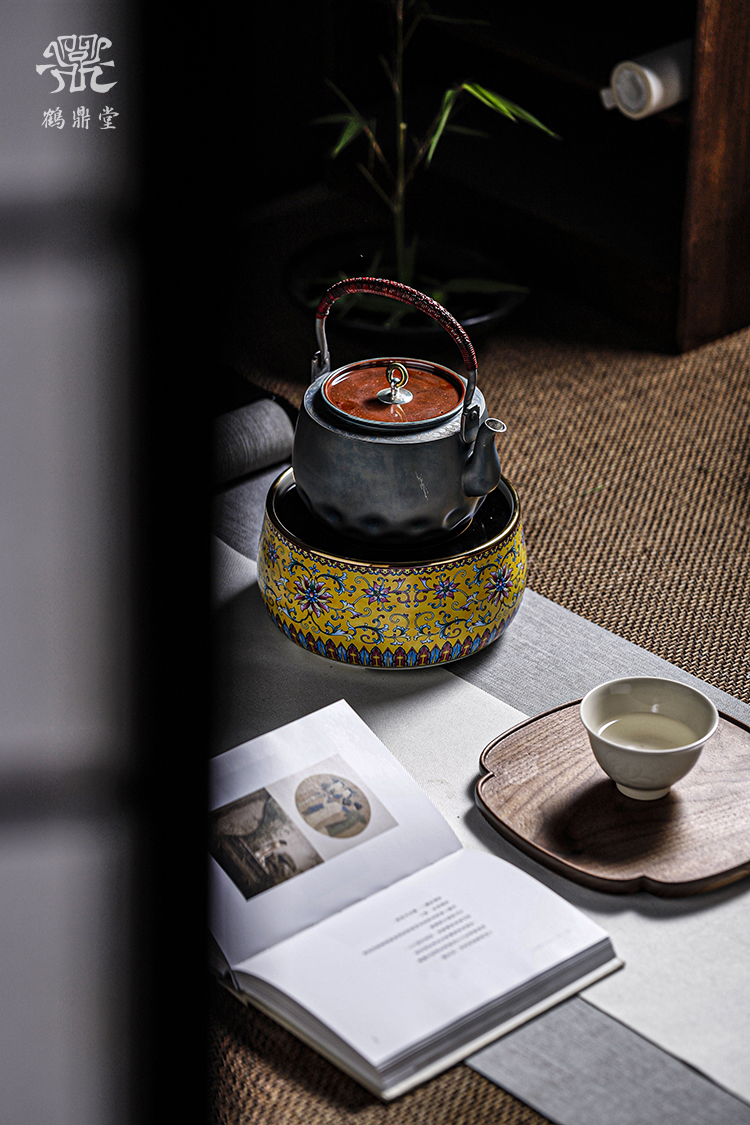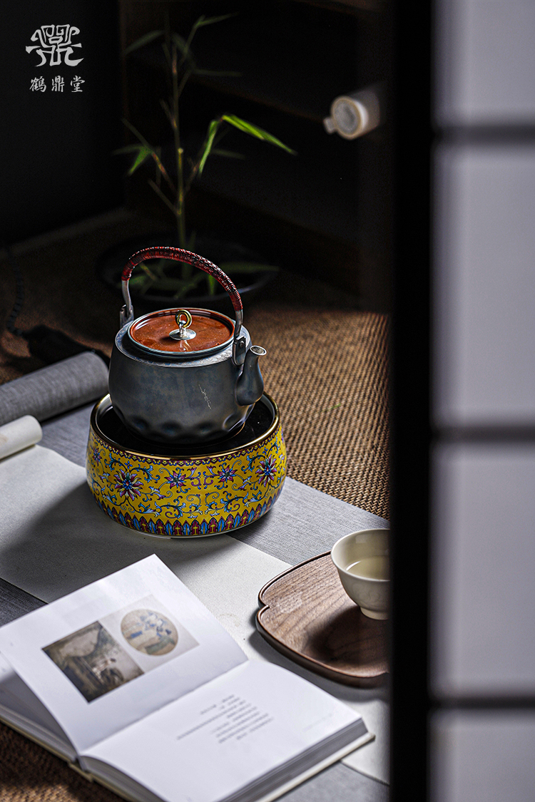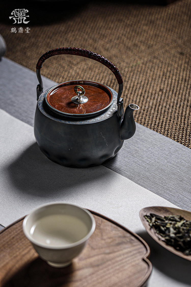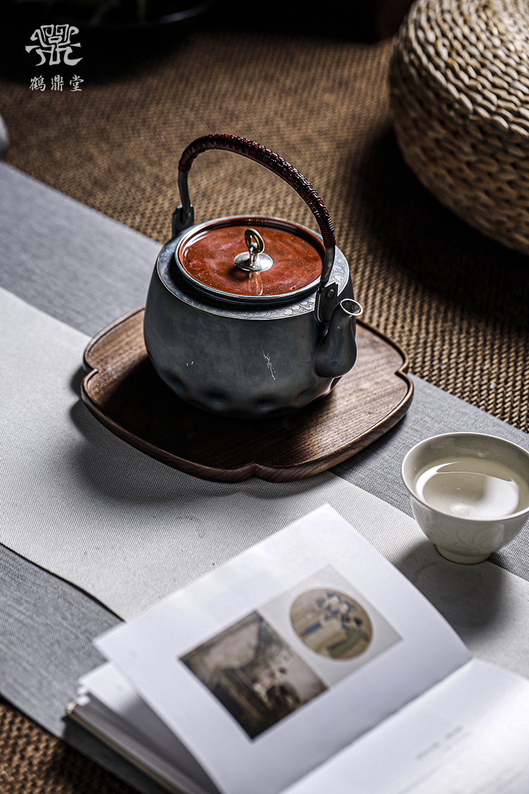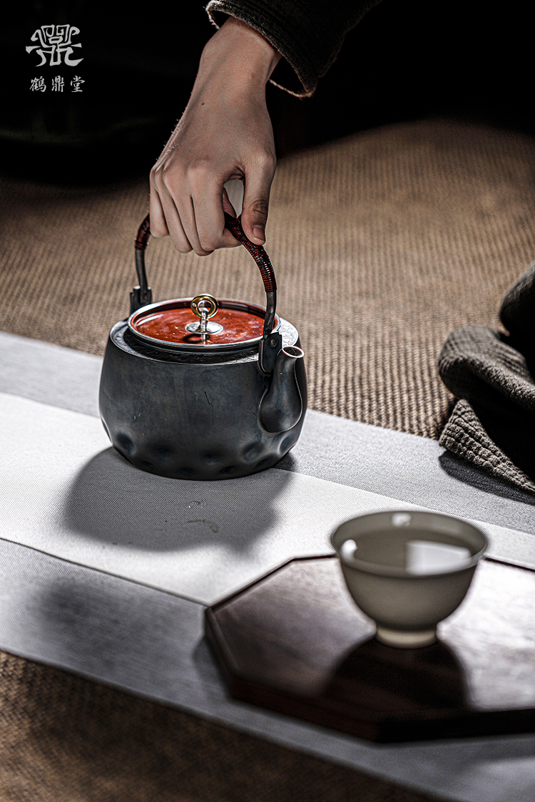 鹤鼎堂银壶闻天系列粲兮錾刻花边铜包银汤沸(银色)(缺货)