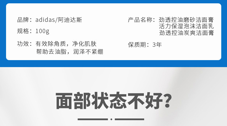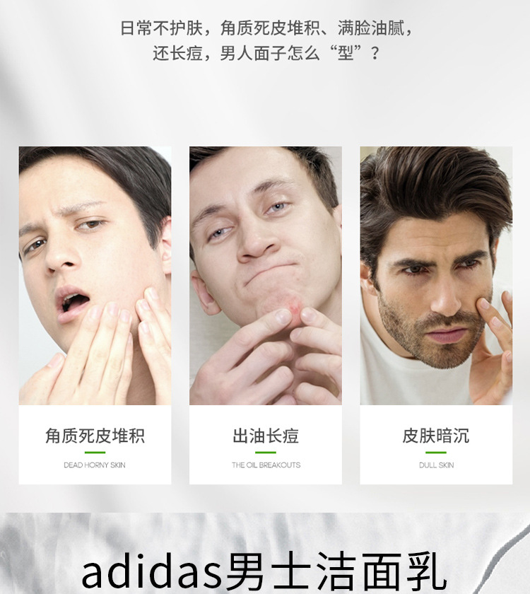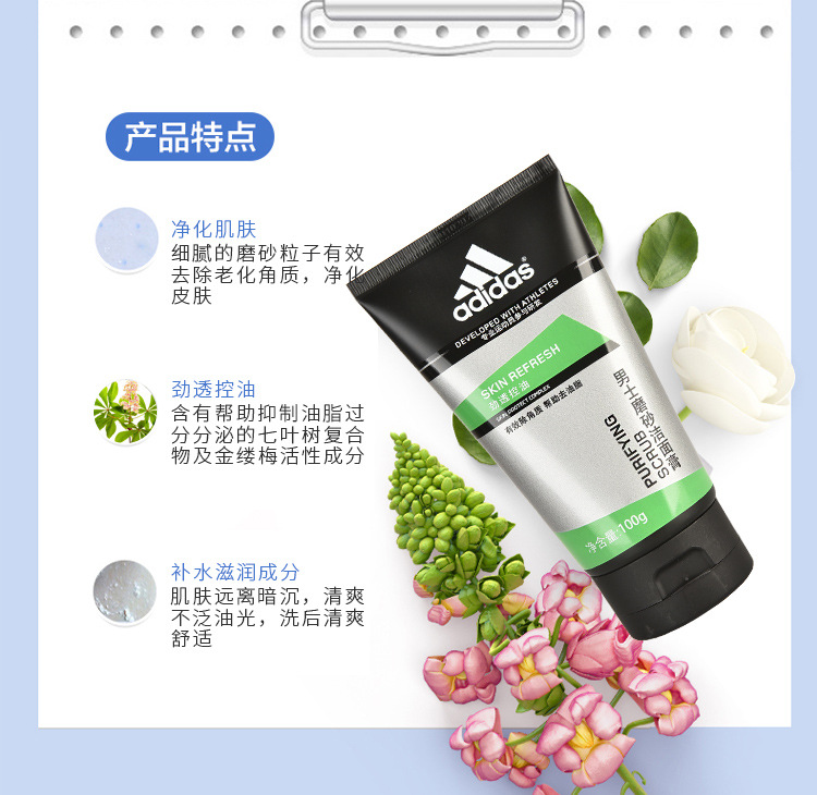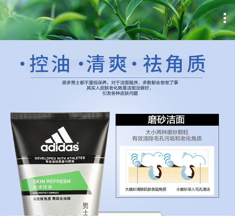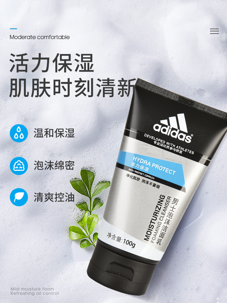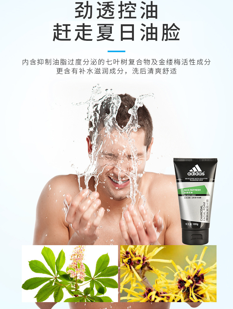 阿迪达斯男士洗面奶100g清洁炭爽洁面乳学生