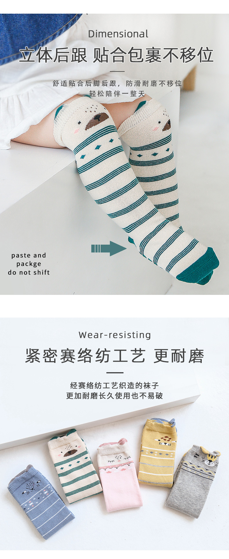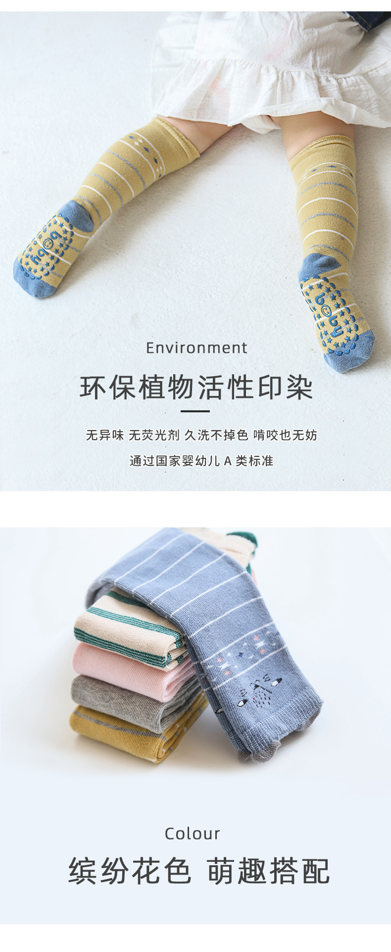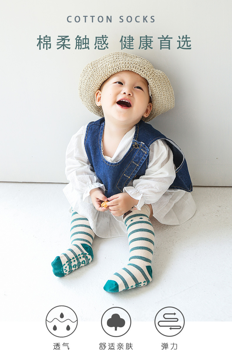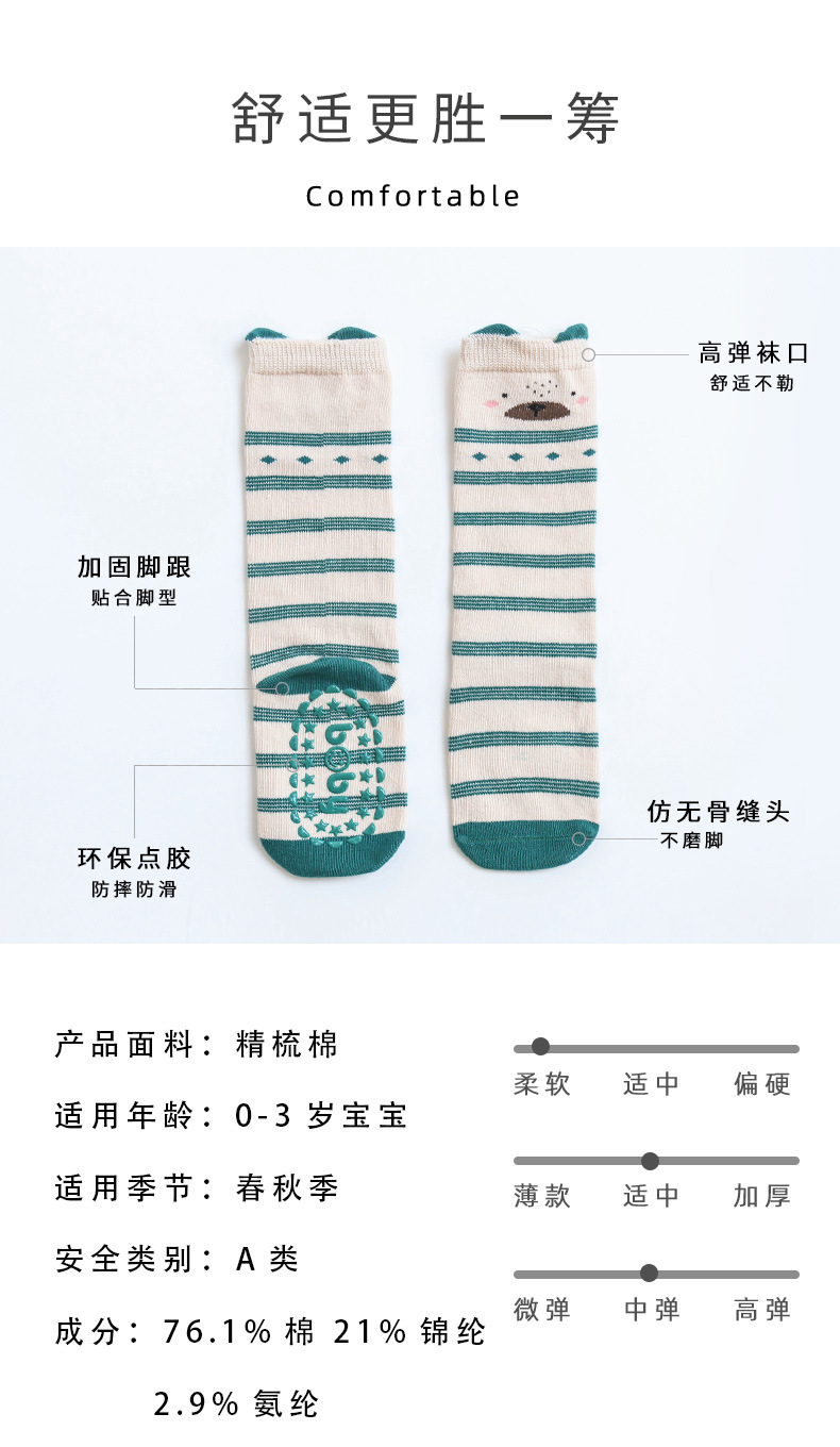 【3双装 防滑点胶 超柔触感 细腻柔软】2022秋冬新款宝宝过膝高长筒袜子婴幼儿童防滑底地板袜卡通点胶袜