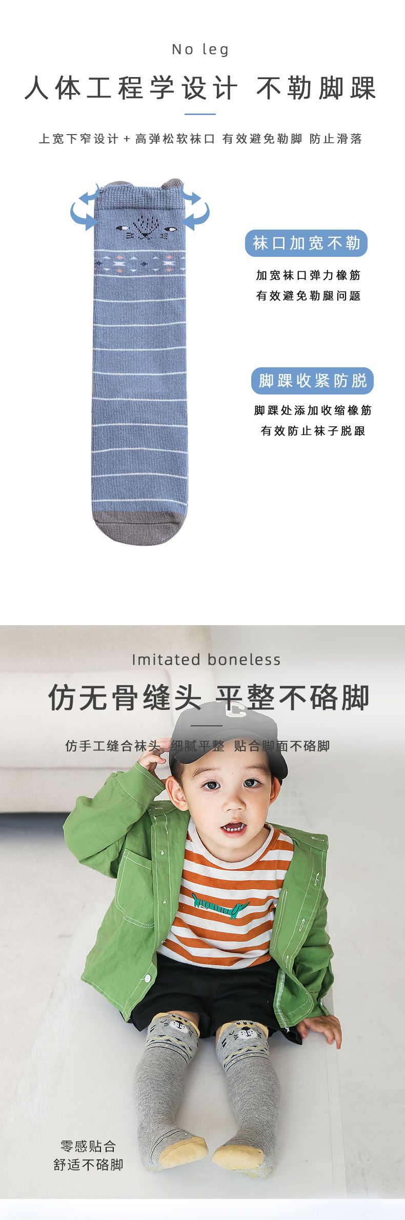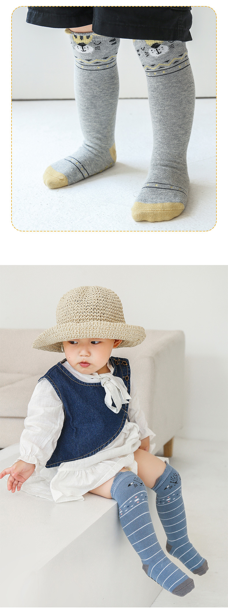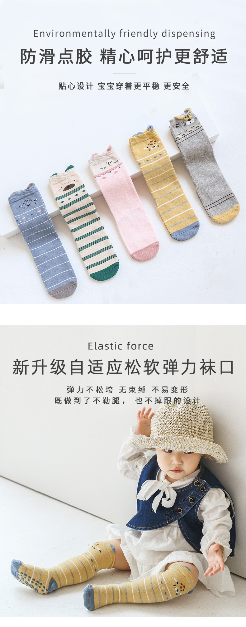 【3双装 防滑点胶 超柔触感 细腻柔软】2022秋冬新款宝宝过膝高长筒袜子婴幼儿童防滑底地板袜卡通点胶袜